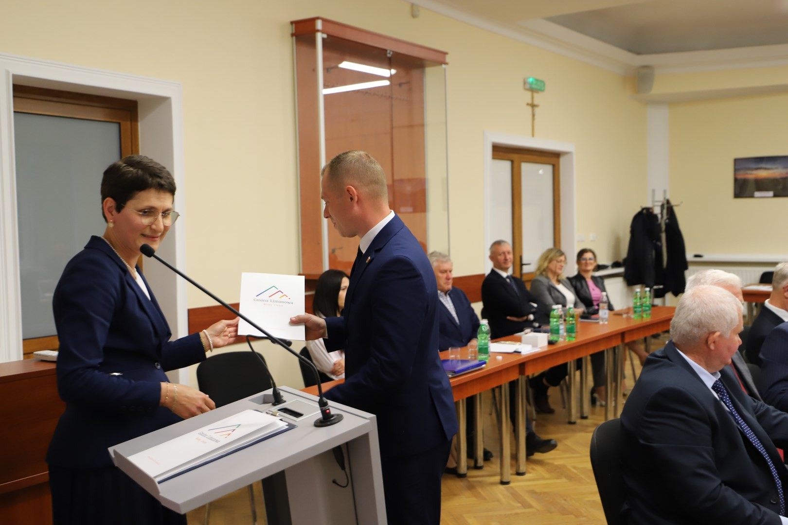 Na wstępie, Agata Talar – Przewodnicząca Gminnej Komisji Wyborczej w Limanowej wręczyła zaświadczenia o wyborze na radnego oraz zaświadczenie o wyborze na Wójta Gminy Limanowa.