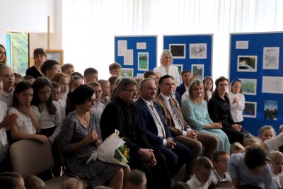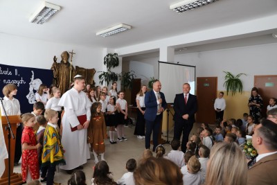 W tym roku uroczyste obchody Święta Patrona naszej szkoły zainaugurowane zostały Mszą Św. o godzinie 9.00 celebrowaną przez ks. proboszcza Witolda Machalskiego. Po Eucharystii zaproszeni goście, rodzice i cała społeczność szkolna w reprezentacyjnym pochodzie udali się do budynku szkoły, by tam kontynuować obchody.