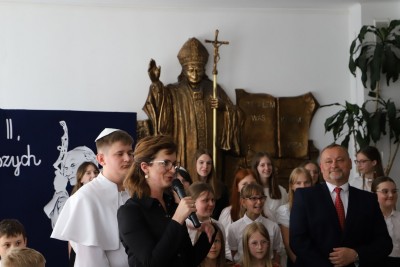 Ten dzień pokazał nam, że emocje związane z osobą Jana Pawła II nie stygną, lecz wzruszają i skłaniają do refleksji. Jego idee i myśli są wiecznie żywe w codziennym działaniu. Nasz Patron uczy szacunku do każdego człowieka, motywuje do pogłębiania swojej wiedzy i ciągłego stawiania sobie wymagań. Jego nauczanie jest dla naszych wychowanków drogowskazem, które będziemy pielęgnować i stale przypominać coraz to młodszym pokoleniom. Jesteśmy dumni, że nasza szkoła nosi imię tego wybitnego Polaka.