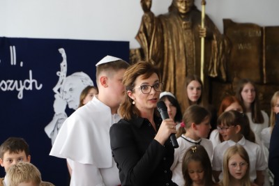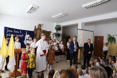 Osiemnaście lat temu, dokładnie 20 maja 2006 roku, Szkoła Podstawowa nr 1 w Męcinie przyjęła imię Jana Pawła II i tym samym uczyniła go swoim Patronem. Od tamtej pory jest on dla nas duchowym nauczycielem i przewodnikiem. Staramy się odkrywać i rozumieć głębię Jego nauki. Chcemy, by był dla nas wzorem do naśladowania w dobrych uczynkach, w zdobywaniu wiedzy i rozwijaniu swoich talentów.