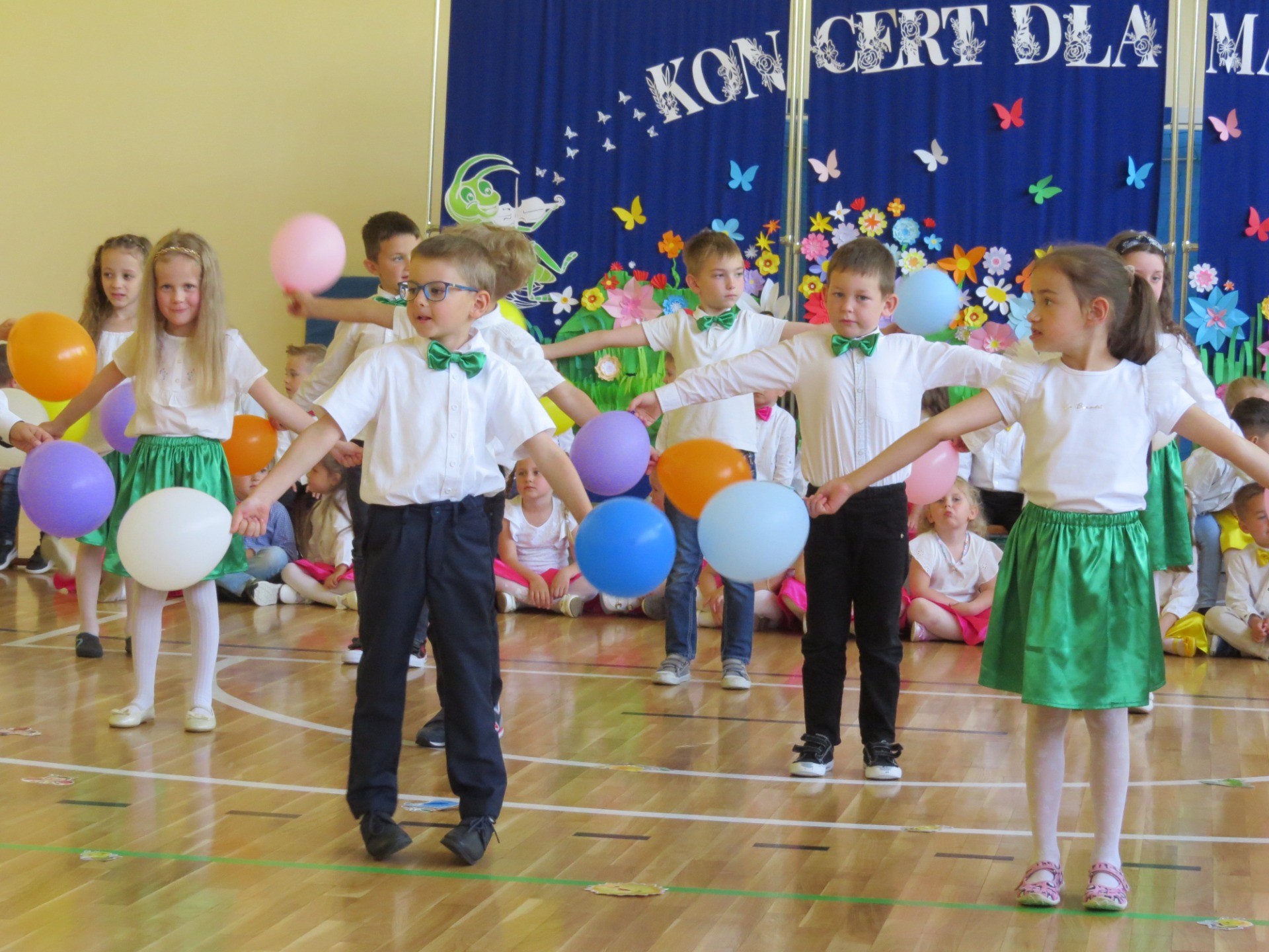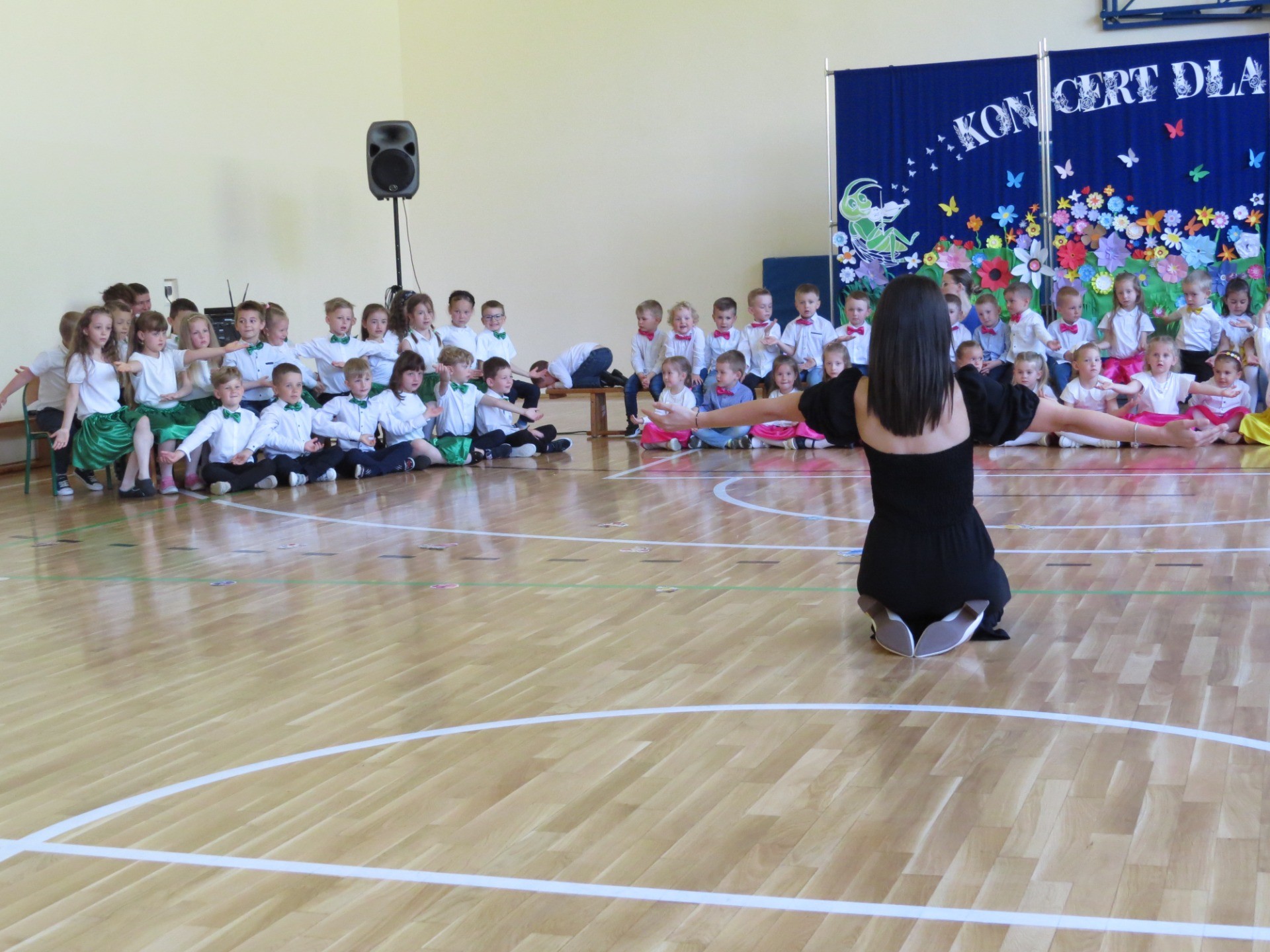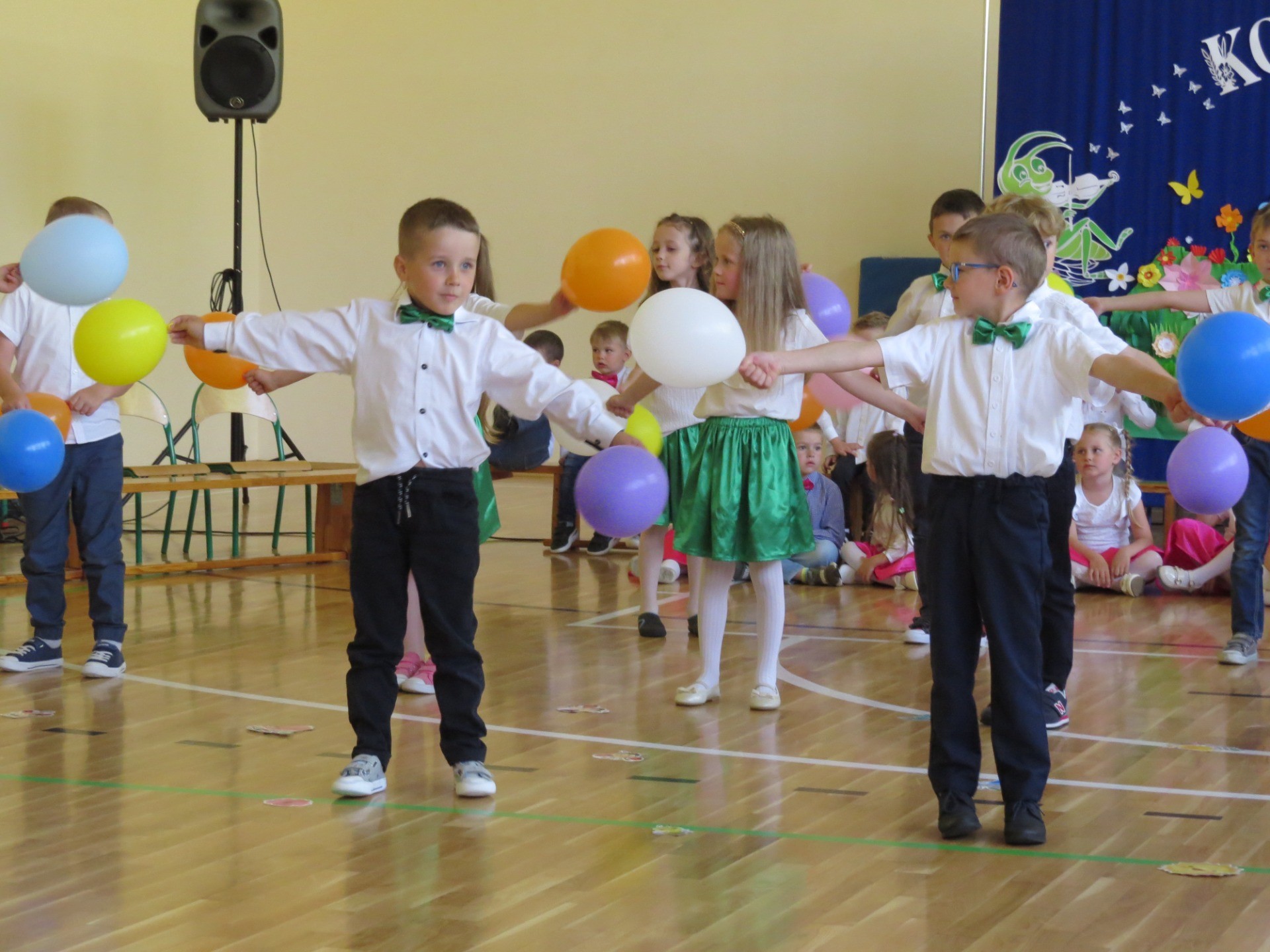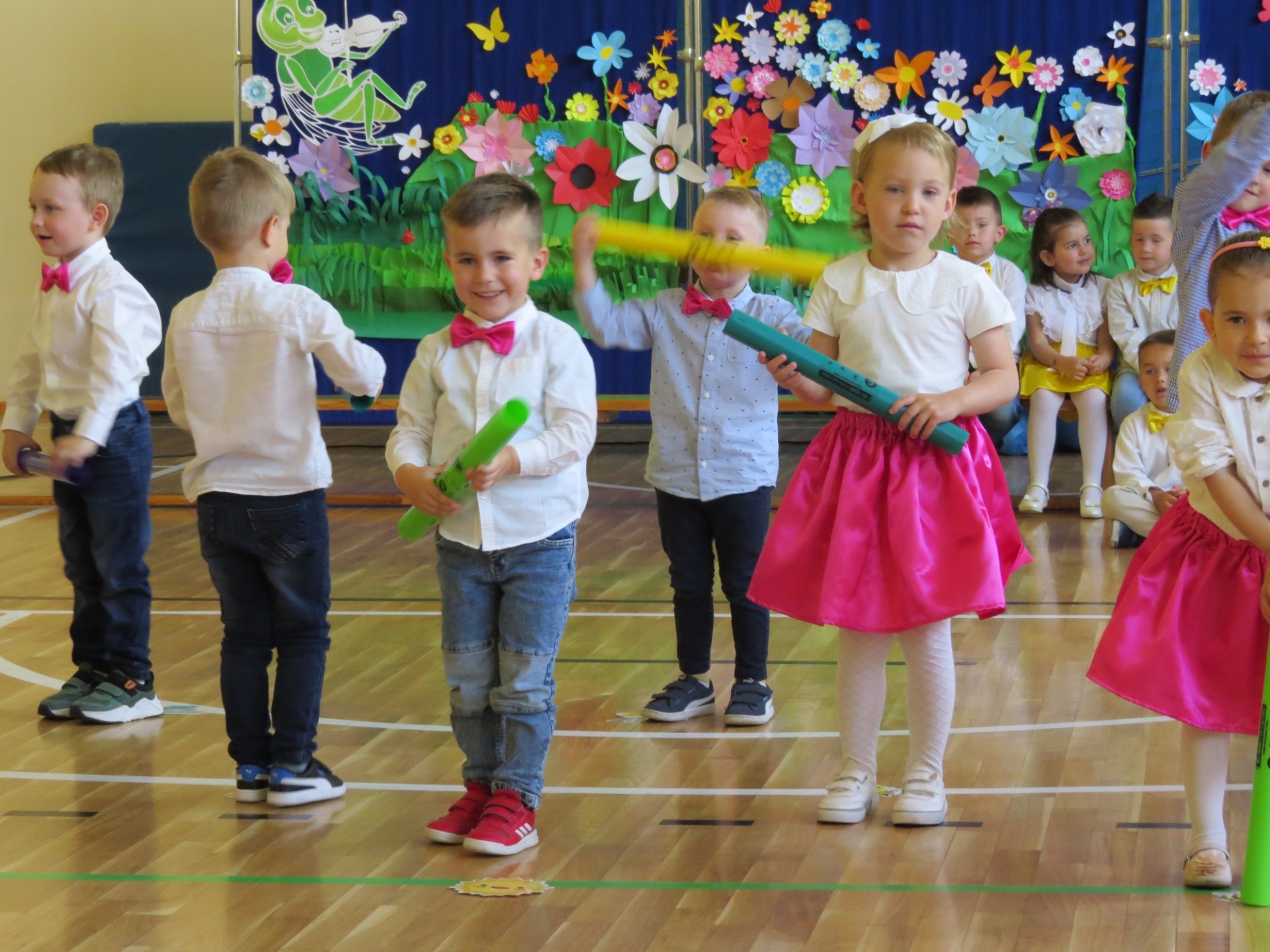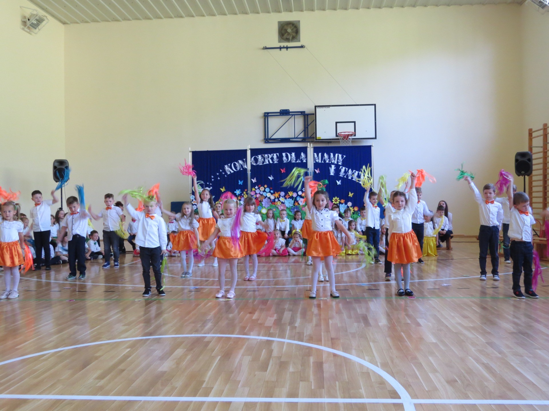 „Koncert dla mamy i taty”. Zebranych gości serdecznie przywitała Dyrektor Natalia Kordeczka, po czym głos zabrały dzieci. Przedszkolaki ubrane w kolorowe stroje pięknie śpiewały, grały i tańczyły, a następne składały życzenia swoim rodzicom i obdarowywały ich kwiatami oraz samodzielnie wykonanymi laurkami.