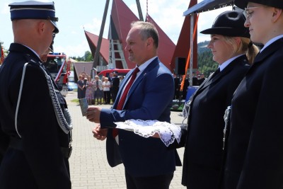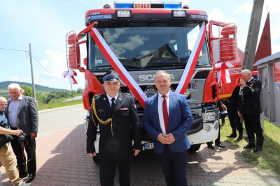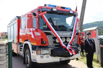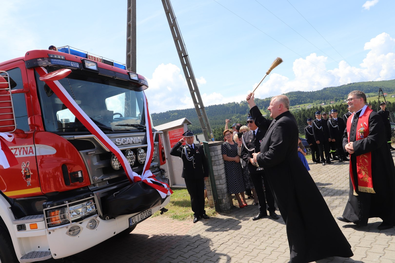 26.05.2024 r. miało miejsce uroczyste poświęcenie ciężkiego samochodu ratowniczo – gaśniczego SCANIA w