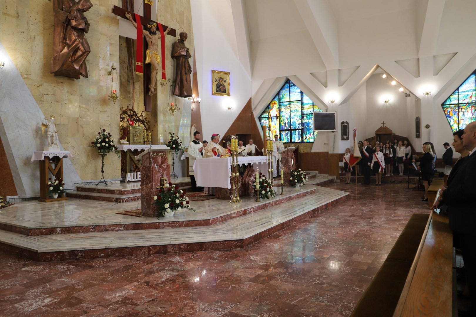 Po części oficjalnej wszyscy zebrani zostali zaproszeni na przerwę obiadową, w czasie której mieli możliwość dokonania wpisu do księgi pamiątkowej założonej na tę okoliczność oraz zobaczenia prac plastycznych uczniów biorących udział w konkursie okolicznościowym pt. „Kwiaty dla Maryi”. Zakończeniem obchodów święta Patronki Szkoły Podstawowej w Kłodnem - Królowej Korony Polskiej oraz nadania sztandaru był koncert krakowskiego zespołu KRacoustic, w skład którego wchodzą: Ryszard Dziurdzia – akordeon, Piotr Bzowski – perkusja, gwizd, gitara, Tomasz Kobiela – gitara oraz Michał Rapka – kontrabas. Repertuar grupy zawierał między innymi instrumentalne wersje utworów jazzowych, muzykę klasyczną oraz filmową, jak również walce francuskie i tango argentyńskie.