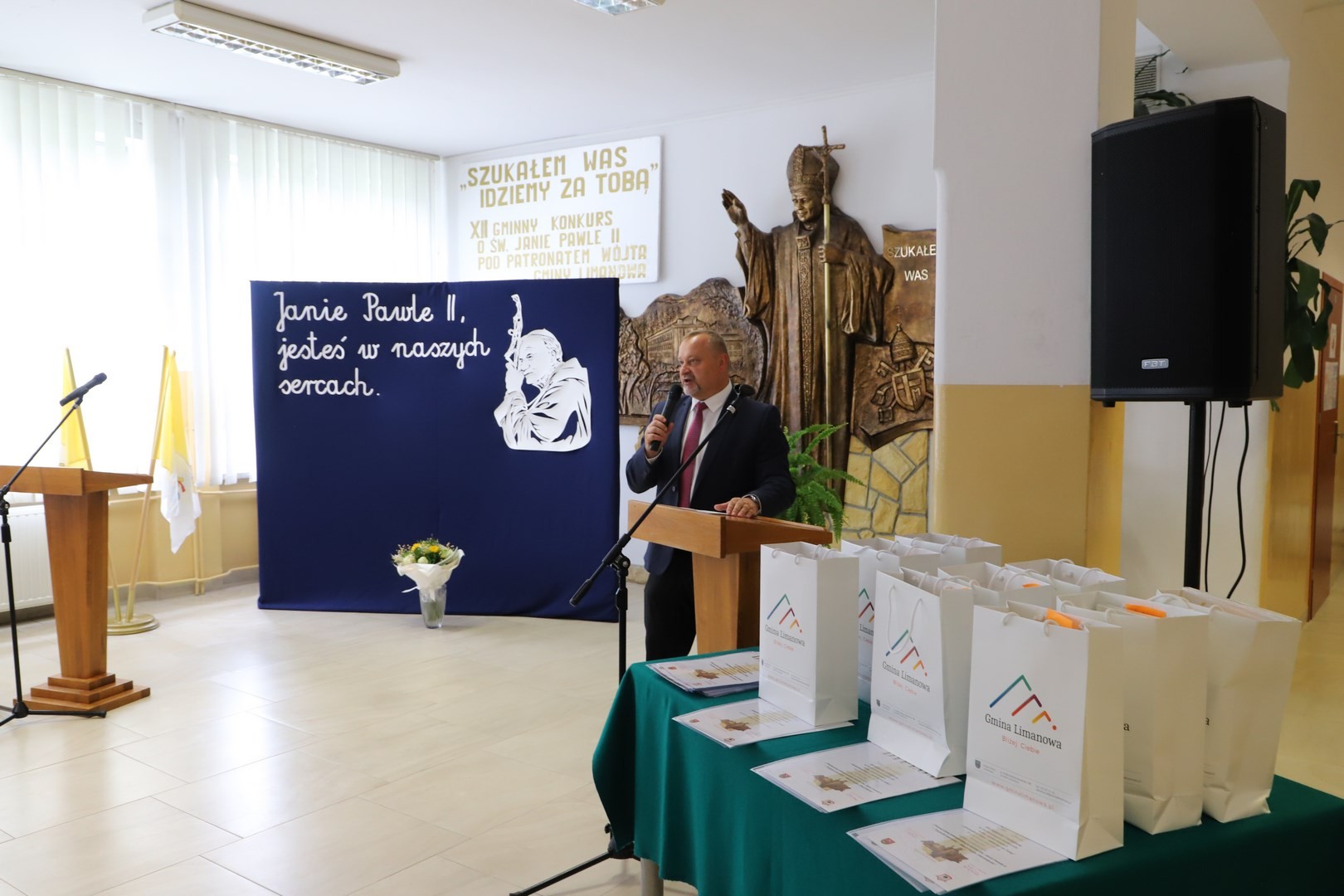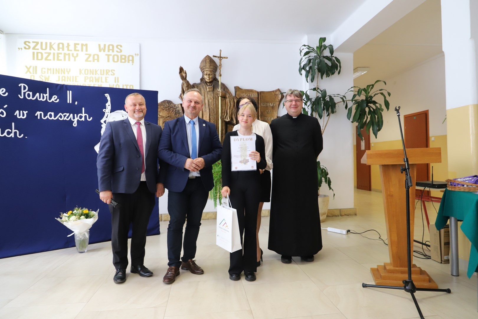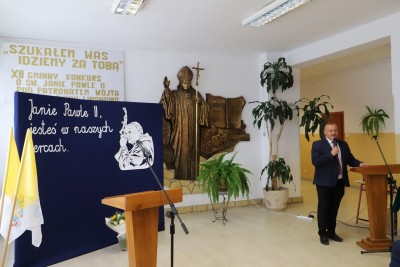 23 maja br. miało miejsce podsumowanie XII edycji Gminnego Konkursu o Janie Pawle II „Szukałem Was – idziemy za Tobą”. W tym roku 34 uczniów z dwunastu szkół rywalizowało w dwóch kategoriach tematycznych: konkursie wiedzy oraz konkursie plastycznym będącym artystyczną interpretacją wiersza Karola Wojtyły pt. „Zdumienie” zawartego w zbiorze „Tryptyk rzymski”.