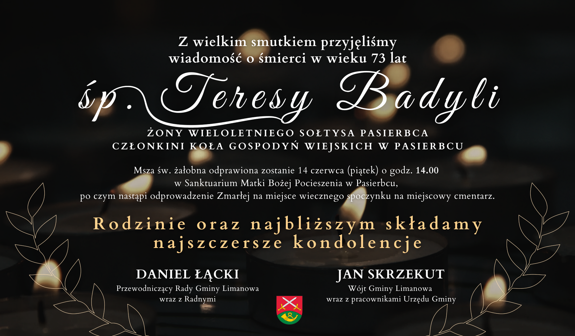 Z wielkim smutkiem przyjęliśmy wiadomość o śmierci w wieku 73 lat śp. Teresy Badyli.