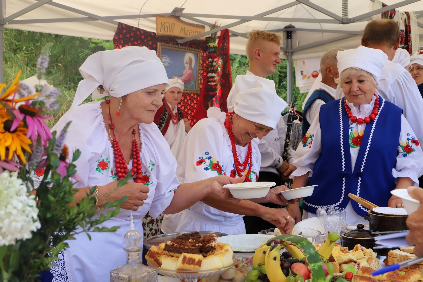 Poza potrawami zgłoszonymi do konkursu, na stoiskach przygotowanych przez członkinie poszczególnych kół nie zabrakło słodkich tradycyjnych wypieków czy wiejskiego chleba ze smalcem i ogórkiem kiszony oraz innych regionalnych przysmaków, którymi można było się poczęstować.