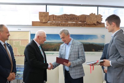 Wójt Gminy Limanowa Jan Skrzekut, Przewodniczący Rady Gminy Limanowa Daniel Łącki, Starosta Limanowski Mieczysław Uryga, oraz Dyrektor Gminnej Biblioteki Publicznej w Starej Wsi Jacenty Musiał.