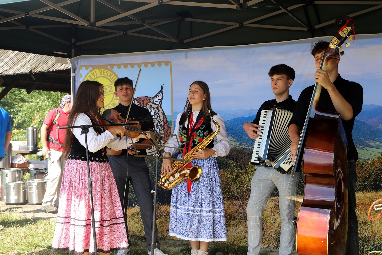 Muzyka lachowska i biesiadna w wykonaniu kapeli towarzyszyła turystom również podczas dalszej części spotkania - konkursów oraz wspólnego poczęstunku przygotowanego przez członków