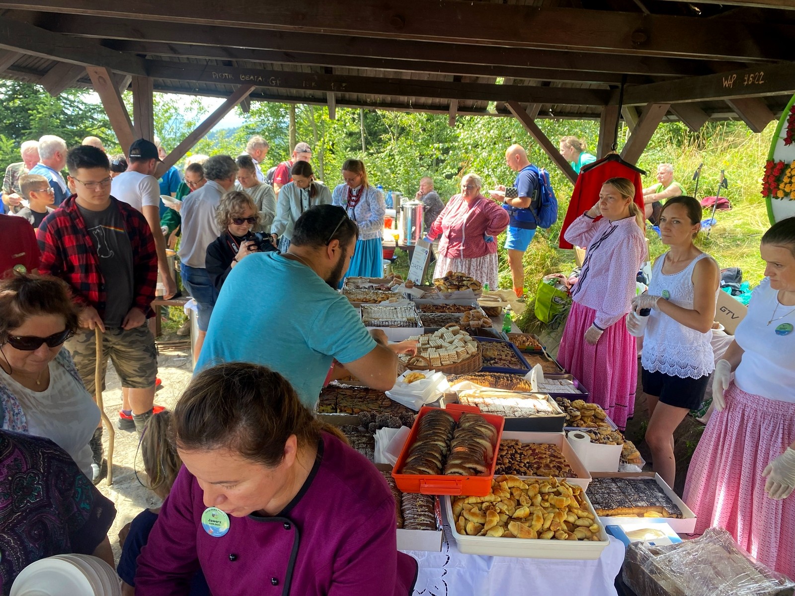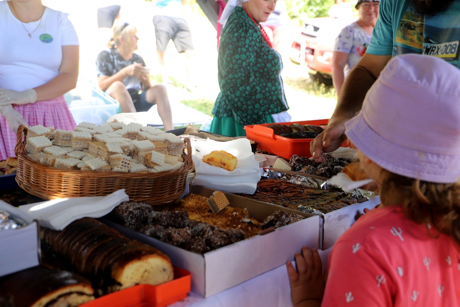 Oprócz ciepłych posiłków jakim były bios oraz grochówka można było skosztować także chleba ze smalcem i ogórkiem kiszonym oraz mnóstwo słodkich wypieków.