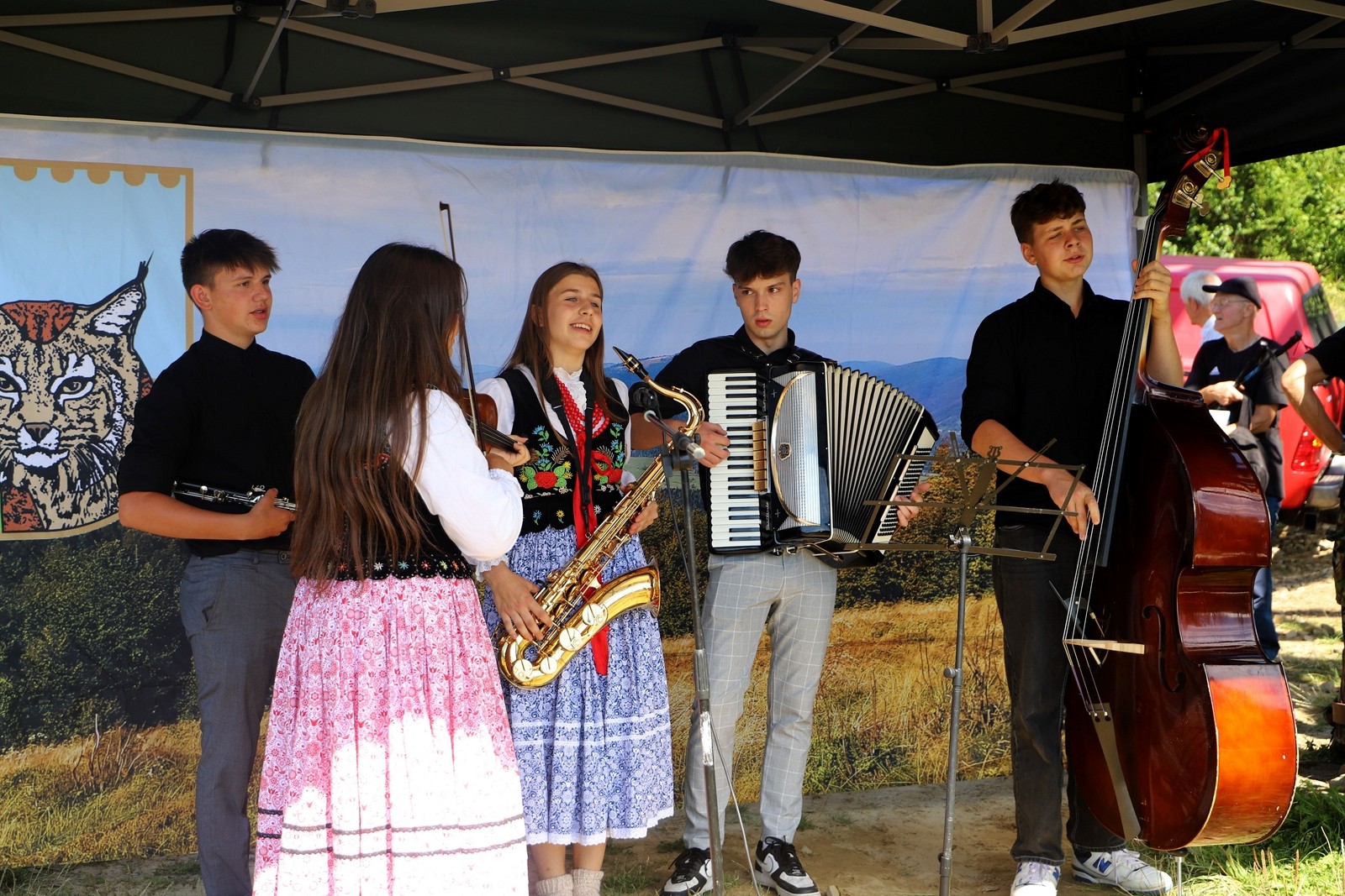 Kapela Zespołu Regionalna „Wyrwani” w składzie: Anna Papież, Aleksandra Żelazko, Maciej Biernat, Jakub Opiela i Tomasz Wyżycki.