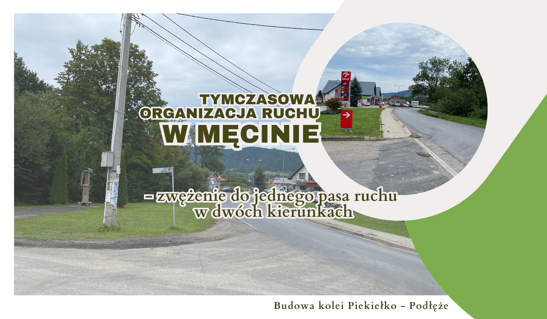 Jeszcze przez kilka tygodni droga Działowska będzie wykorzystywana przez Wykonawcę na odcinku ok 1 km, licząc od drogi powiatowej w Męcinie, w celu prowadzenia bieżących prac budowlanych. Następnie droga Działowska, w miejscu skrzyżowania z zaprojektowaną linią kolejową, zostanie zamknięta do czasu wybudowania w tym miejscu nowego wiaduktu drogowego – w tym czasie ruch dla mieszkańców osiedli znajdujących się na zachód od miejsca zamknięcia będzie odbywał się drogą Działowską w kierunku Pisarzowej a osiedla zlokalizowane na wschód od miejsca zamknięcia (dojeżdżające drogą obok kurnika) będą korzystać z przejazdu po konstrukcji odciążającej zlokalizowanej w miejscu istniejącego mostu.