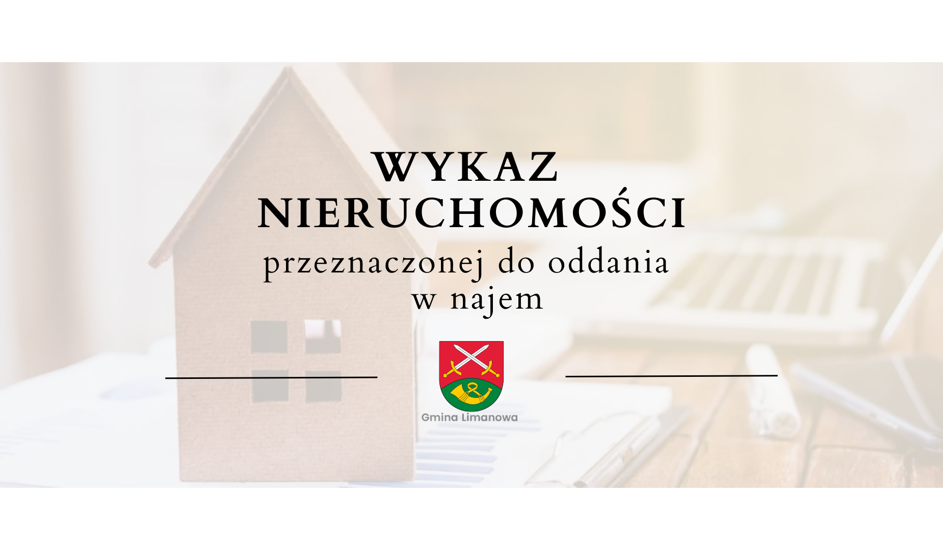 Na podstawie art. 35 ust. 1 i ust. 2 ustawy z dnia 21 sierpnia 1997 r. o gospodarce nieruchomościami (Dz. U. z 2024 r., poz. 1145 ) Wójt Gminy Limanowa podaje do publicznej wiadomości wykaz nieruchomości przeznaczonej do oddania w najem: