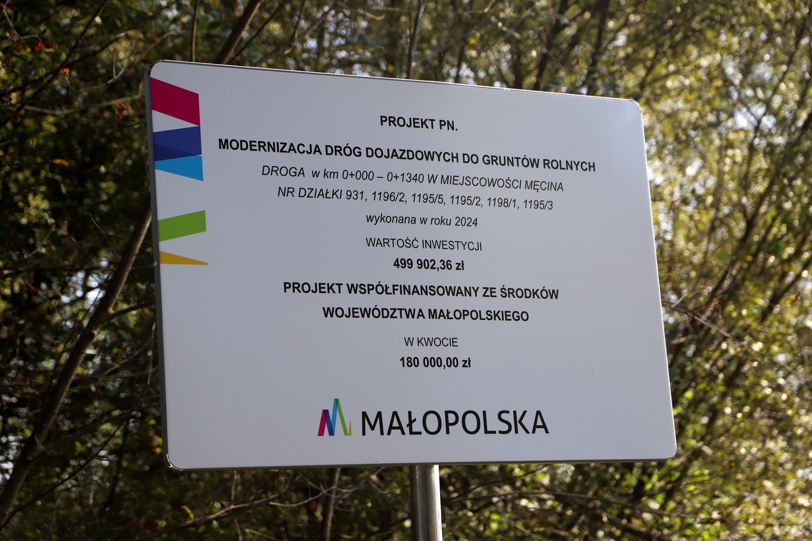 Dzięki pozyskanym na ten cel środkom w wysokości 254 502, 00 zł, wykonana została modernizacja drogi o długości 1340 m  w Męcinie na dz. ew. nr 931, zrealizowana przez firmę ZBD Sp. z o.o