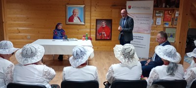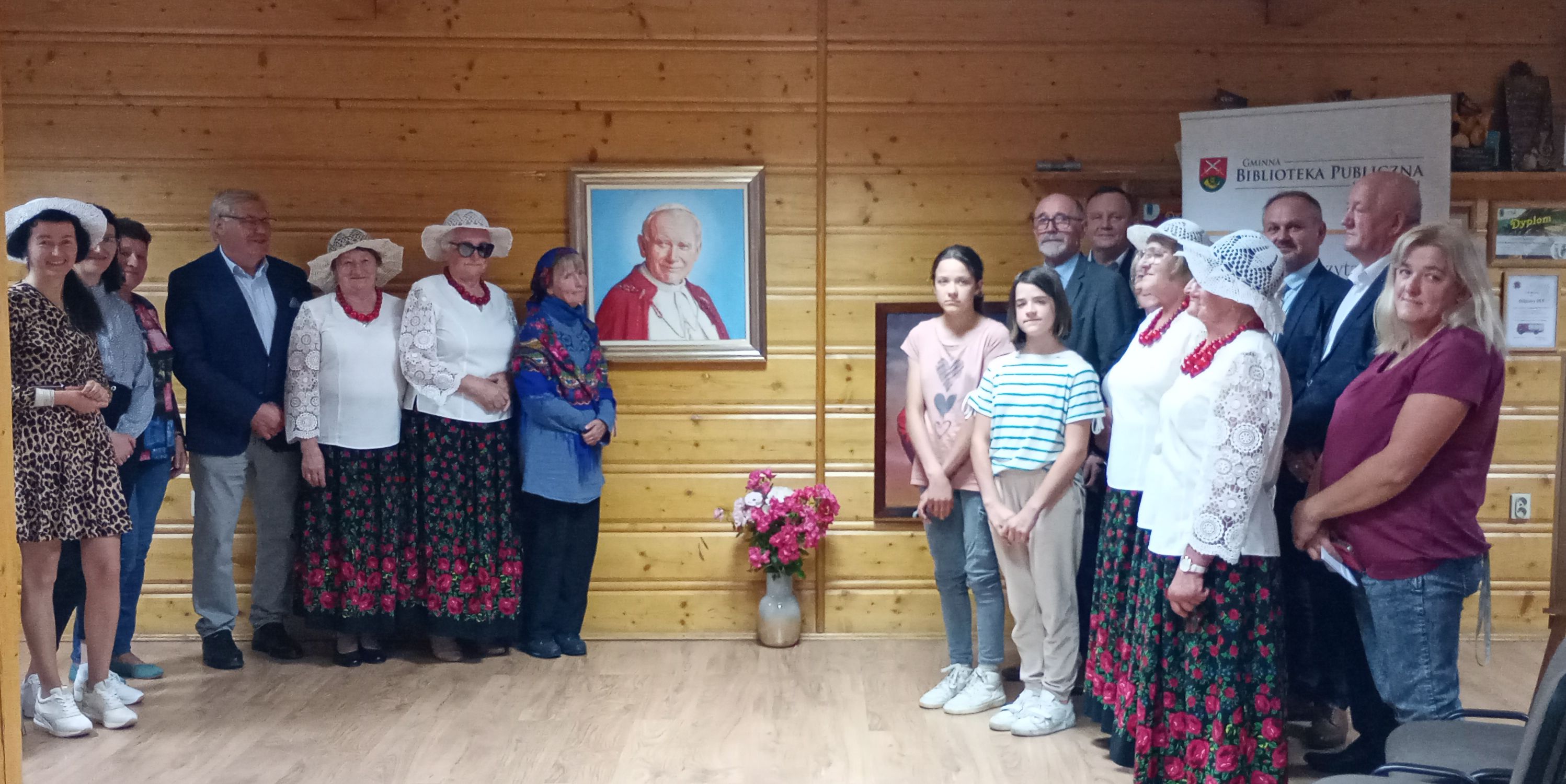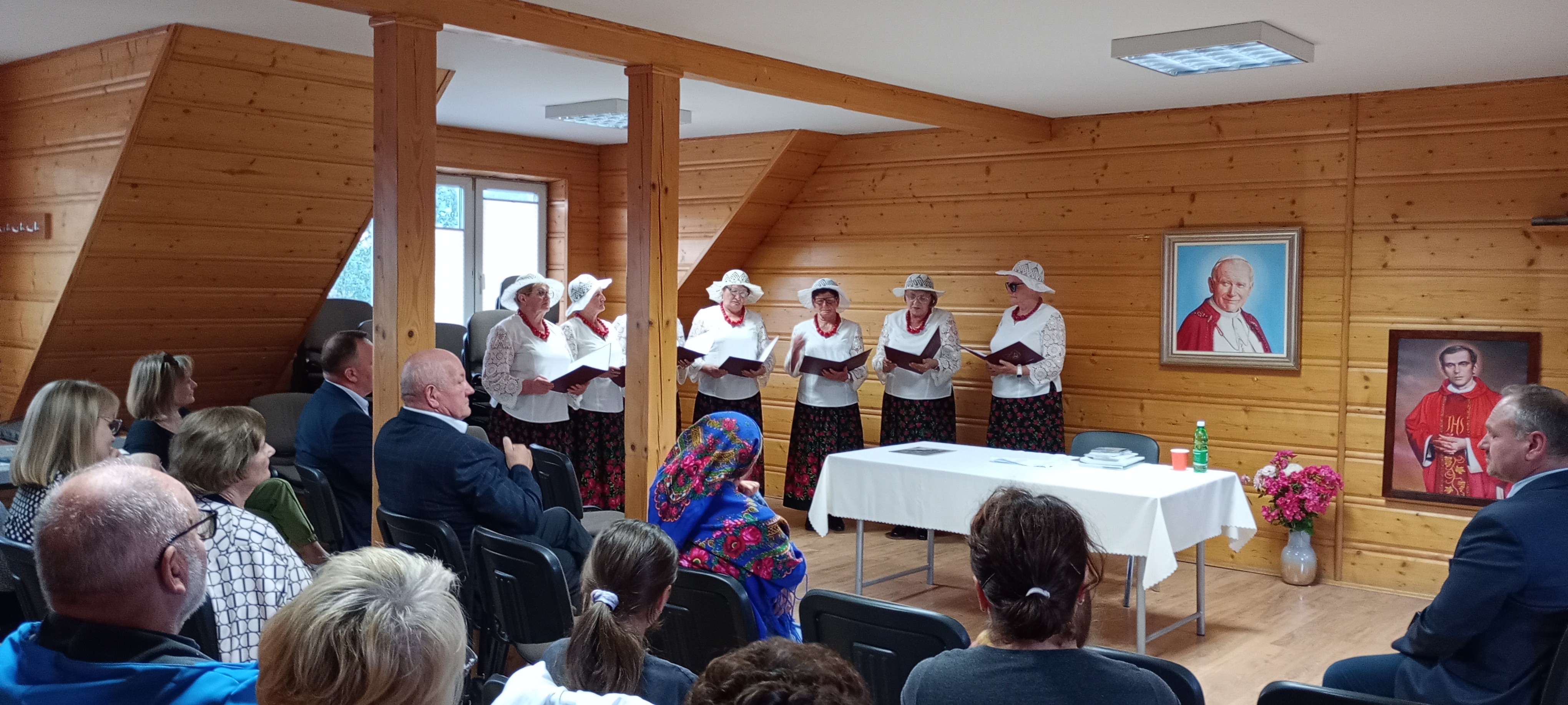 Wzruszającą częścią spotkania był występ Zespołu Seniorów „Tradycja” z Męciny, który zaprezentował spektakl słowno-muzyczny, przywołując najpiękniejsze wspomnienia związane z Janem Pawłem II. Duchowy klimat, który stworzyły seniorki, wypełnił bibliotekę ciepłem, bliskością i wspólnotą. Wykonywane przez zespół pieśni i recytowane teksty wniosły atmosferę zadumy i jednocześnie wdzięczności za życie i dziedzictwo świętego papieża Polaka.