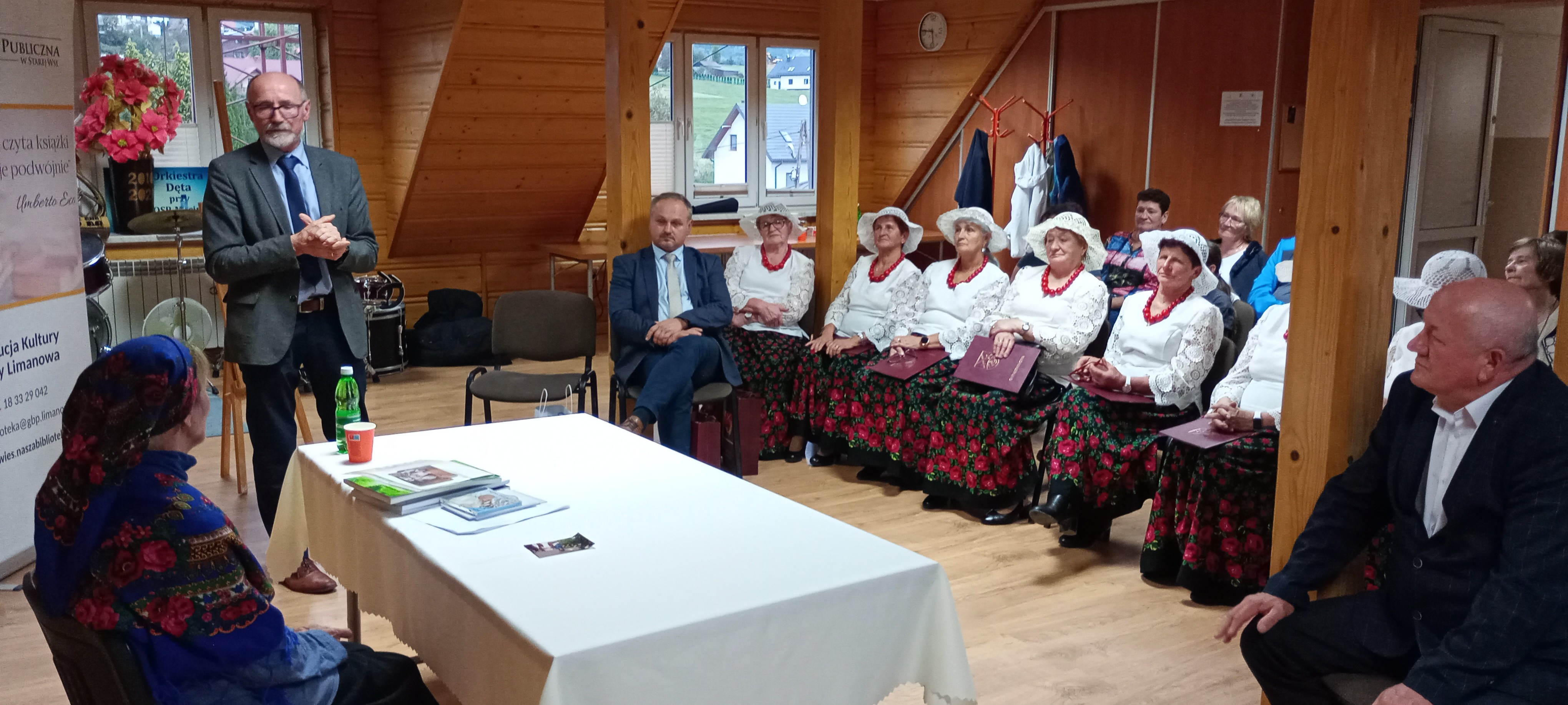 W spotkaniu udział wzięli: Wojciech Włodarczyk, Członek Zarządu Powiatu Limanowskiego, dyrektor szkoły w Kłodnem - Roman Ciesielczyk, Wacław Wiewióra, Wiceprezes Zarządu BS w Limanowej, Stanisław Sajdak, były Radny Gminy Limanowa, Katarzyna Konieczna – aktorka z Męciny, pracownicy biblioteki i mieszkańcy.