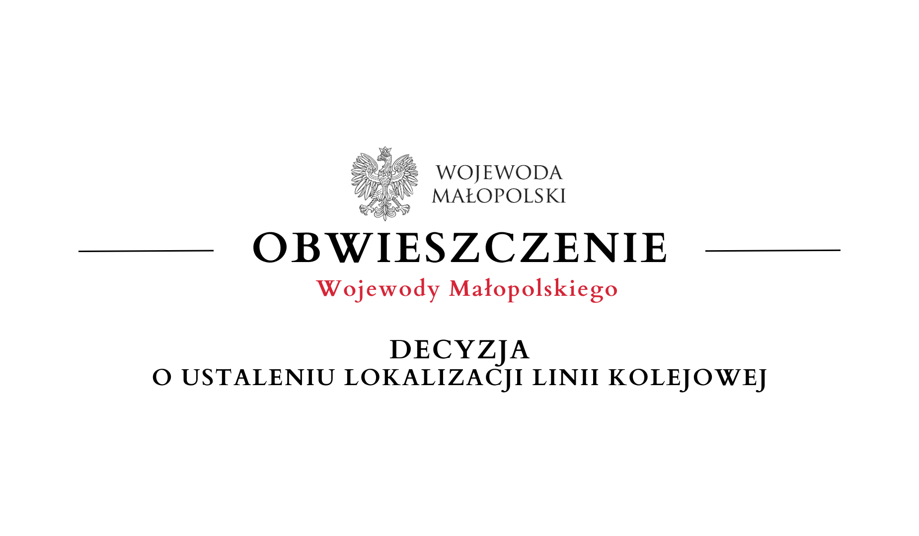 Na podstawie rozdziału 2b, art. 9o, 9q oraz 9w ustawy z dnia 28 marca 2003 r. o transporcie kolejowym (Dz.U.2024.697) – dalej: Specustawa oraz art. 104 § 2 ustawy z dnia 14 czerwca 1960 r. Kodeks postępowania administracyjnego (Dz.U.2024.572) – dalej: Kpa, po rozpatrzeniu wniosku inwestora: PKP Polskie Linie Kolejowe S.A. (ul. Targowa 74, 03-734 Warszawa), działającego przez pełnomocników (wniosek o wydanie decyzji o ustaleniu lokalizacji linii kolejowej, (złożony w Małopolskim Urzędzie Wojewódzkim w Krakowie: 22 lutego 2024 r., uzupełniony 22 sierpnia oraz 9 września 2024 r.),