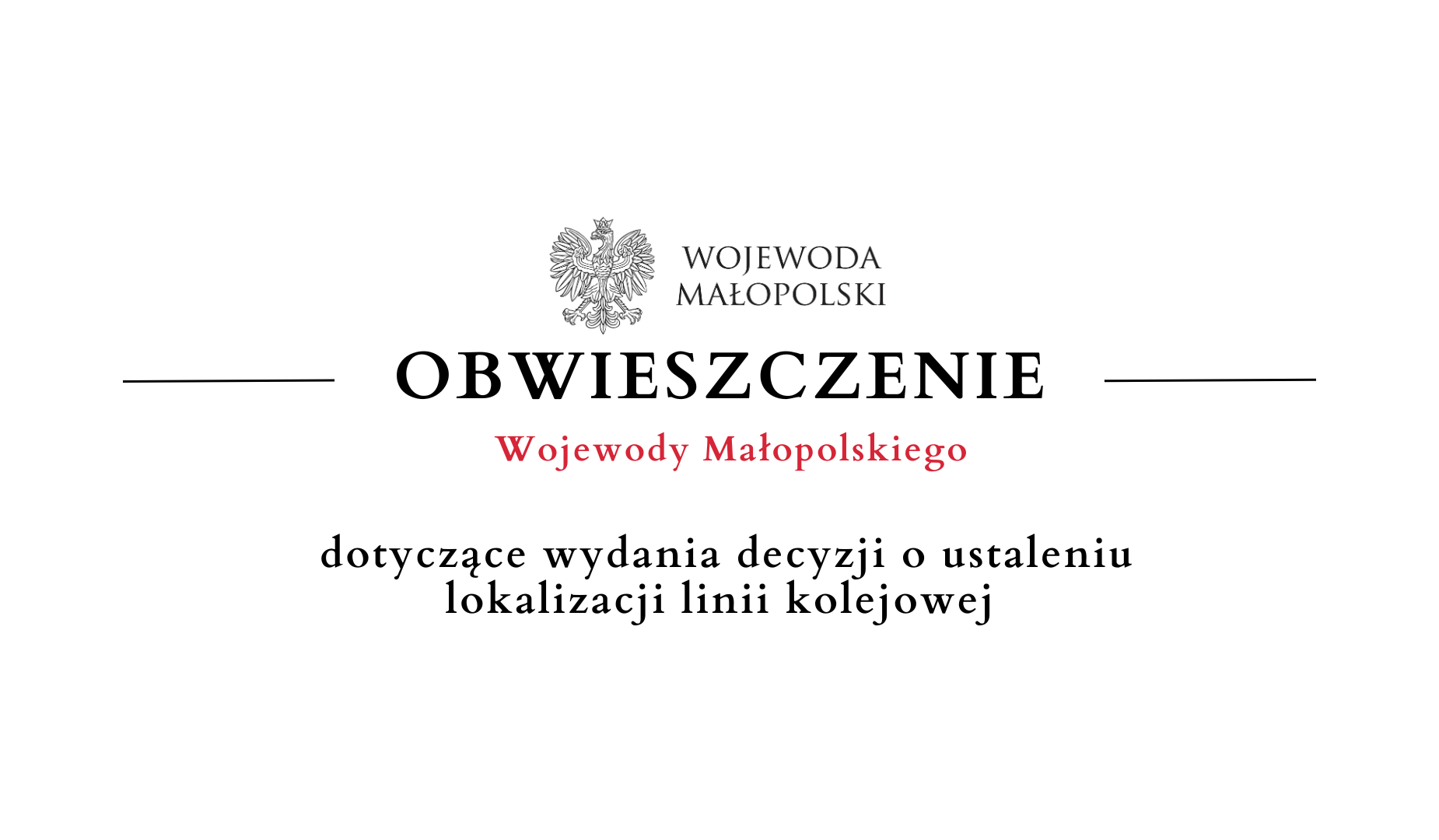 Obwieszczenie Wojewody Małopolskiego - wydanie decyzji o ustaleniu lokalizacji linii kolejowej