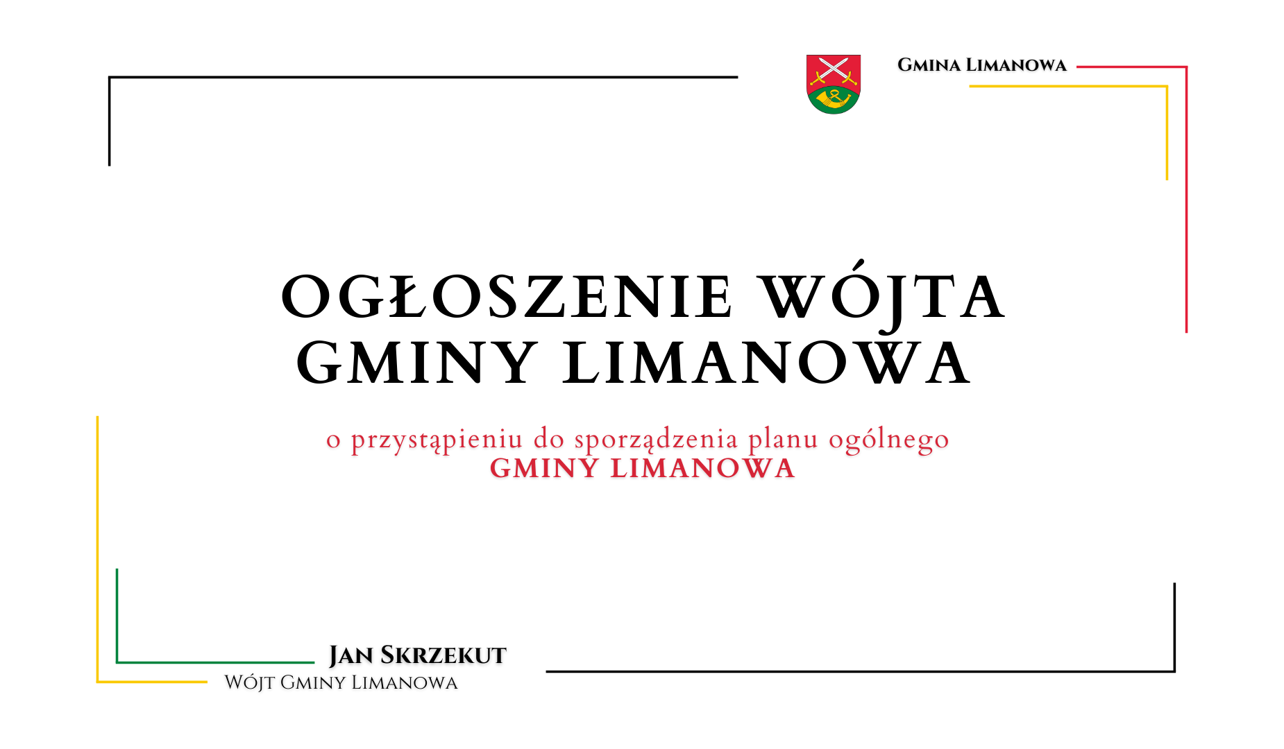 ogłaszam o podjęciu przez Radę Gminy Limanowa Uchwały Nr XXXIV/381/2024 z dnia 14 marca 2024 roku w sprawie przystąpienia do sporządzenia planu ogólnego Gminy Limanowa.