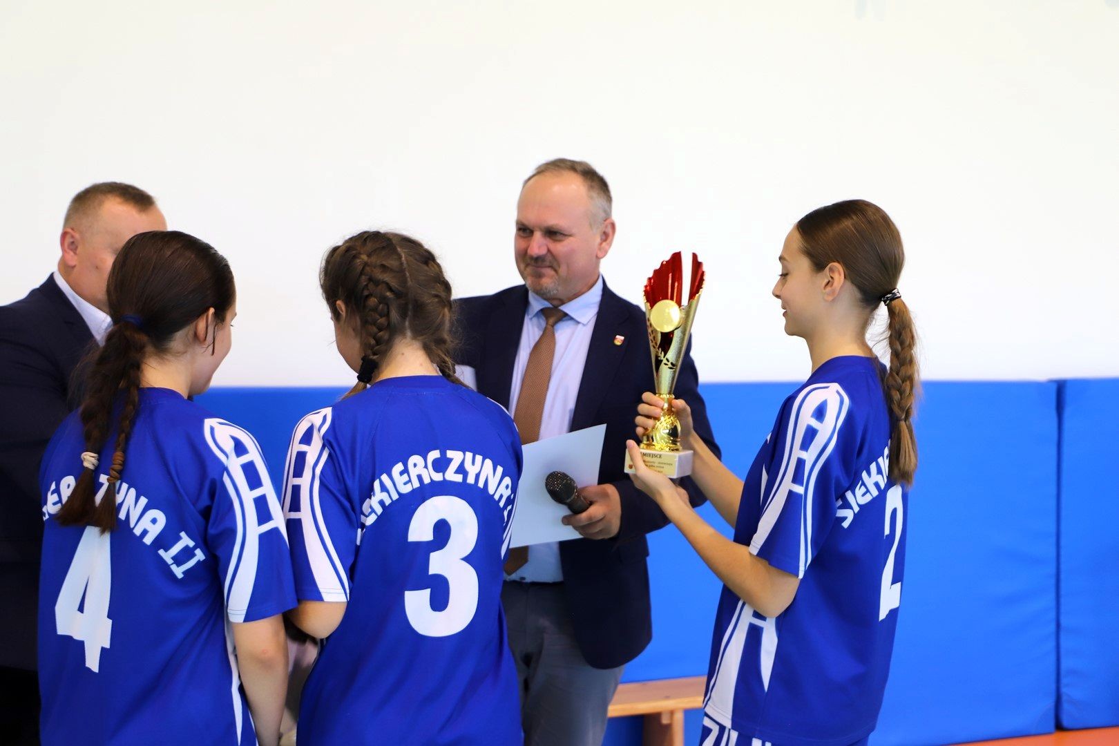 Wręczenia dyplomów oraz nagród uczestnikom rozgrywek piłkarskich dokonali, Jan Skrzekut Wójt Gminy Limanowa i dyrektor Szkoły Podstawowej nr 1 w Męcinie Grzegorz Krzak.