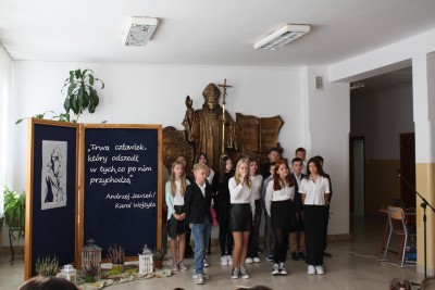 Aplauz publiczności był wyrazem wdzięczności oraz najwymowniejszą nagrodą dla występujących uczniów, a także ich opiekunów. Na zakończenie głos zabrał dyrektor szkoły Grzegorz Krzak. Dziękując za uczczenie pamięci i osoby patrona szkoły, podkreślił jednocześnie Jego nieocenioną rolę w dziejach Kościoła oraz historii ludzkości.