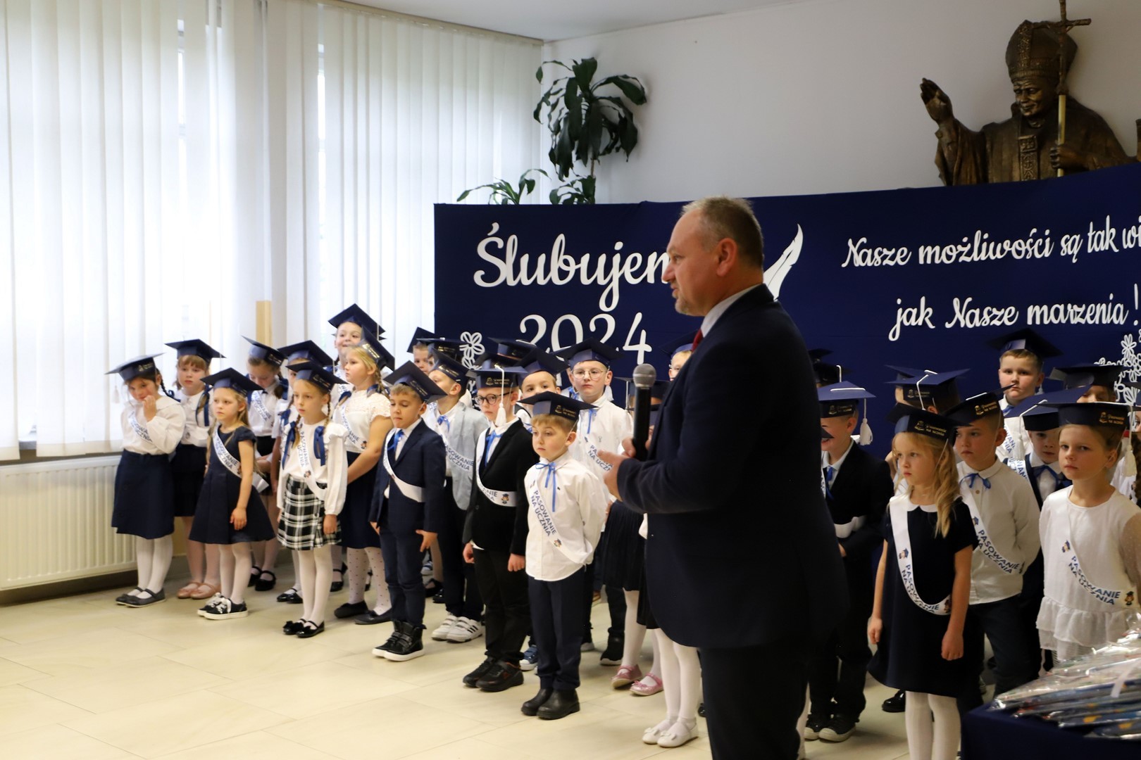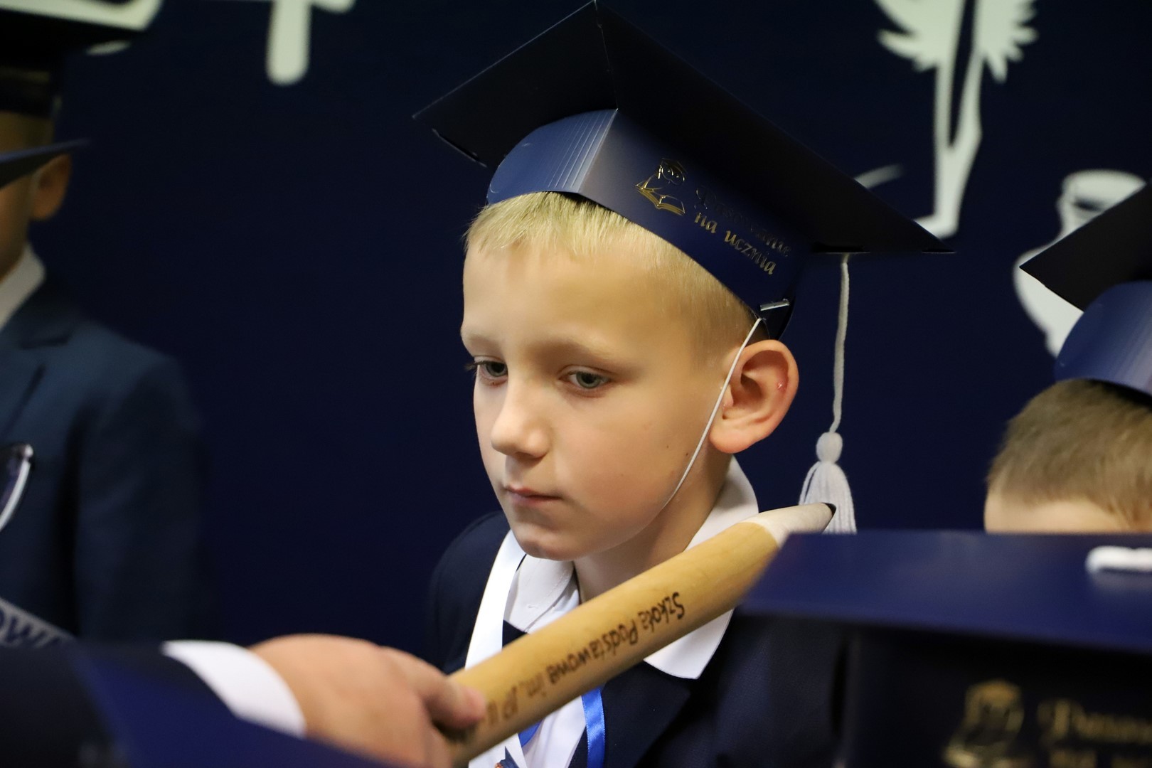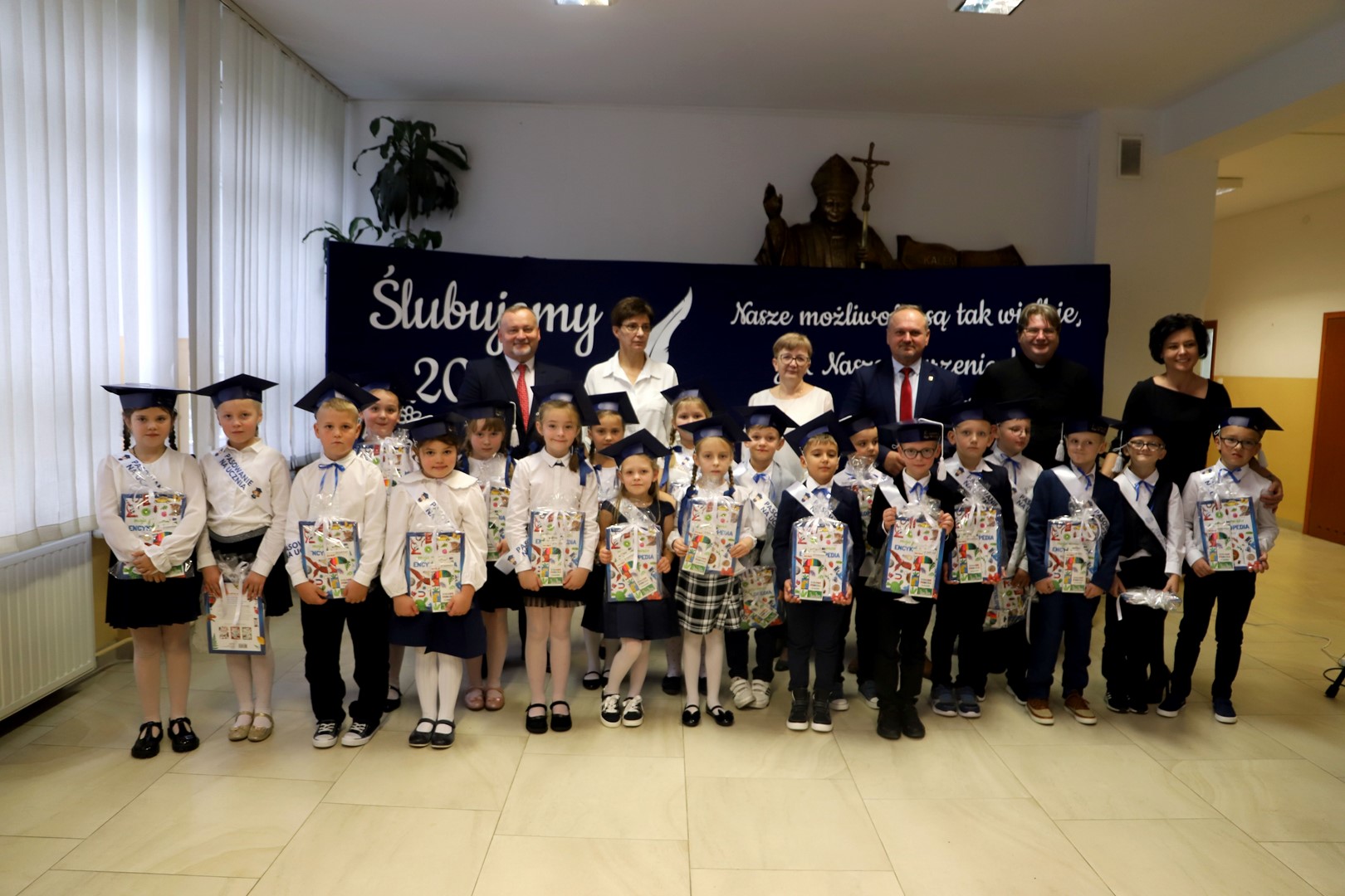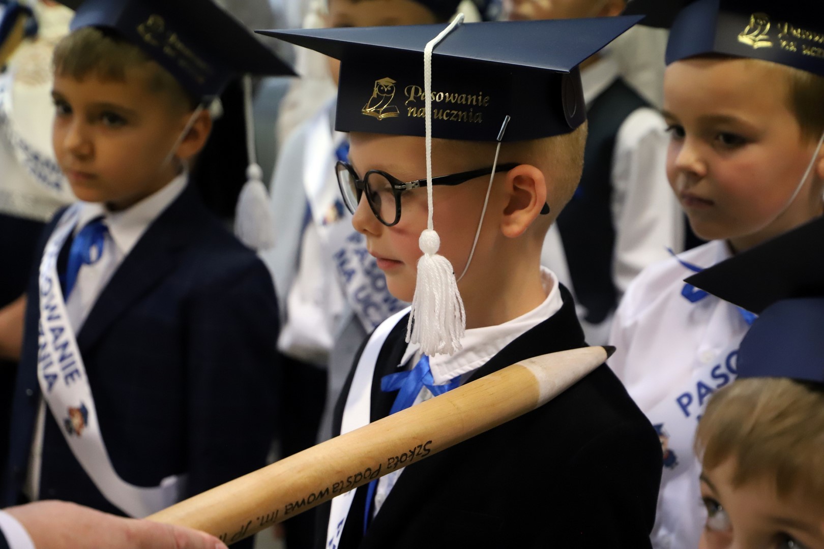 Najważniejszym momentem uroczystości było złożenie przez dzieci uroczystego ślubowania na sztandar szkoły oraz pasowanie na uczniów. Pierwszoklasiści złożyli przyrzeczenie bycia dobrymi Polakami, godnego reprezentowania swojej szkoły oraz bycia powodem do dumy dla rodziców i nauczycieli. Następnie Dyrektor dokonał symbolicznego pasowania na ucznia oraz podarował pierwszakom upominki, a także ich pierwszy dokument – legitymację szkolną.