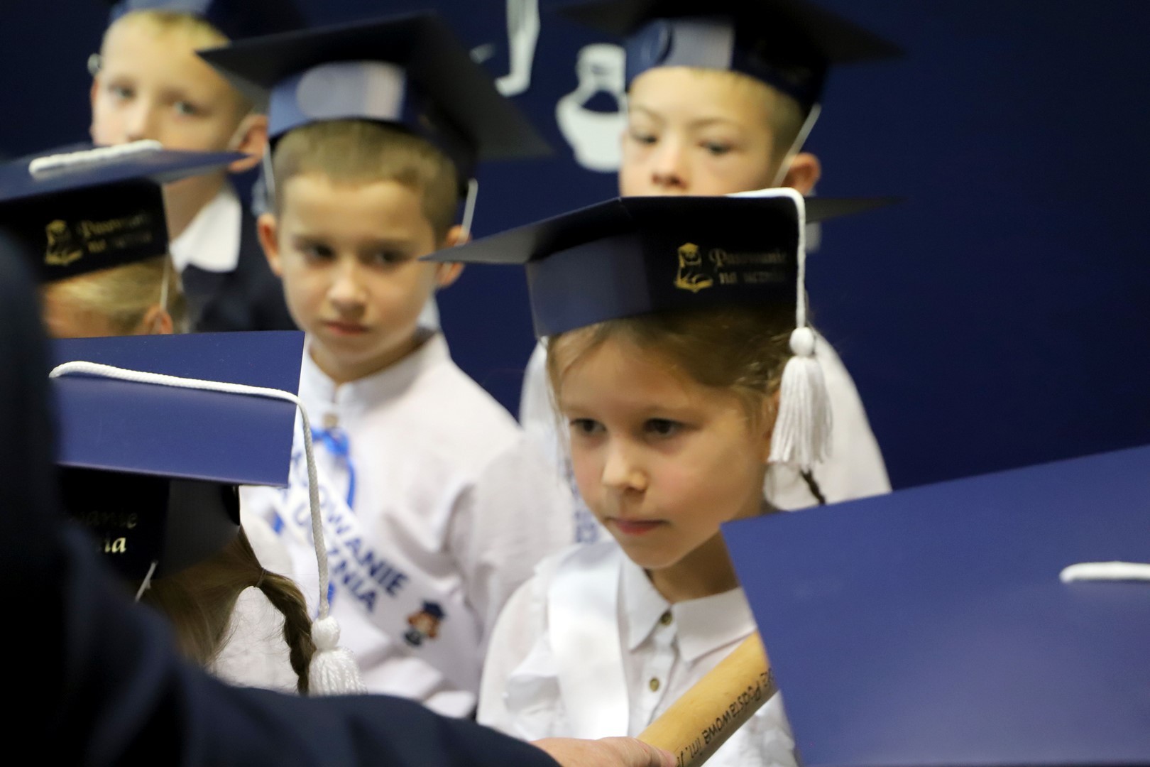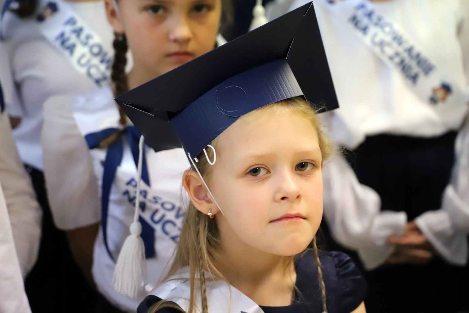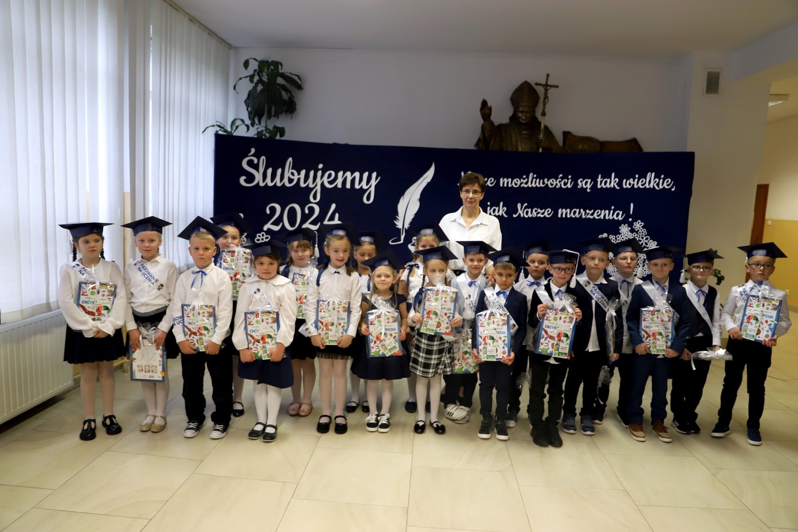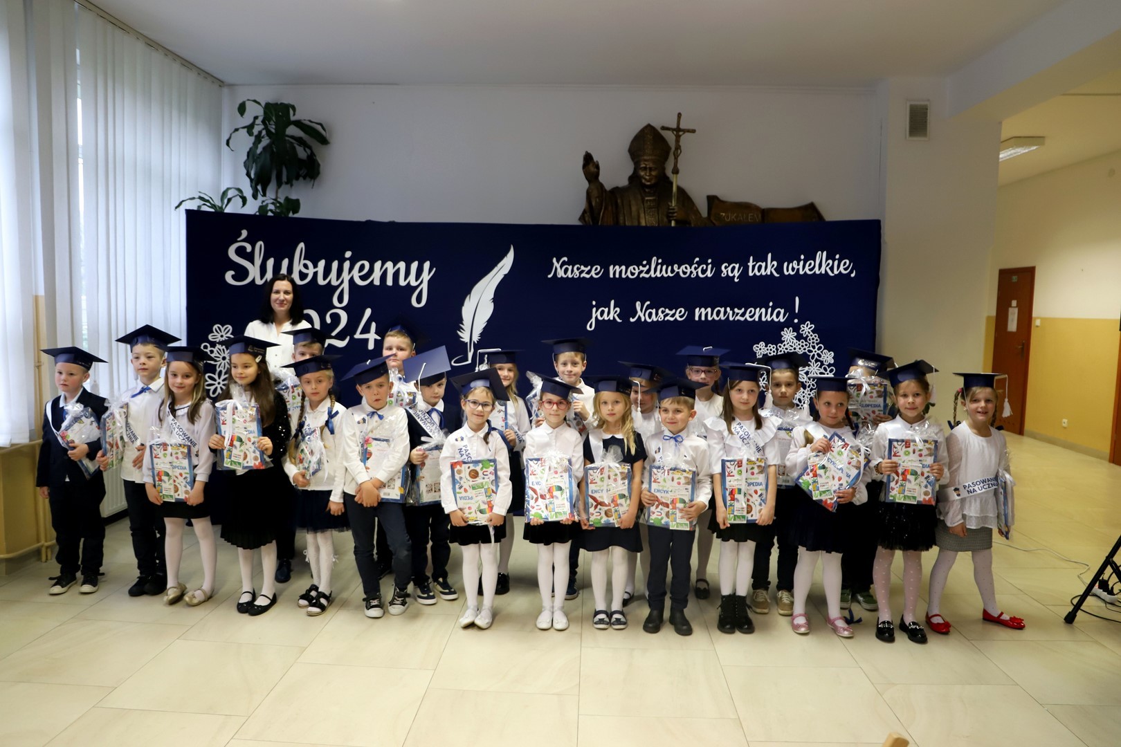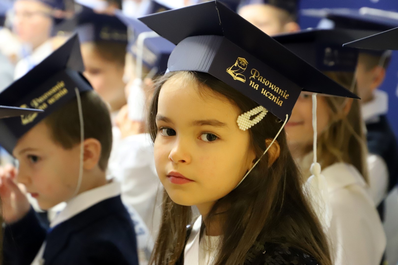 Najważniejszym momentem uroczystości było złożenie przez dzieci uroczystego ślubowania na sztandar szkoły oraz pasowanie na uczniów. Pierwszoklasiści złożyli przyrzeczenie bycia dobrymi Polakami, godnego reprezentowania swojej szkoły oraz bycia powodem do dumy dla rodziców i nauczycieli. Następnie Dyrektor dokonał symbolicznego pasowania na ucznia oraz podarował pierwszakom upominki, a także ich pierwszy dokument – legitymację szkolną.
