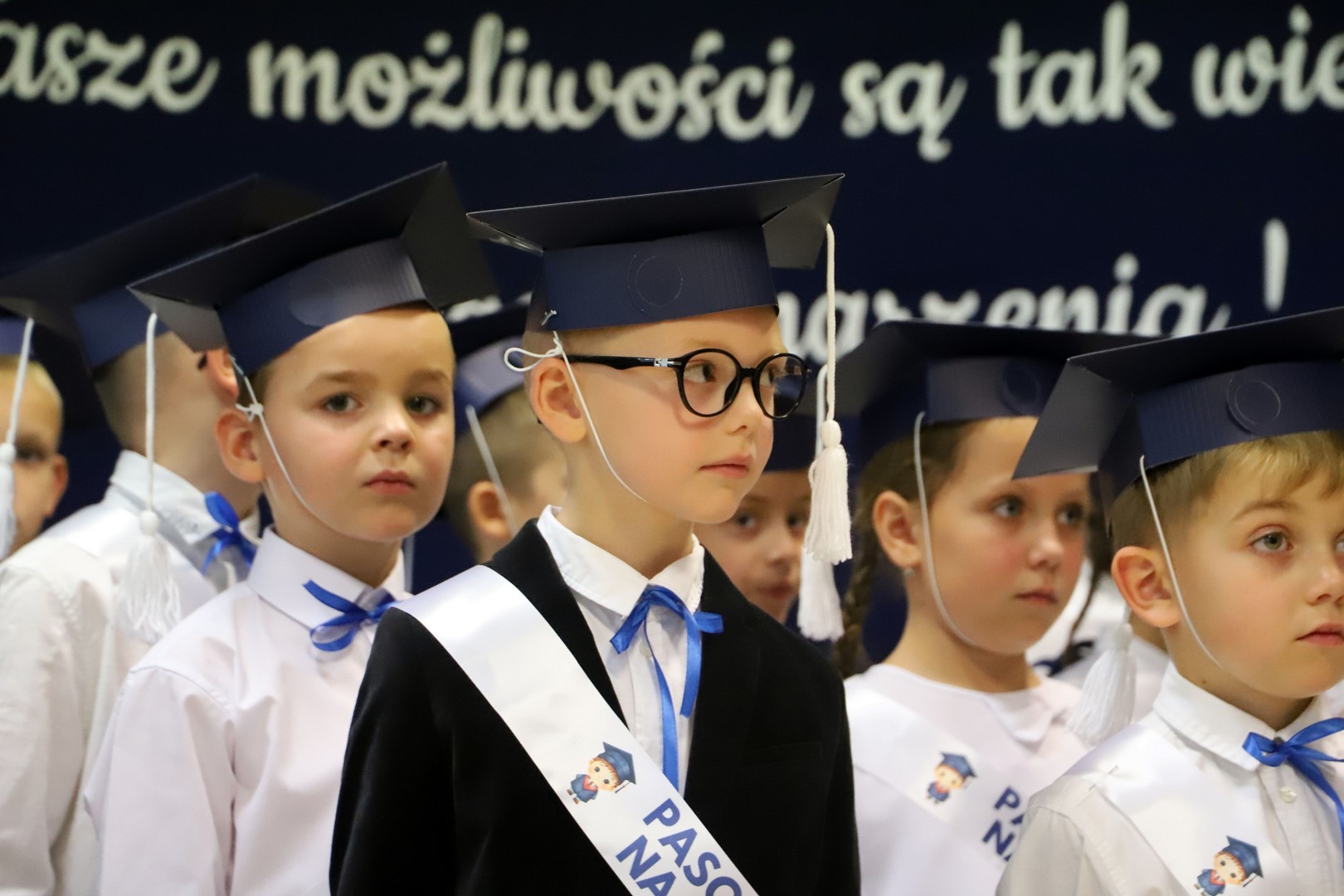 pasowania na uczniów dzieci z oddziałów IA oraz IB. Przybyli na nią zaproszeni goście w osobach: Wójta Gminy Limanowa - Jana Skrzekuta, Dyrektor Gminnego Zespołu Obsługi Szkół - Edyty Król, Dyrektora Szkoły – Grzegorza Krzaka, Wicedyrektor – Beaty Jabłońskiej, księdza proboszcza - Witold Machalskiego oraz rodziców.