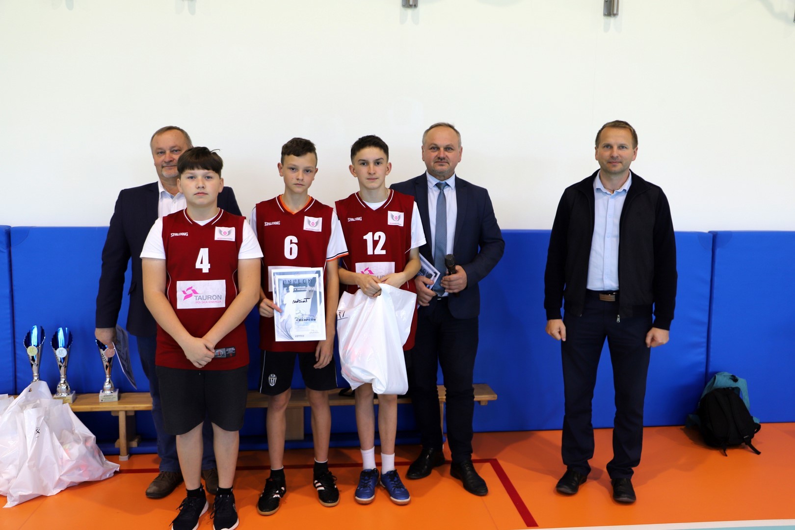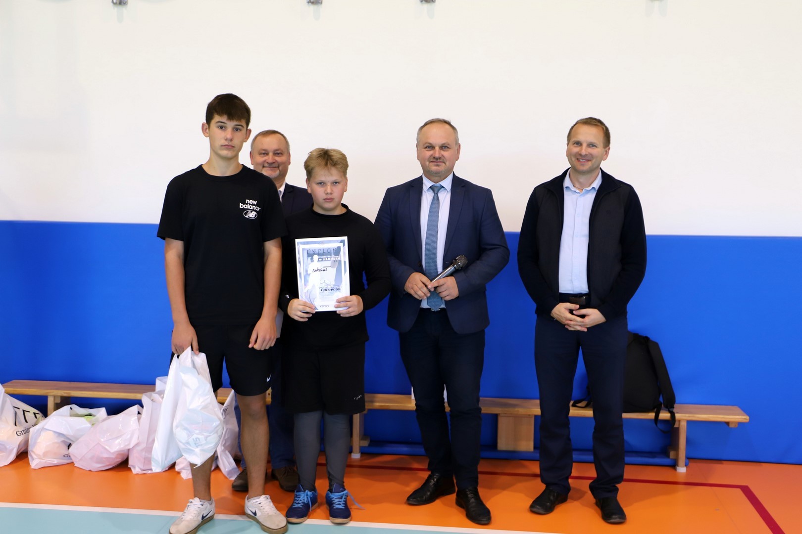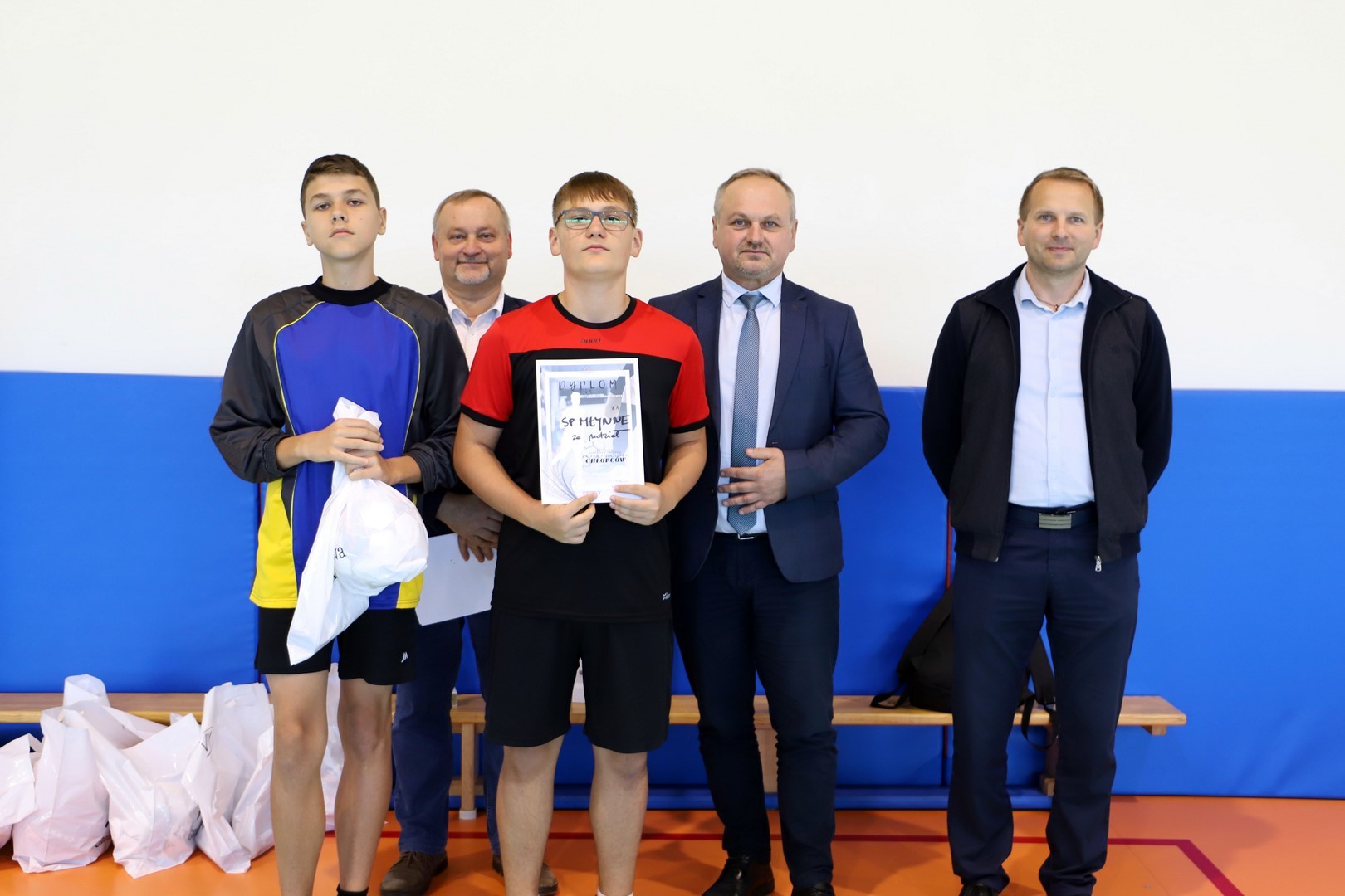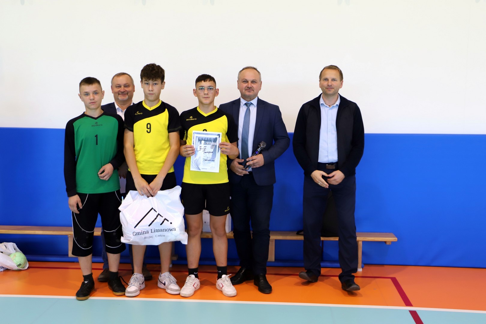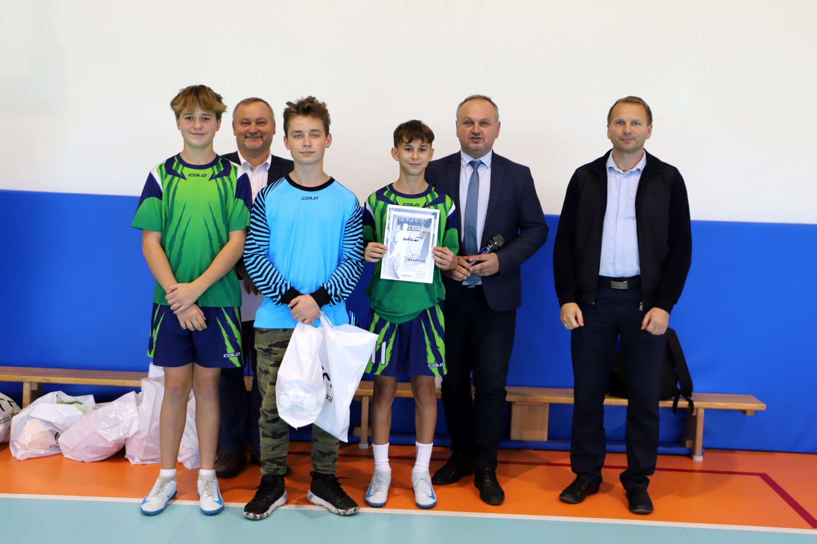 Wręczenia dyplomów oraz nagród uczestnikom rozgrywek piłkarskich dokonali, Jan Skrzekut Wójt Gminy Limanowa, Wojciech Pazdan zastępca Wójta Gminy Limanowa i dyrektor Szkoły Podstawowej nr 1 w Męcinie Grzegorz Krzak.
