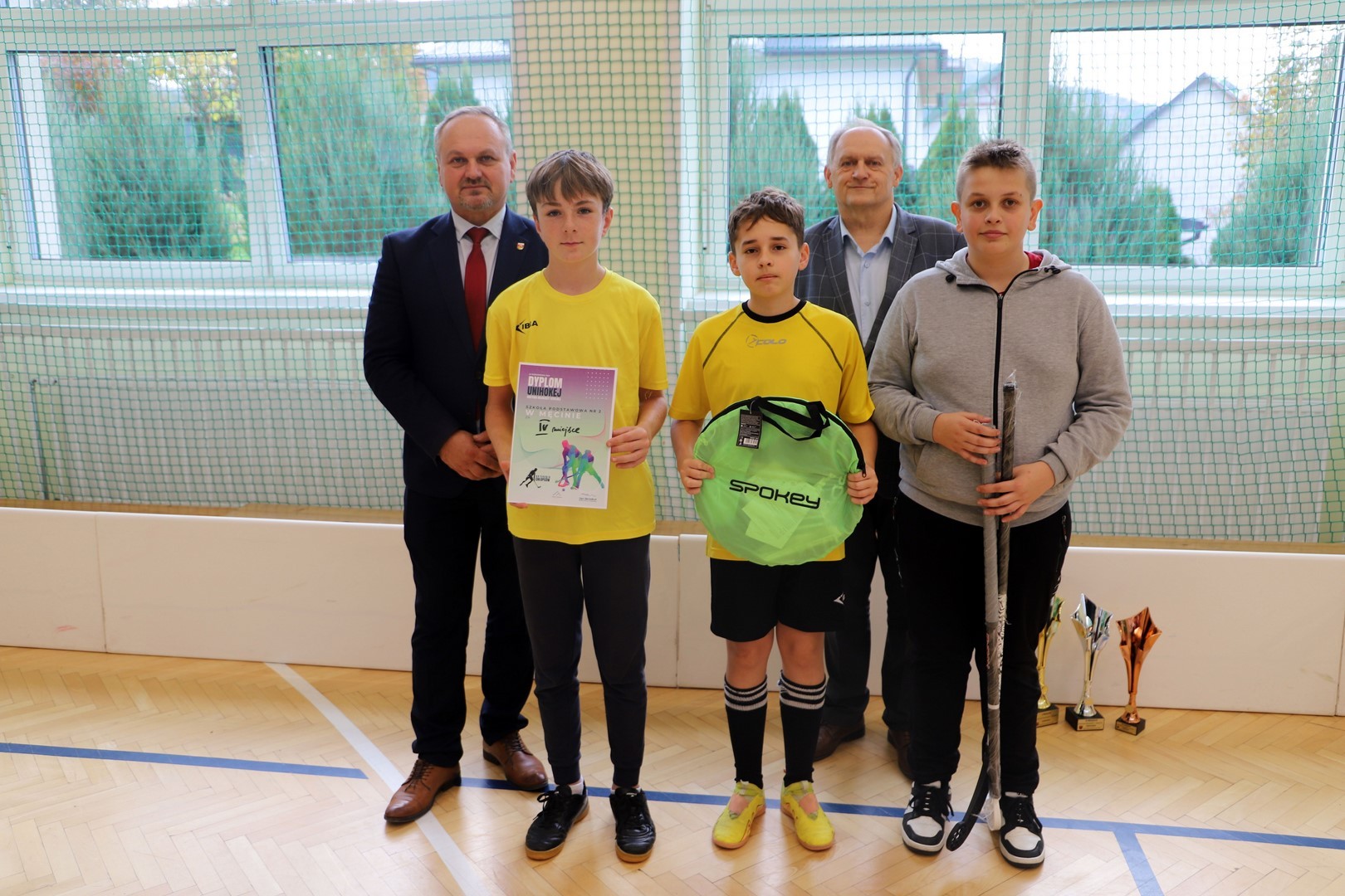 Wręczenia dyplomów oraz pucharów uczestnikom rozgrywek piłkarskich dokonali, Jan Skrzekut – Wójt Gminy Limanowa oraz Dyrektor Szkoły Podstawowej nr 2 w Starej Wsi – Marek Twaróg.