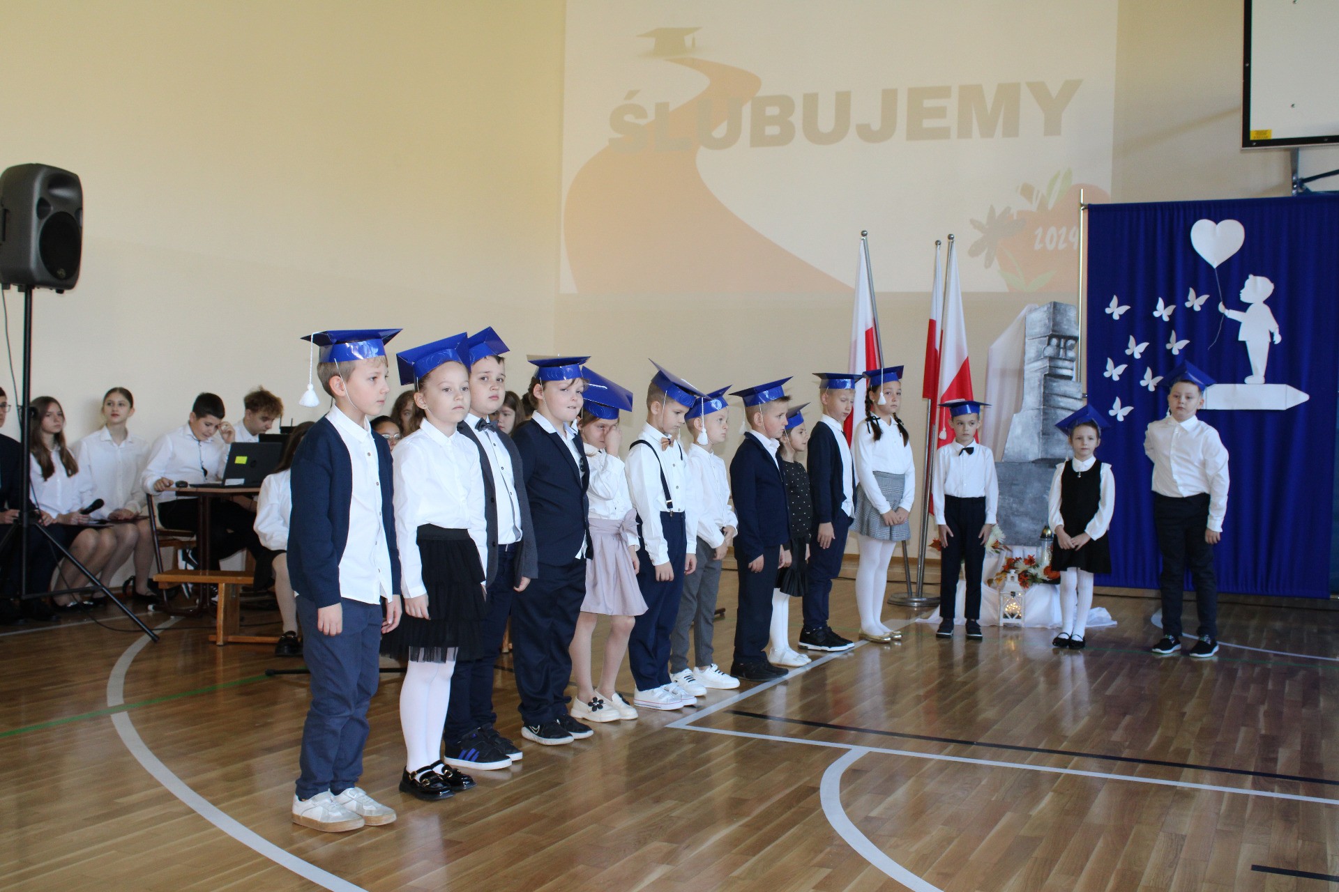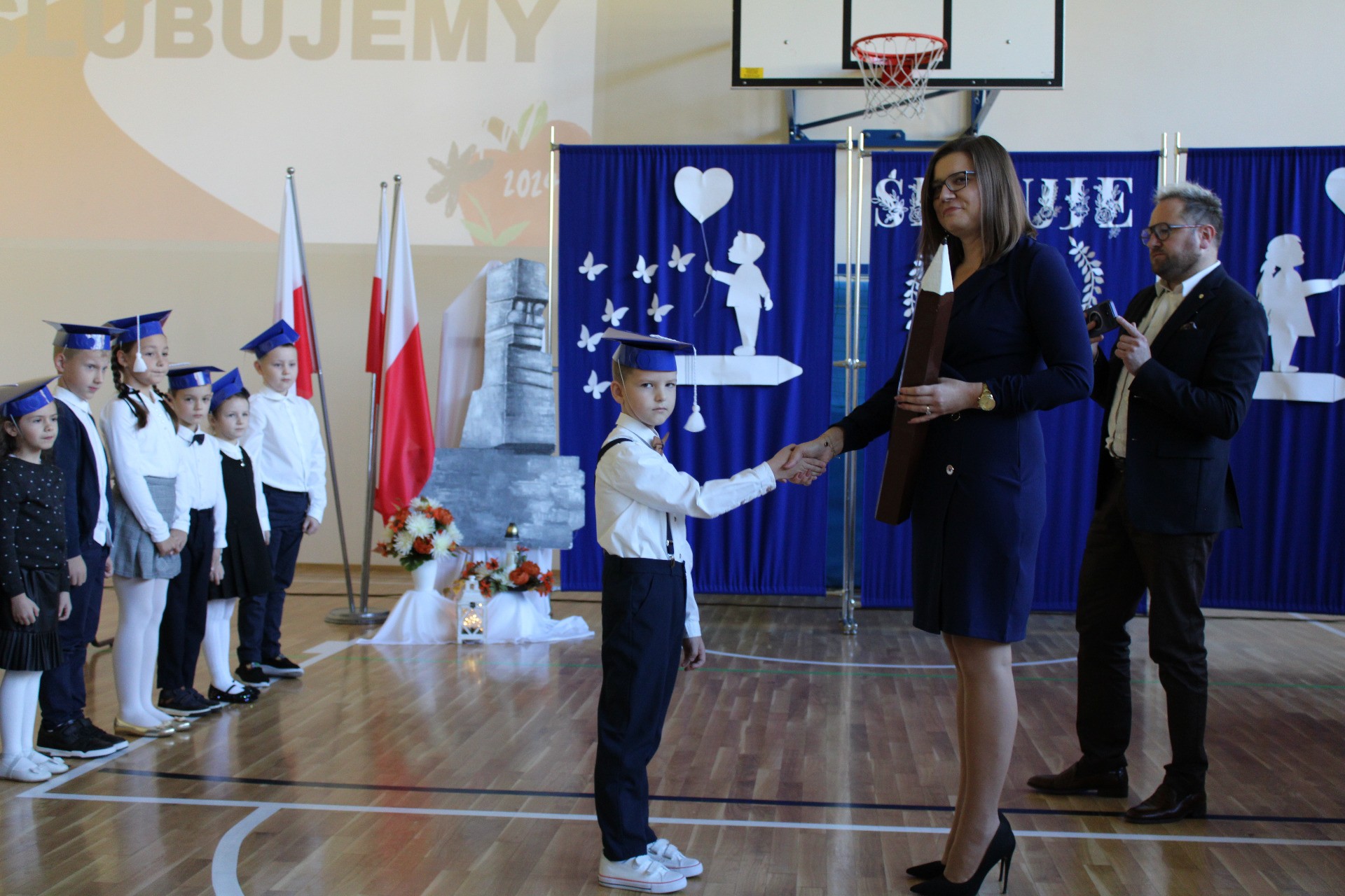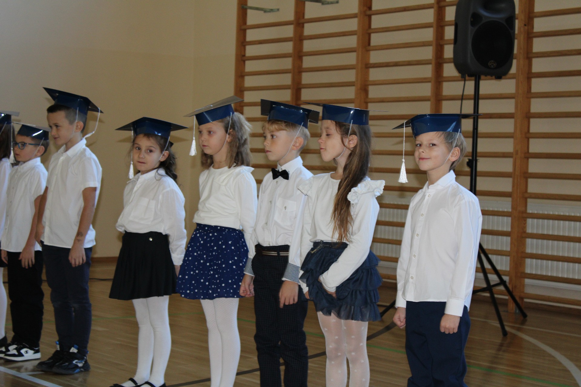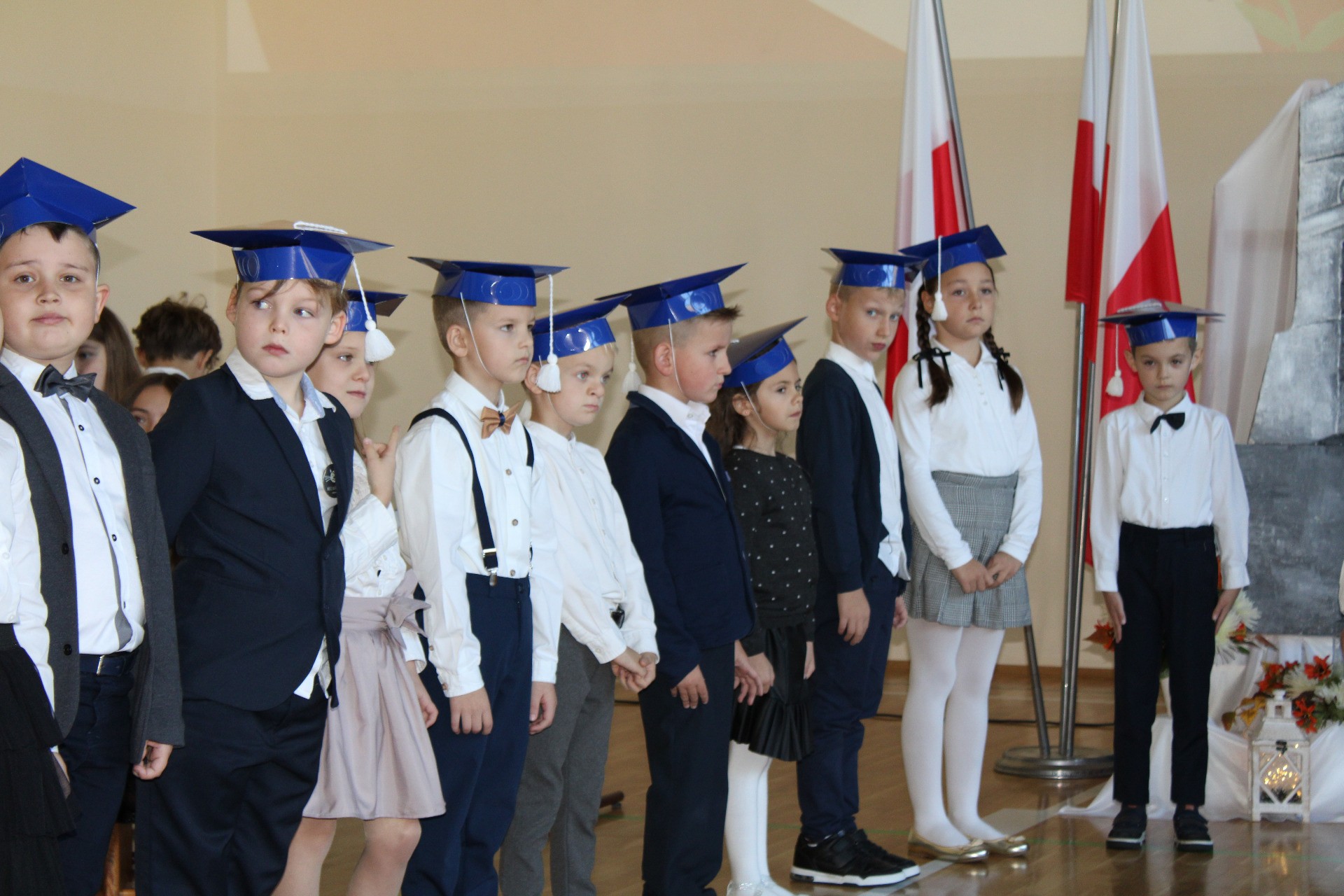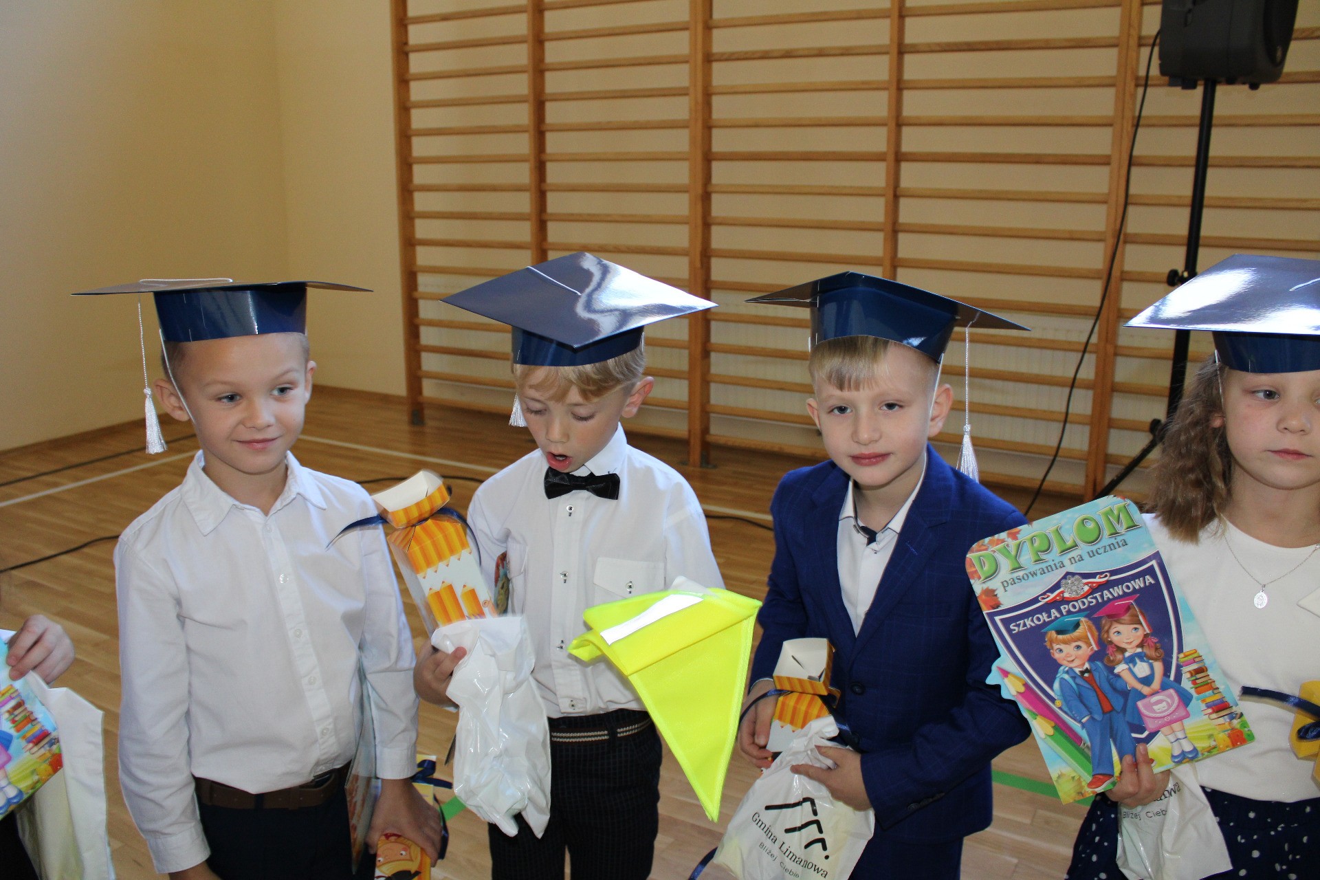 ślubowanie pierwszoklasistów. Celem tej podniosłej uroczystości jest poznanie symboli narodowych przez najmłodszych uczniów jak również zapoznanie się z prawami i obowiązkami ucznia szkoły. Dla upamiętnienia tej uroczystości uczniowie otrzymali pamiątkowe Dyplomy pasowania na ucznia szkoły podstawowej, e-legitymacje szkolne oraz drobne upominki od Rodziców, Wójta Gminy Limanowa Jana Skrzekuta, Dyrektor GZOS-u Edyty Król i Kierownika Wydziału Kultury i Promocji Wojciecha Korabika. Do tej podniosłej uroczystości uczniów przygotowywały ich wychowawczynie Lidia Kazior oraz Mariola Garncarz.