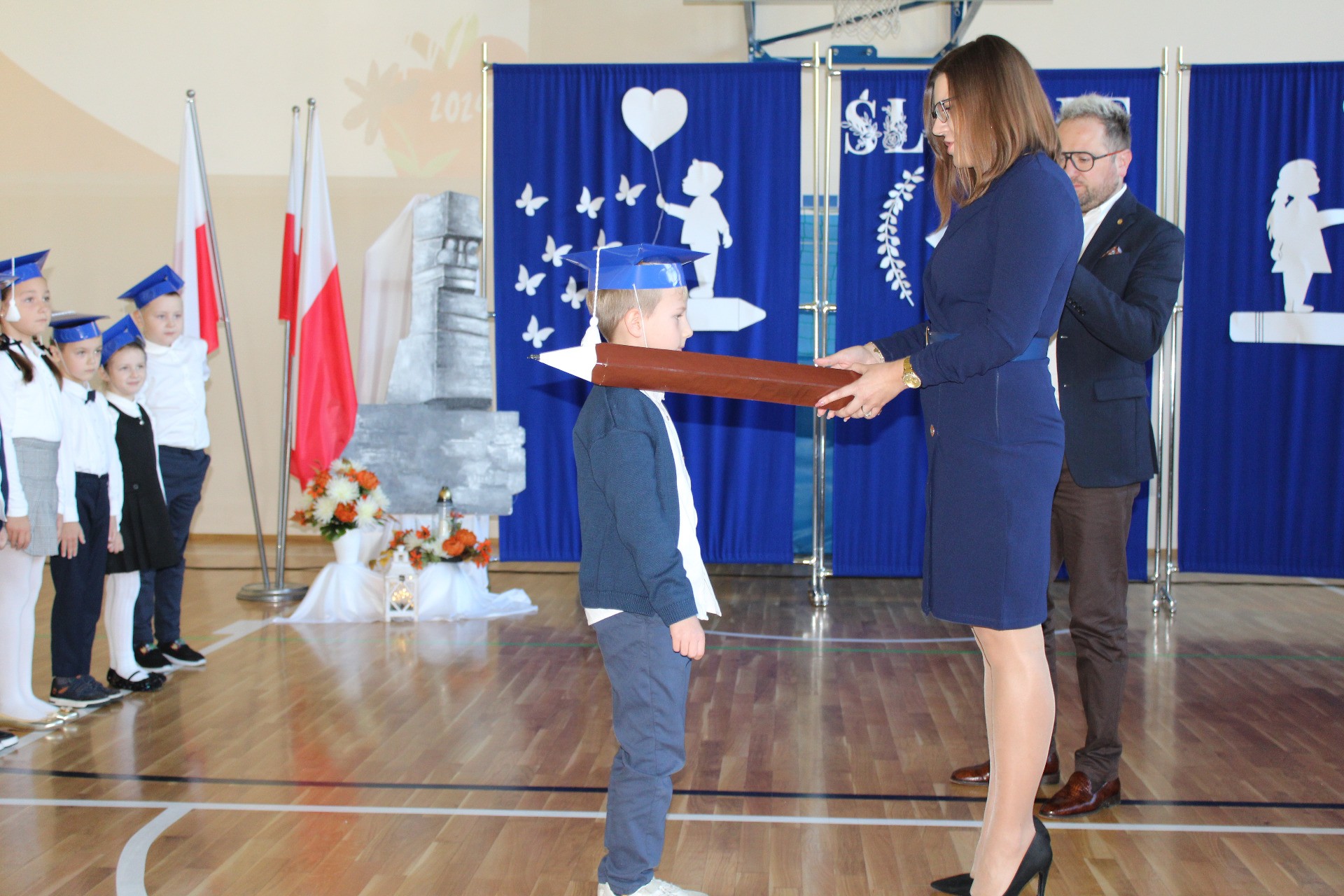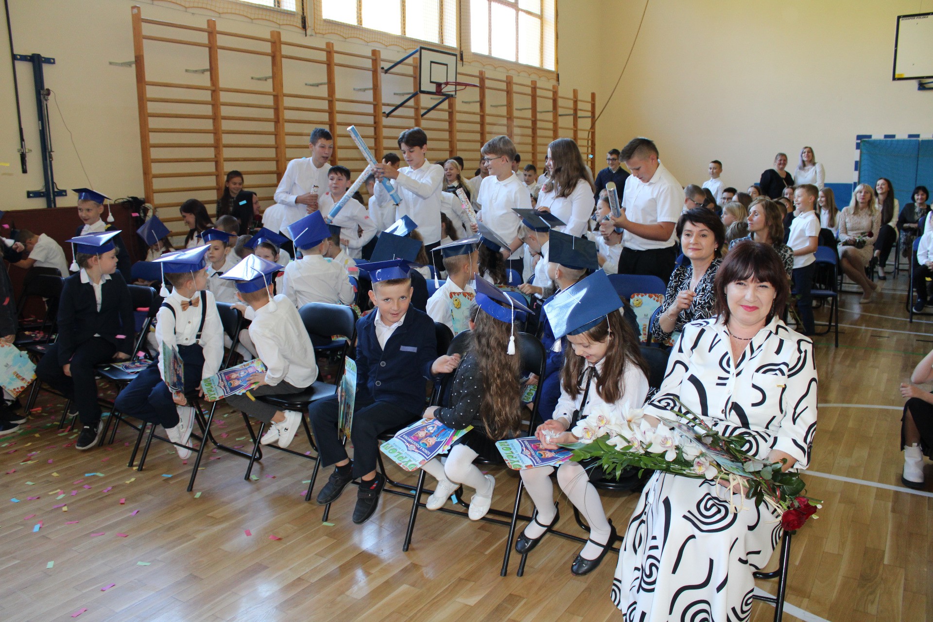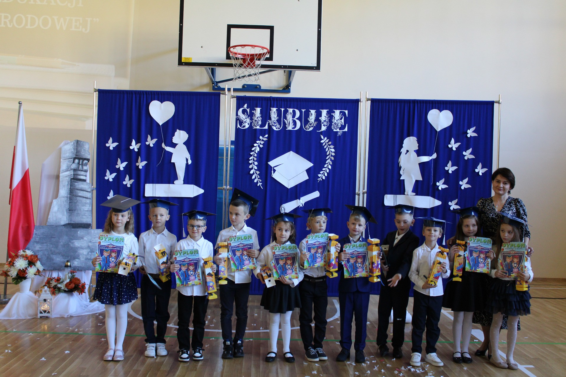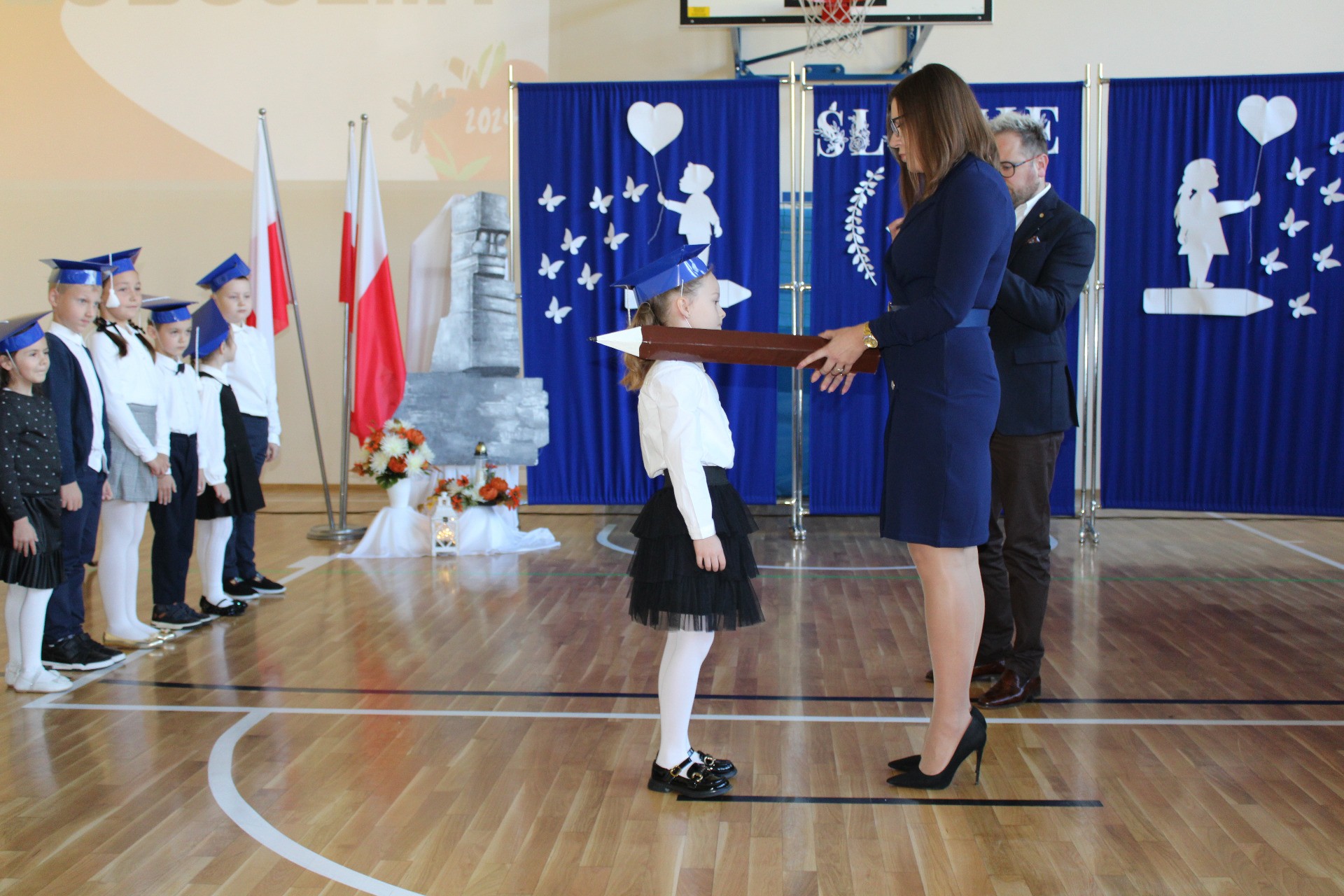 ślubowanie pierwszoklasistów. Celem tej podniosłej uroczystości jest poznanie symboli narodowych przez najmłodszych uczniów jak również zapoznanie się z prawami i obowiązkami ucznia szkoły. Dla upamiętnienia tej uroczystości uczniowie otrzymali pamiątkowe Dyplomy pasowania na ucznia szkoły podstawowej, e-legitymacje szkolne oraz drobne upominki od Rodziców, Wójta Gminy Limanowa Jana Skrzekuta, Dyrektor GZOS-u Edyty Król i Kierownika Wydziału Kultury i Promocji Wojciecha Korabika. Do tej podniosłej uroczystości uczniów przygotowywały ich wychowawczynie Lidia Kazior oraz Mariola Garncarz.