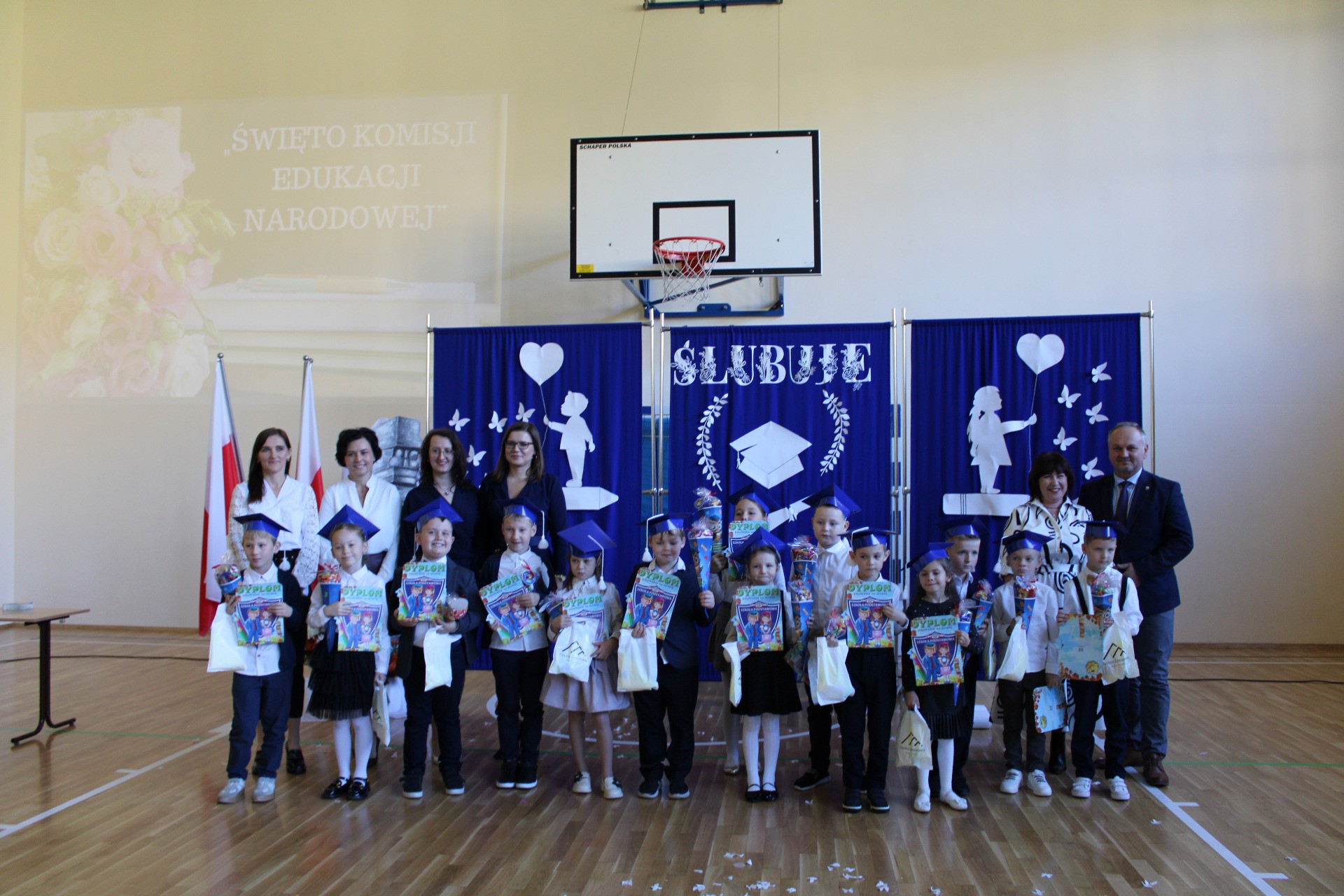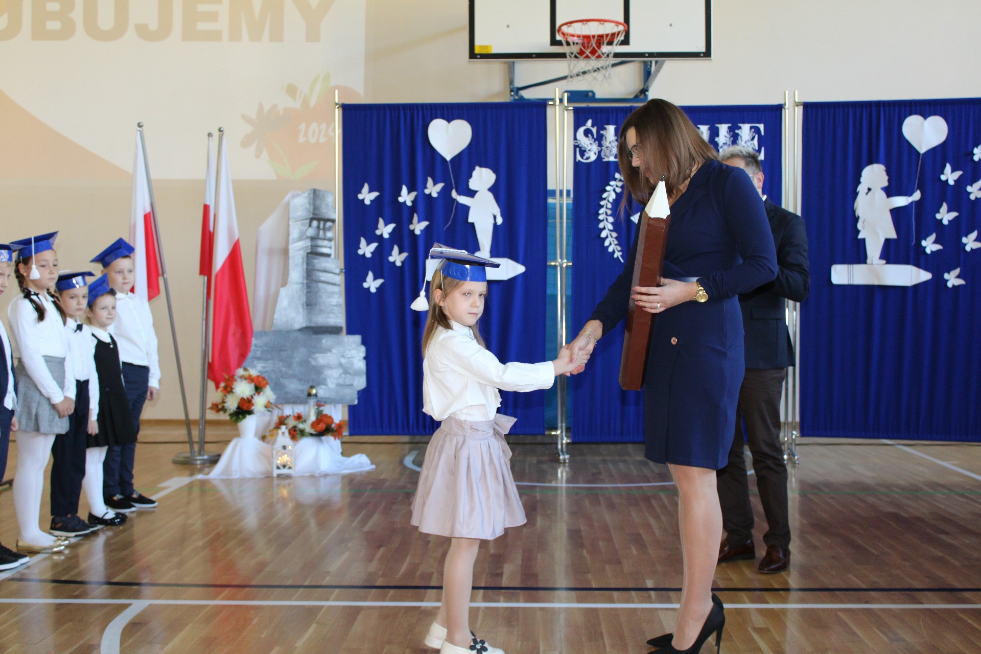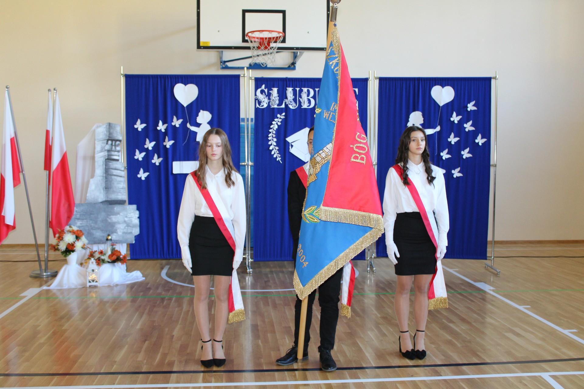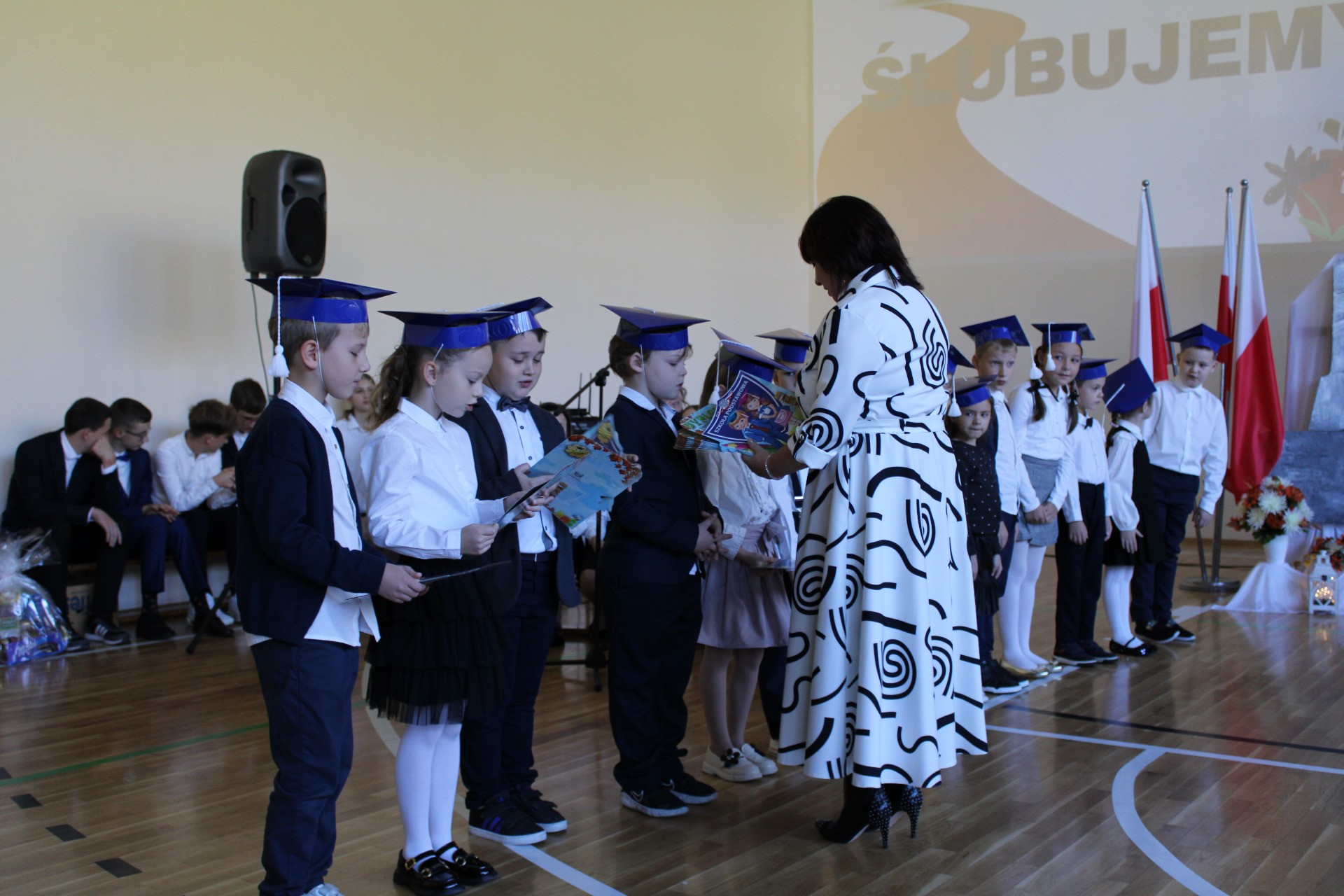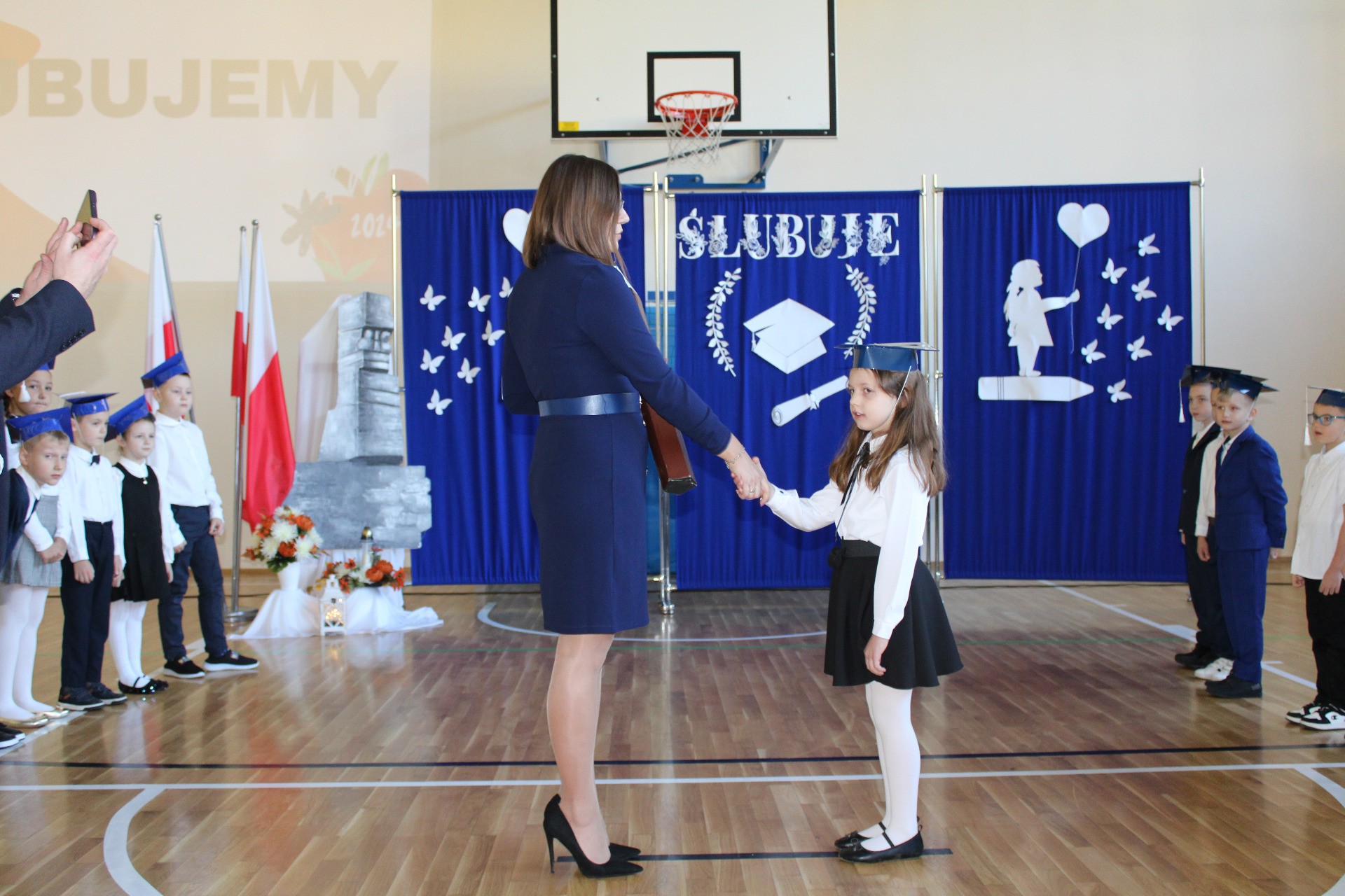 ślubowanie pierwszoklasistów. Celem tej podniosłej uroczystości jest poznanie symboli narodowych przez najmłodszych uczniów jak również zapoznanie się z prawami i obowiązkami ucznia szkoły. Dla upamiętnienia tej uroczystości uczniowie otrzymali pamiątkowe Dyplomy pasowania na ucznia szkoły podstawowej, e-legitymacje szkolne oraz drobne upominki od Rodziców, Wójta Gminy Limanowa Jana Skrzekuta, Dyrektor GZOS-u Edyty Król i Kierownika Wydziału Kultury i Promocji Wojciecha Korabika. Do tej podniosłej uroczystości uczniów przygotowywały ich wychowawczynie Lidia Kazior oraz Mariola Garncarz.