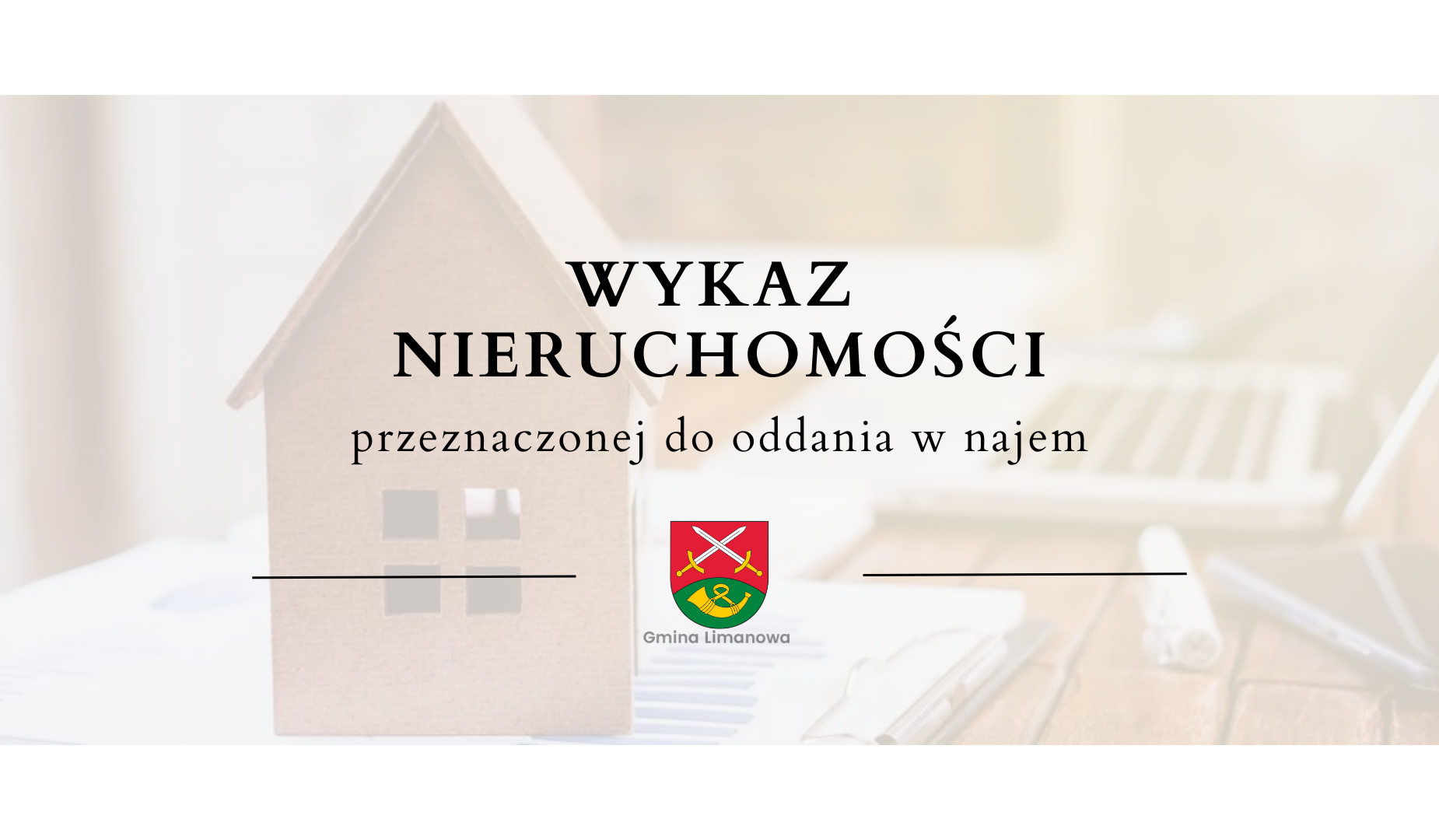 Na podstawie art. 35 ust. 1 i ust. 2 ustawy z dnia 21 sierpnia 1997 r. o gospodarce nieruchomościami (Dz. U. z 2024 r. poz. 1145 ze zm.) Wójt Gminy Limanowa podaje do publicznej wiadomości wykaz nieruchomości przeznaczonej do oddania w najem: