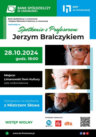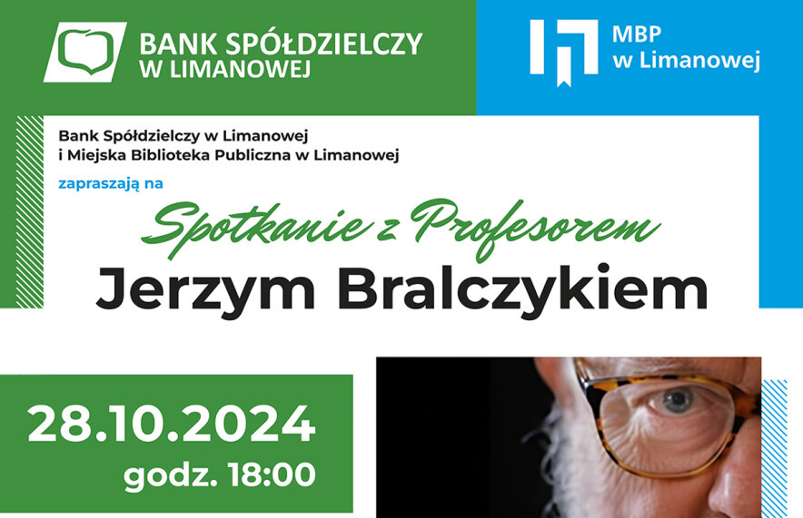 Oficjalny serwisBank Spółdzielczy w Limanowej wspólnie z Miejską Biblioteką Publiczną zaprasza na spotkanie z językoznawcą i jednym z najpopularniejszych autorytetów w dziedzinie języka polskiego Profesorem Jerzym Bralczykiem.