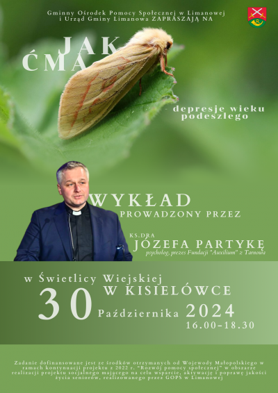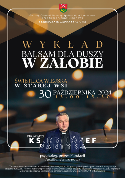 Gminny Ośrodek Pomocy Społecznej w Limanowej oraz Urząd Gminy Limanowa serdecznie zapraszają na wykłady ks. dra Józefa Partyki – znanego i cenionego psychologa oraz prezesa Fundacji „Auxilium” z Tarnowa.