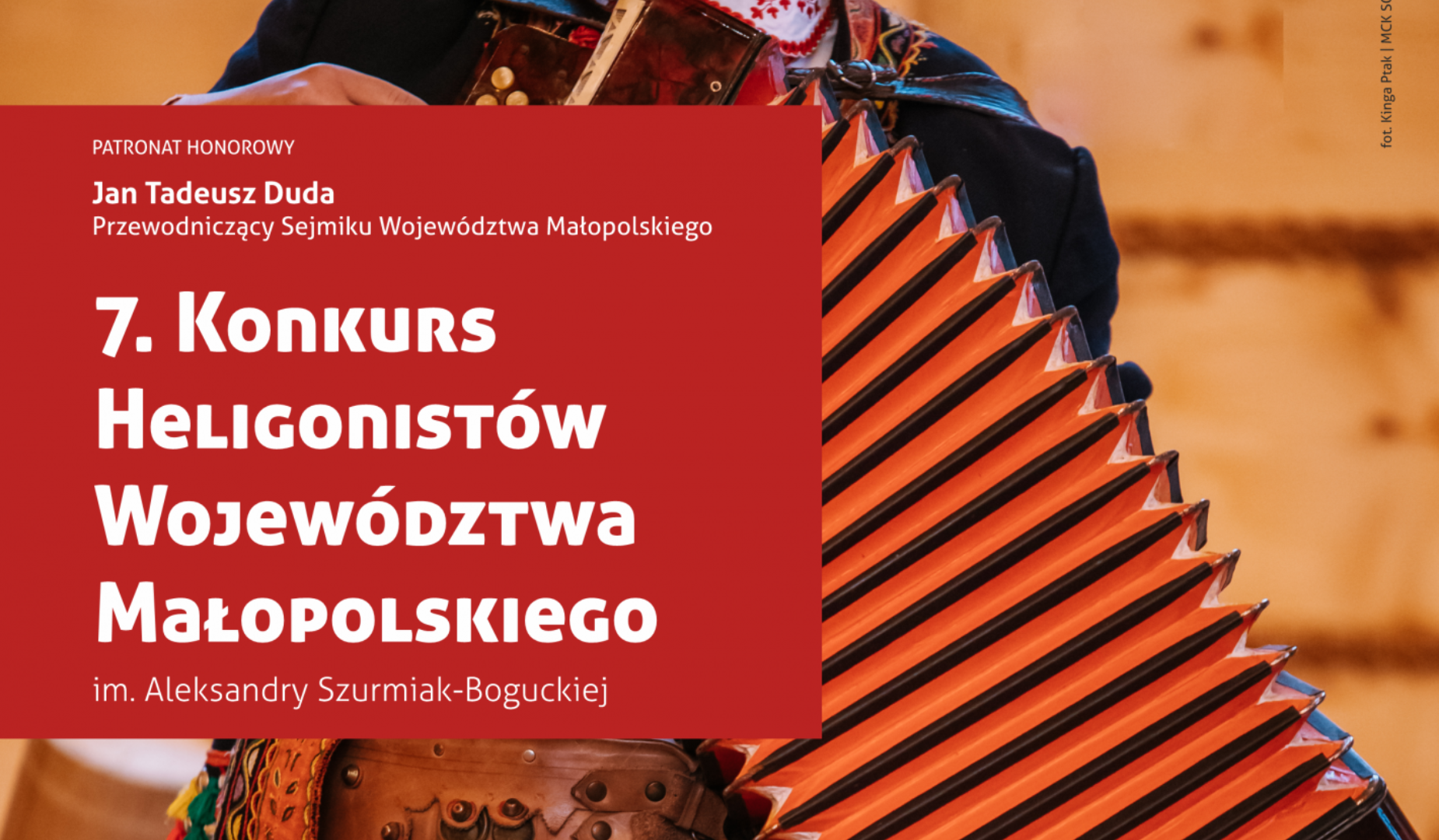 Małopolskie Centrum Kultury SOKÓŁ, Stowarzyszenie HELIGONKI POD KICKAMI oraz Zespół Regionalny SPOD KICEK z Mordarki zapraszają na 7. Konkurs Heligonistów Województwa Małopolskiego im. Aleksandry Szurmiak-Boguckiej, który odbędzie się 7 grudnia 2024 roku w Domu Weselnym „Jasicówka” w Mordarce.
