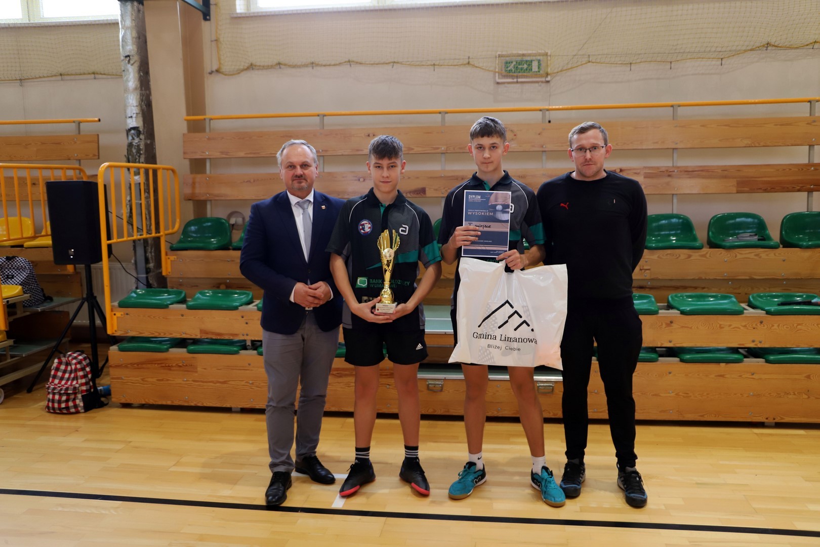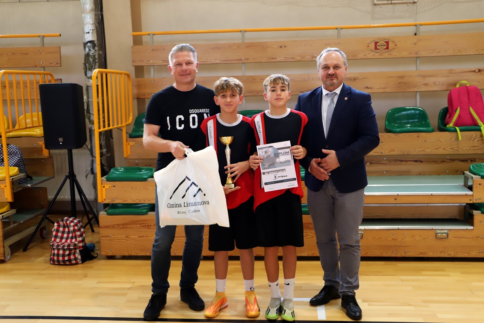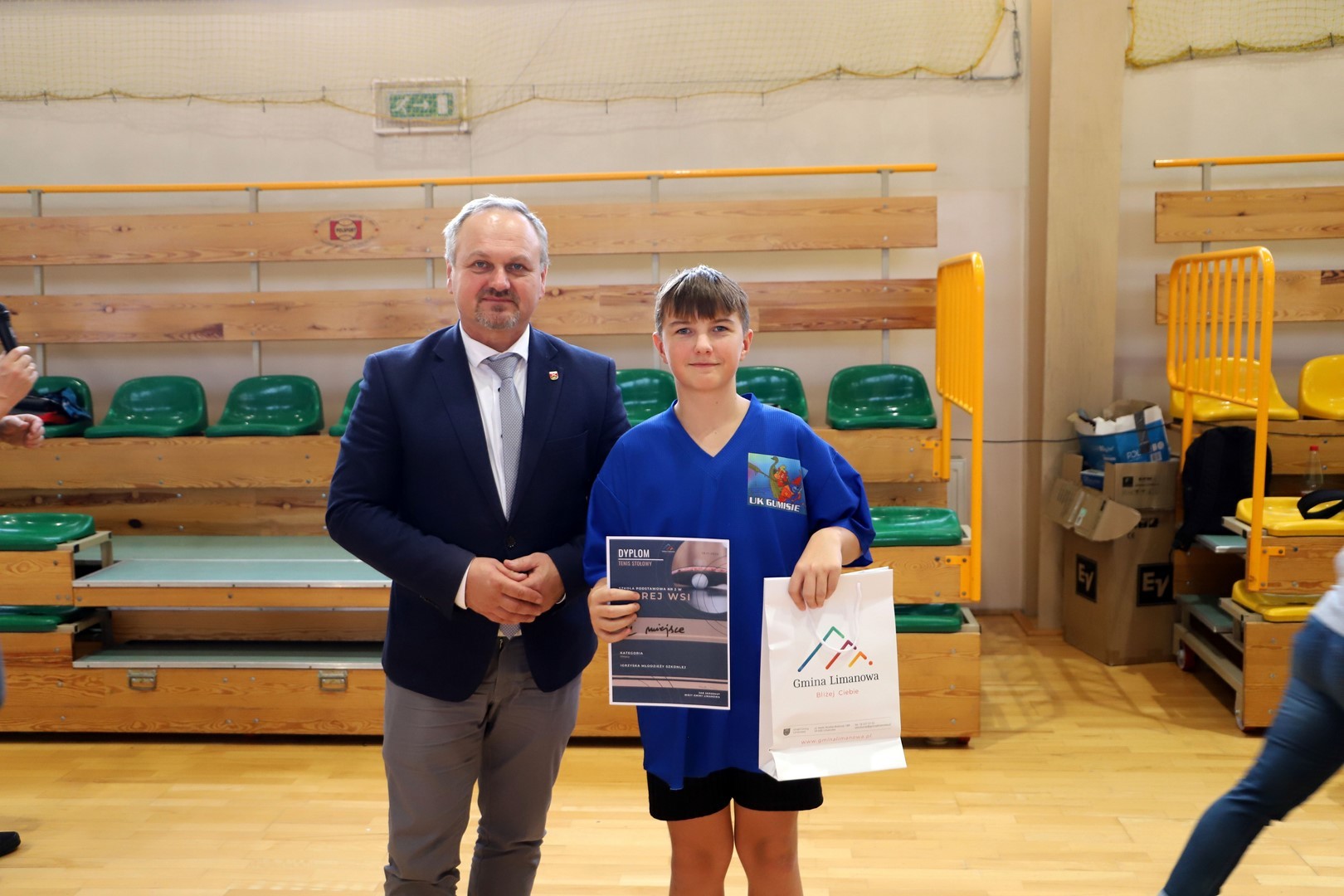 Rozdania nagród, pucharów oraz dyplomów dokonał Jan Skrzekut Wójt gminy Limanowa oraz Robert Piwowarczyk Dyrektor Szkoły Podstawowej w Rupniowie