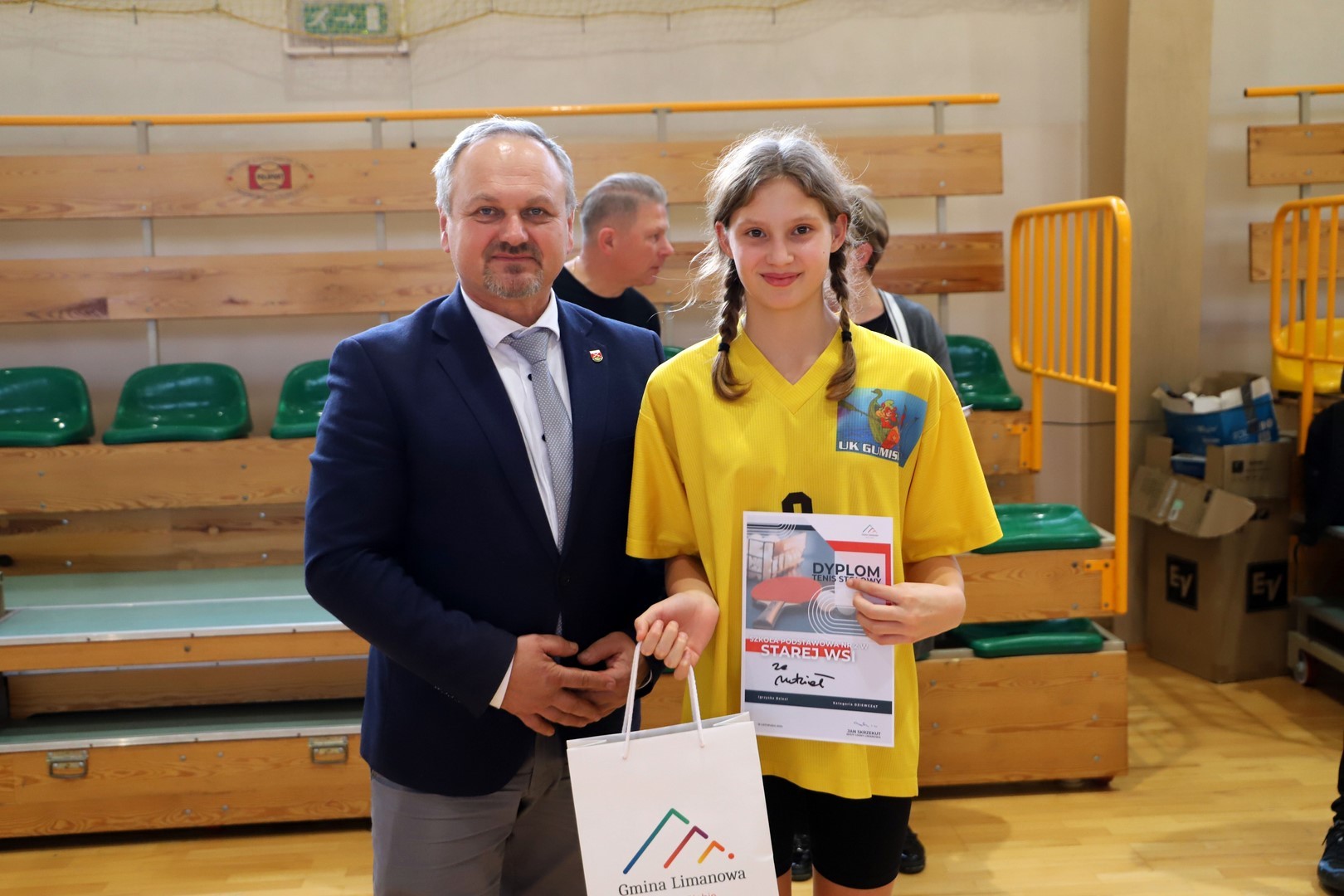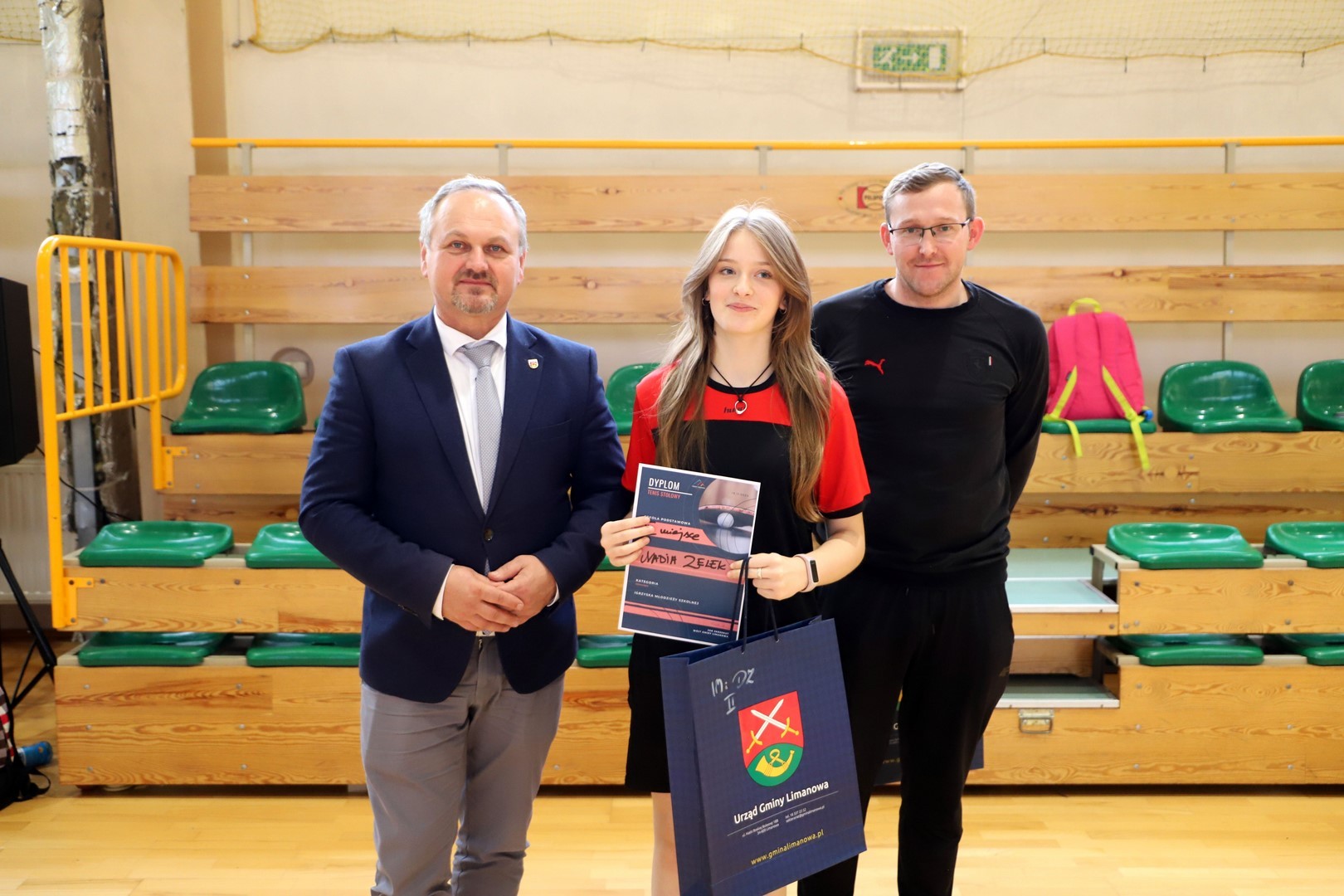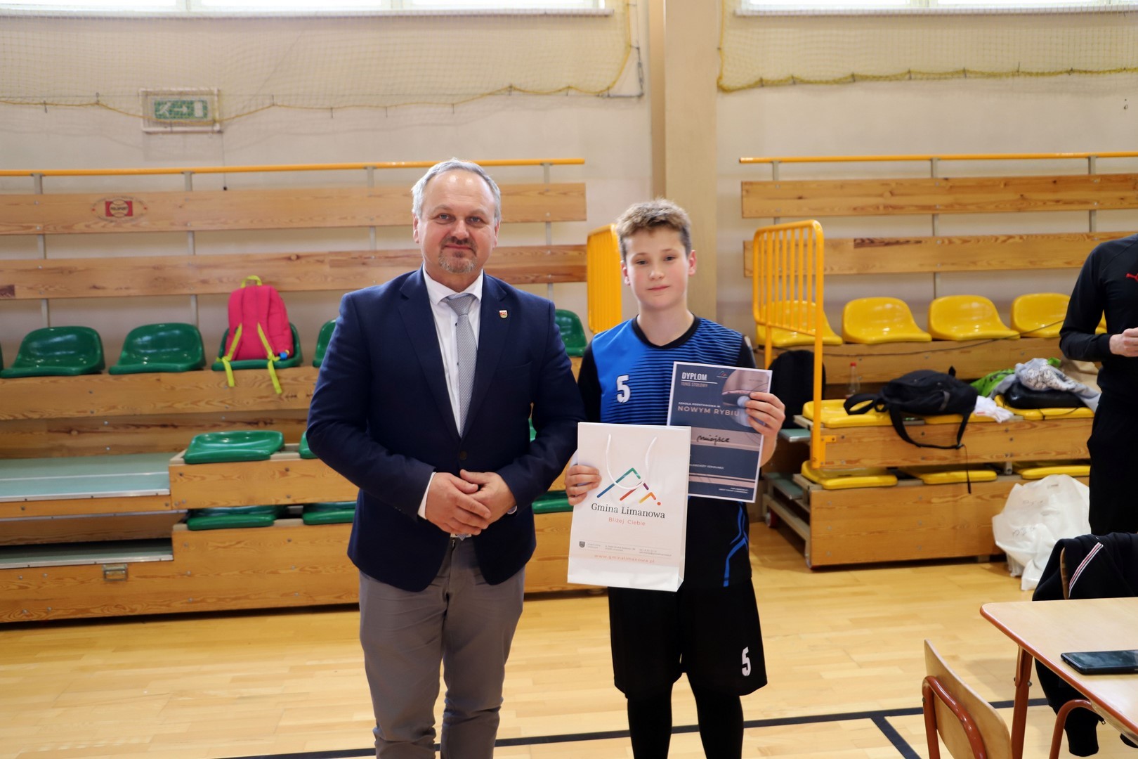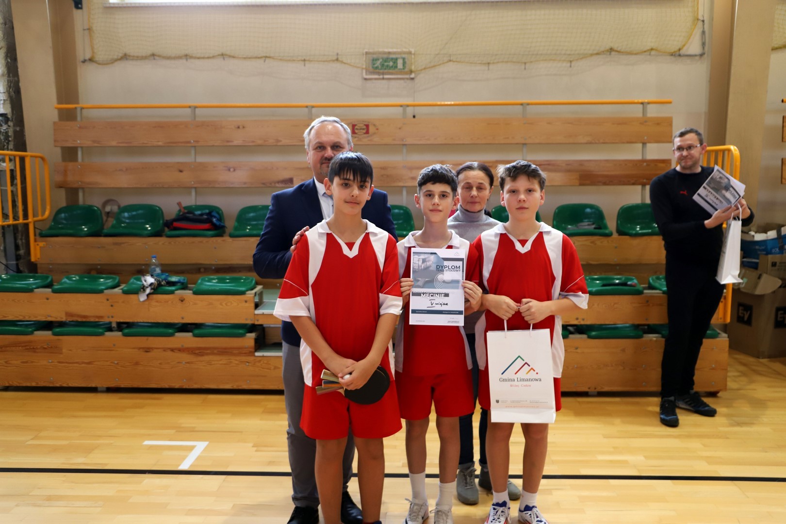 Rozdania nagród, pucharów oraz dyplomów dokonał Jan Skrzekut Wójt gminy Limanowa oraz Robert Piwowarczyk Dyrektor Szkoły Podstawowej w Rupniowie