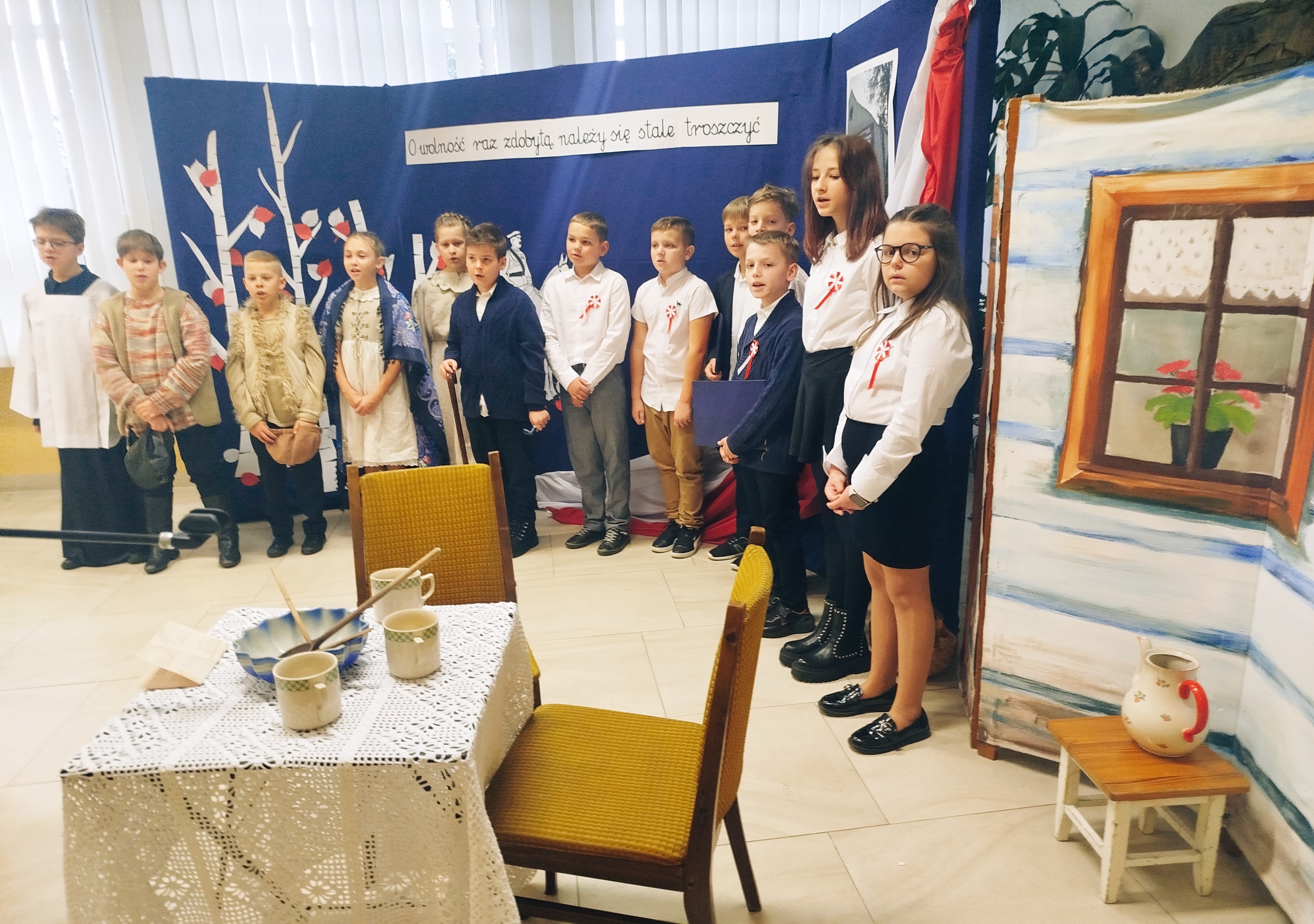W przededniu kolejnej rocznicy odzyskania przez Polskę niepodległości klasa 4A ze Szkoły Podstawowej nr 1 w Męcinie pod przewodnictwem polonistki i wychowawczyni przygotowała widowisko teatralne osnute wokół wydarzeń historycznych, które miały wówczas miejsce w naszym rejonie.