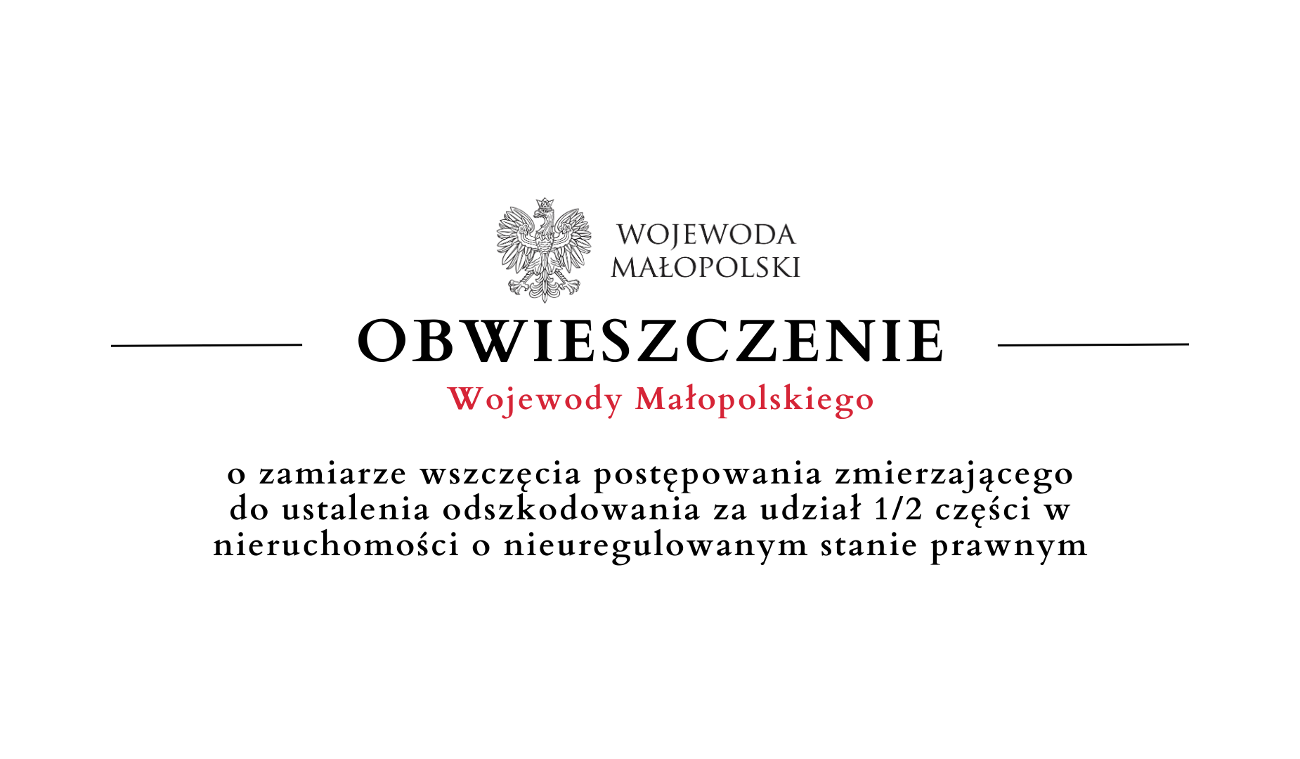 W związku z powyższym wzywa się osoby, które wykażą, że przysługują im prawa rzeczowe do ww. nieruchomości, aby w terminie dwóch tygodni od daty ukazania się niniejszego ogłoszenia skontaktowały się z Małopolskim Urzędem Wojewódzkim w Krakowie, ul. Basztowa 22, 31-156 Kraków, nr tel. 12 39 21 432 celem udokumentowania swoich praw.