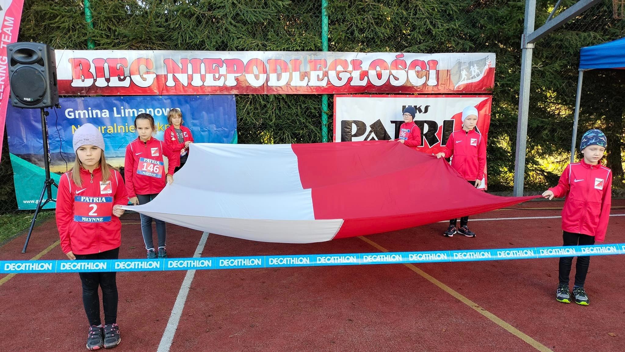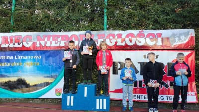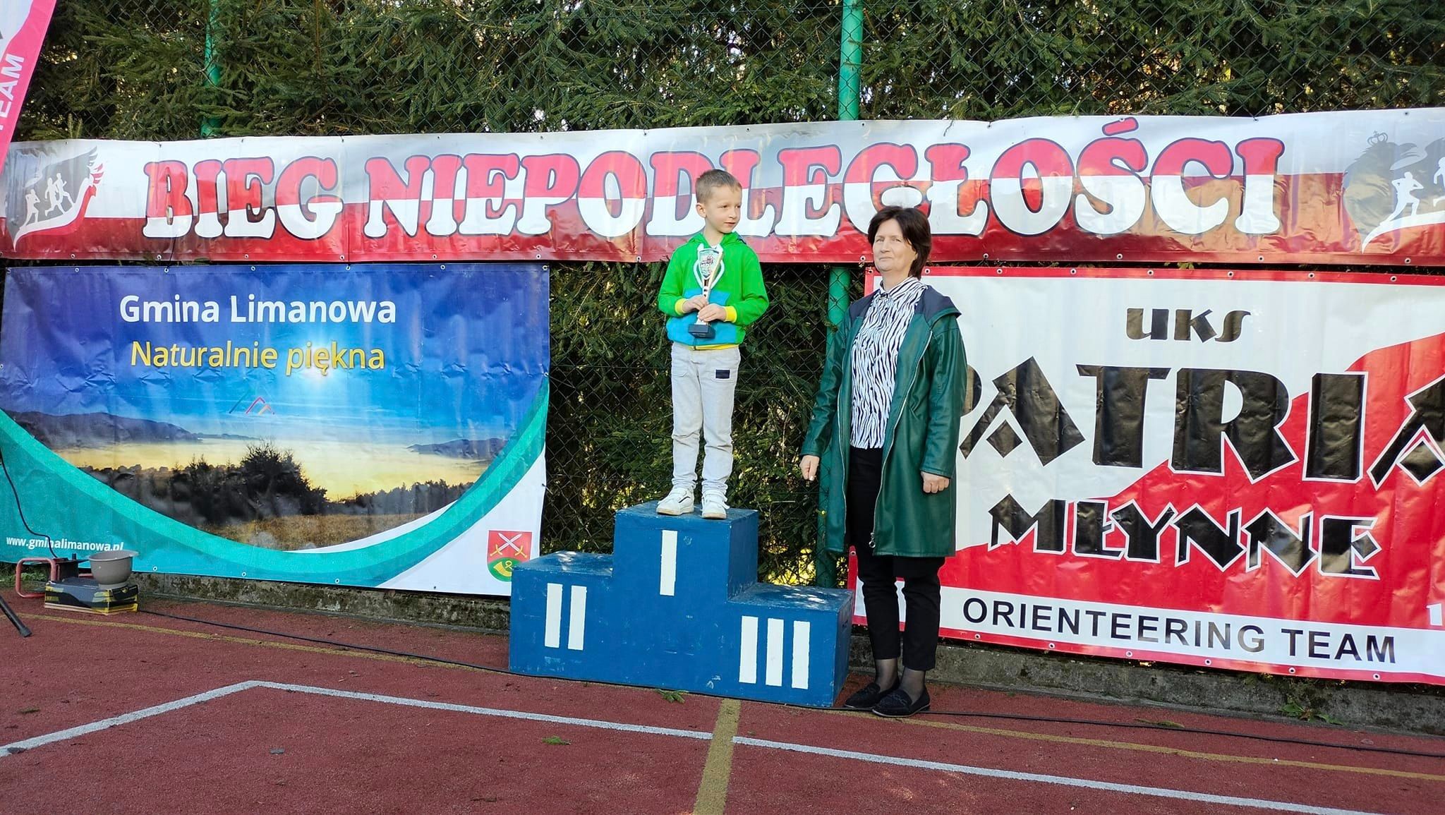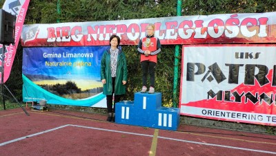 Dyrektor Szkoły Bożena Golonka wręczyła także puchary dla Najmłodszej Zawodniczki i Zawodnika XXVI Biegu Niepodległości, a byli nimi : Gabriela Stypuła i Marcel Wątroba.