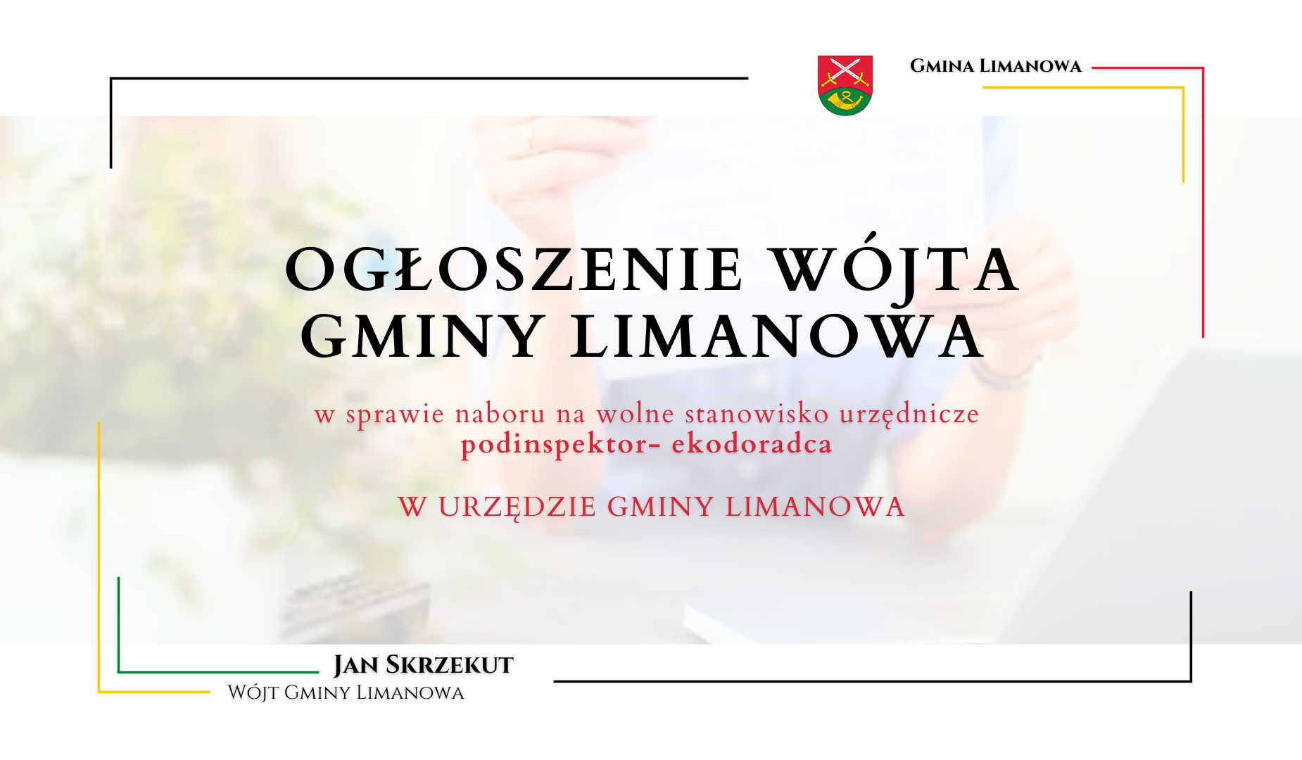 w sprawie naboru na wolne stanowisko urzędnicze podinspektor- ekodoradca w Urzędzie Gminy Limanowa.