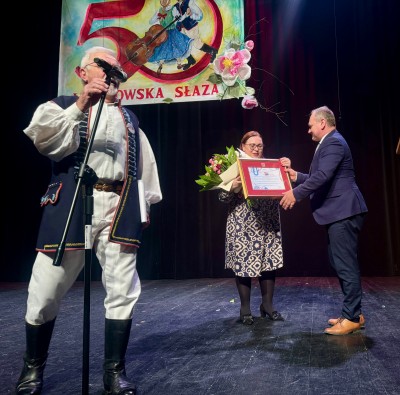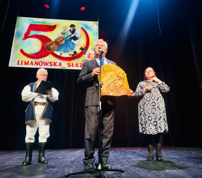W niedziele 17 listopada odbyło sie zakończenie i uroczyste podsumowanie 50. Festiwalu Folklorystycznego „Limanowska Słaza”. Była to też doskonała okazja do uroczystych obchodów 50 lecia festiwalu. Podczas gali finałowej okolicznościowy dyplom gratulacyjny oraz kwiaty na ręce dyrektor Limanowskiego Domu Kultury Magdaleny Szczygieł-Smagi złożył wójt gminy Limanowa Jan Skrzekut.