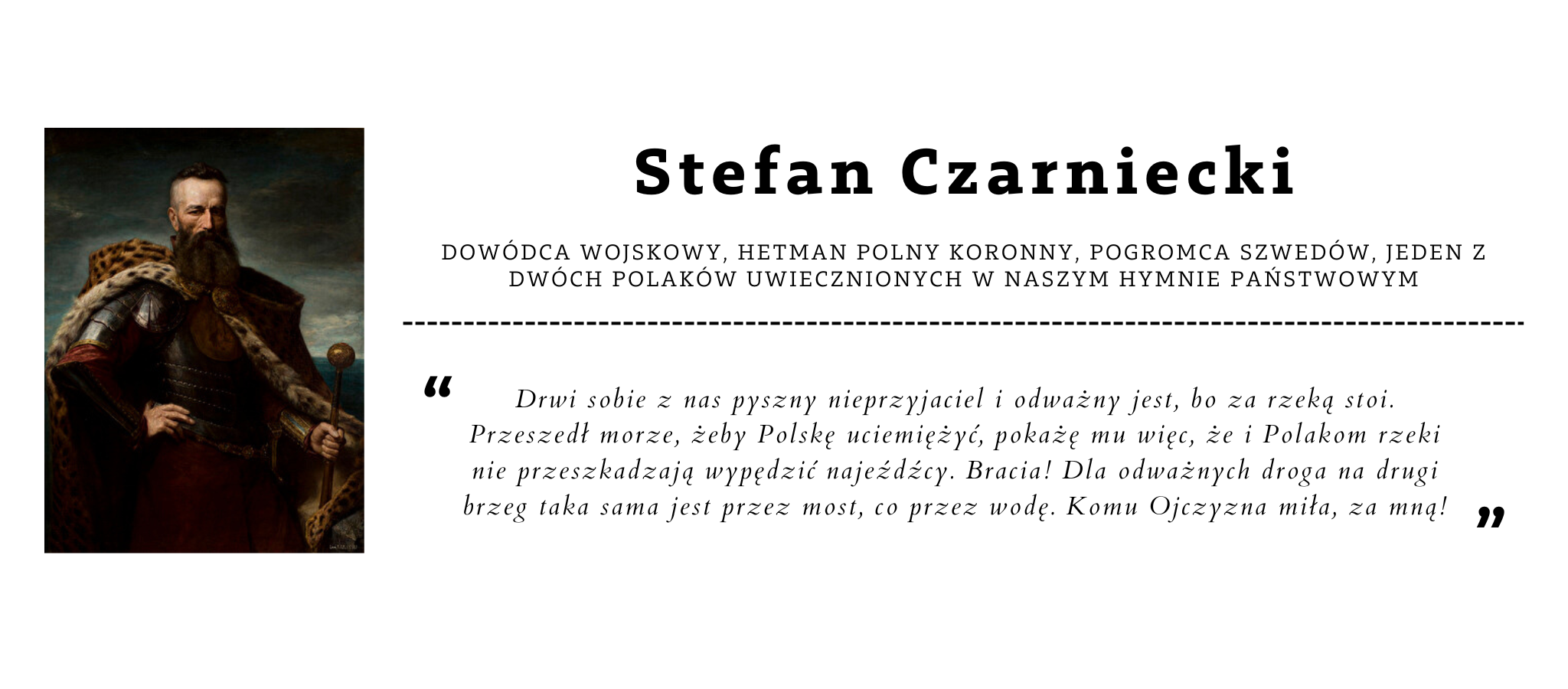Pisząc ten felieton, chcę zauważyć, że każdy bez względu na płeć, pochodzenie, wykształcenie, zawód może zostać zapisany złotymi zgłoskami w kartach historii Polski. W niniejszym felietonie zaprezentuję Ci czytelniku mężów stanu, duchownych, żołnierzy, naukowców, literatów , artystów. To oni wielokrotnie zmienili oblicze Polski, Europy i całego świata. Przekazuję ich drogę walki o naszą polską tożsamość w formie cytatów by sposób interpretacyjny był dogodniejszy dla naszego pokolenia.
