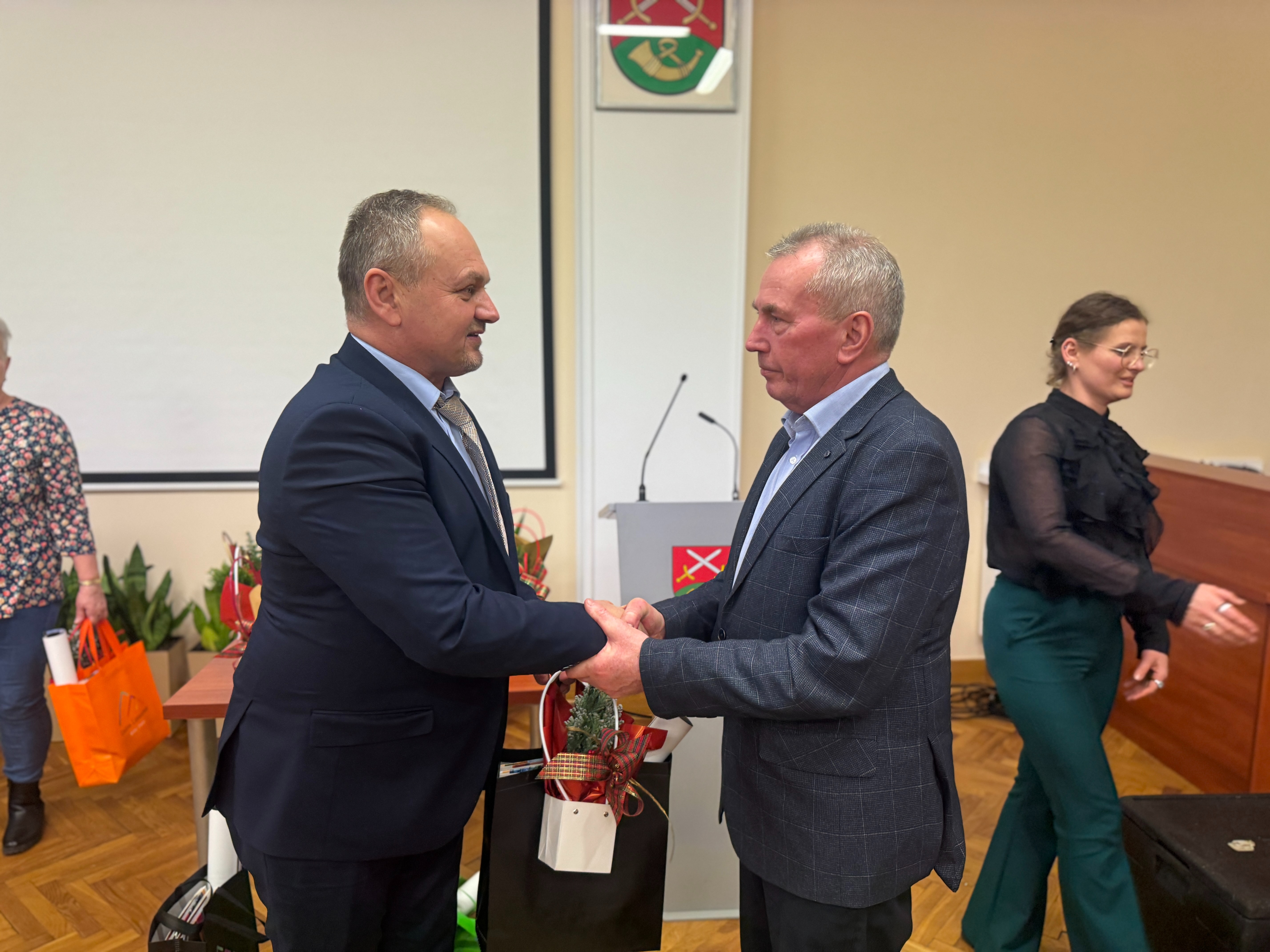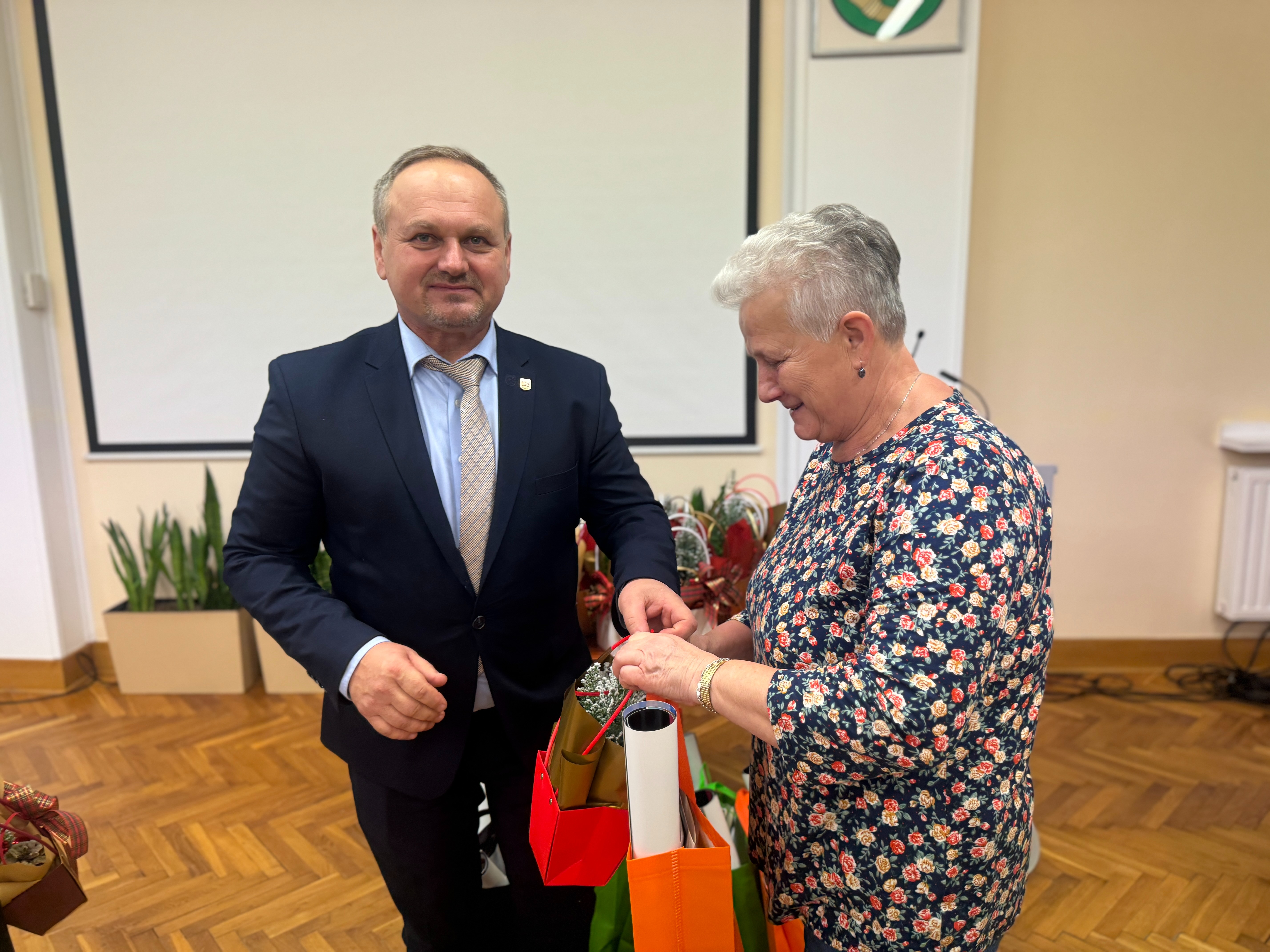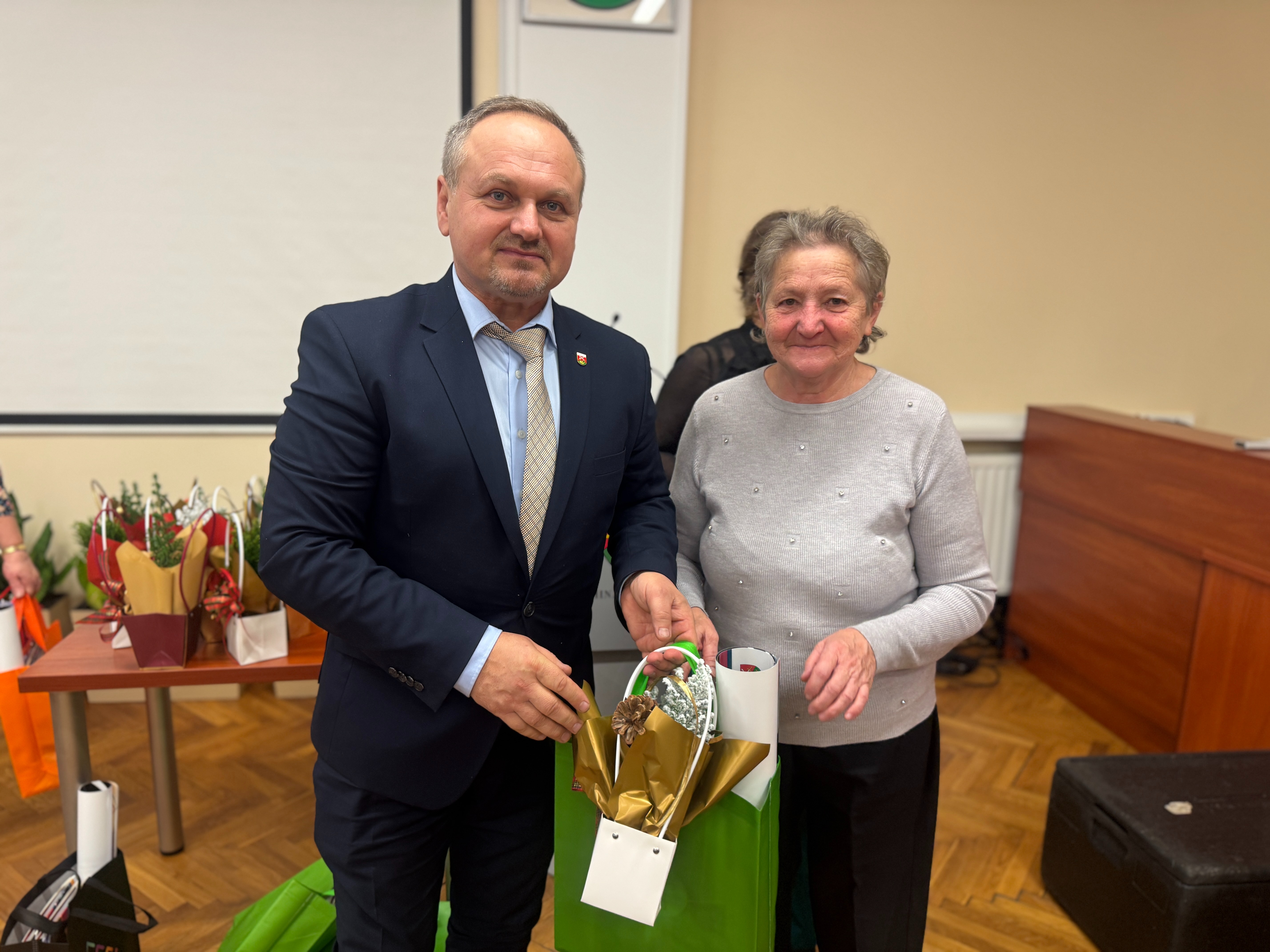 Wójt wyraził radość z możliwości spotkania, dziękując emerytom  za ich wieloletni  wkład w  funkcjonowanie Urzędu.