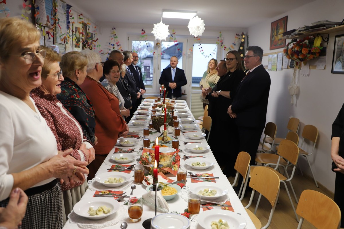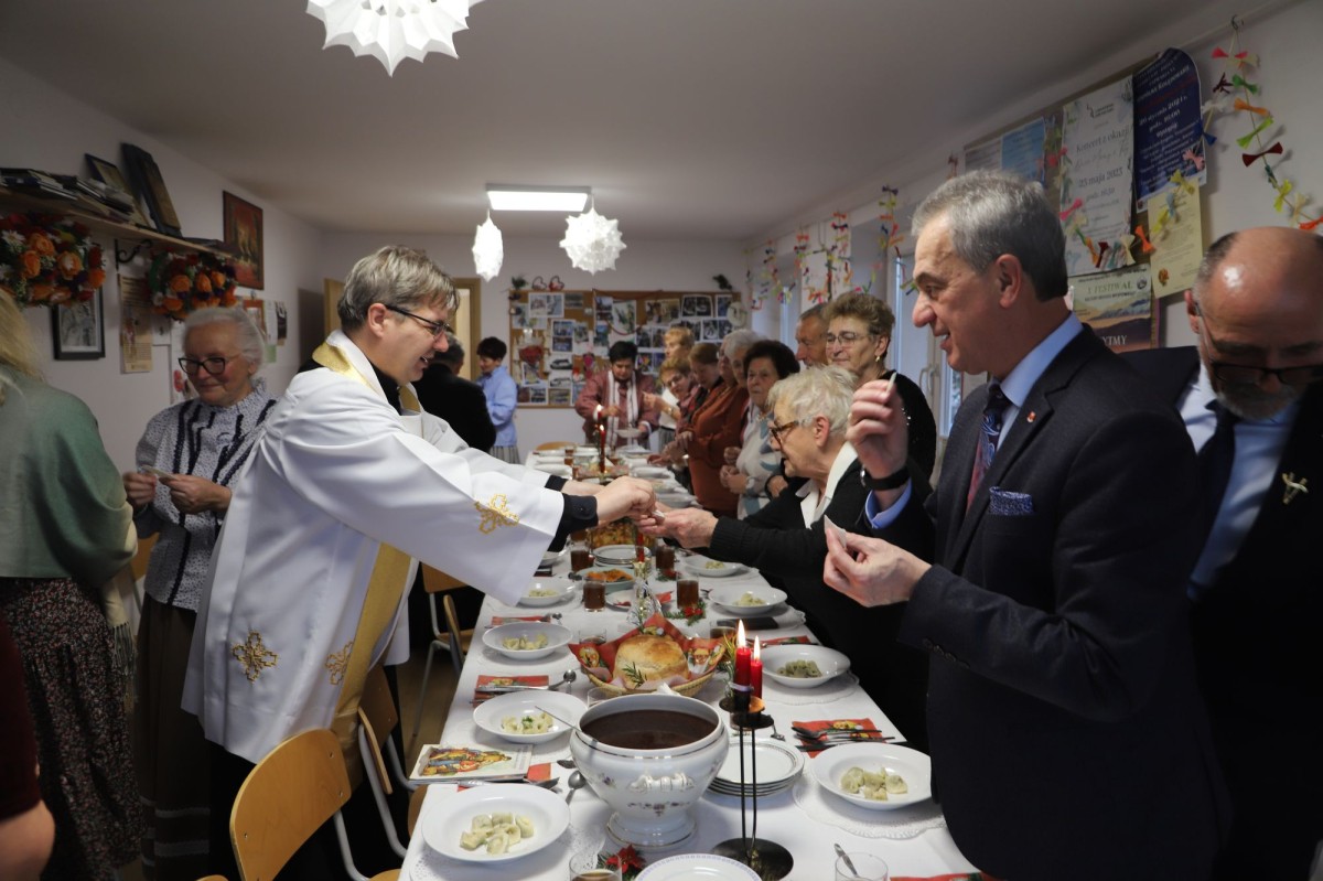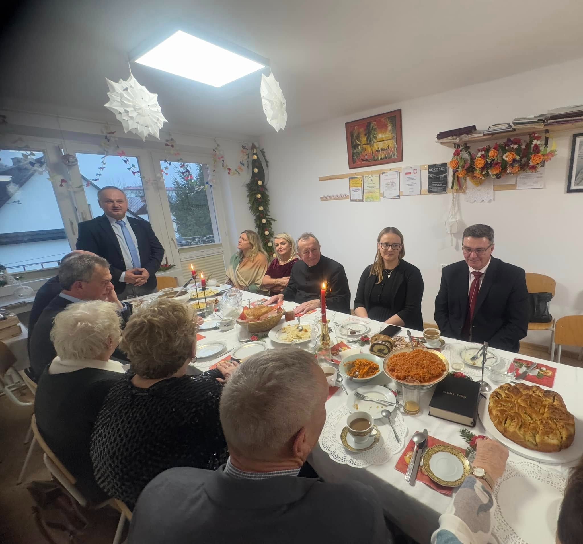W spotkaniu uczestniczyli seniorzy na czele z panią Stanisławą Oleksy, Wójt Gminy Limanowa Jan Skrzekut, Starosta Powiatu Limanowskiego Mieczysław Uryga, etatowy członek Zarządu Powiatu Limanowskiego Wojciech Włodarczyk, radna Gminy Limanowa Iwona Kuzak-Stachowicz, sołtys Męciny Rafał Smęda, Proboszcz Parafii w Męcinie - ks. Witold Machalski, ks. Stanisław Kudlik, kierownik Gminnego Ośrodka Pomocy Społecznej w Limanowej Ewa Bulanda i pracownik socjalny Ośrodka Jadwiga Wójtowicz.