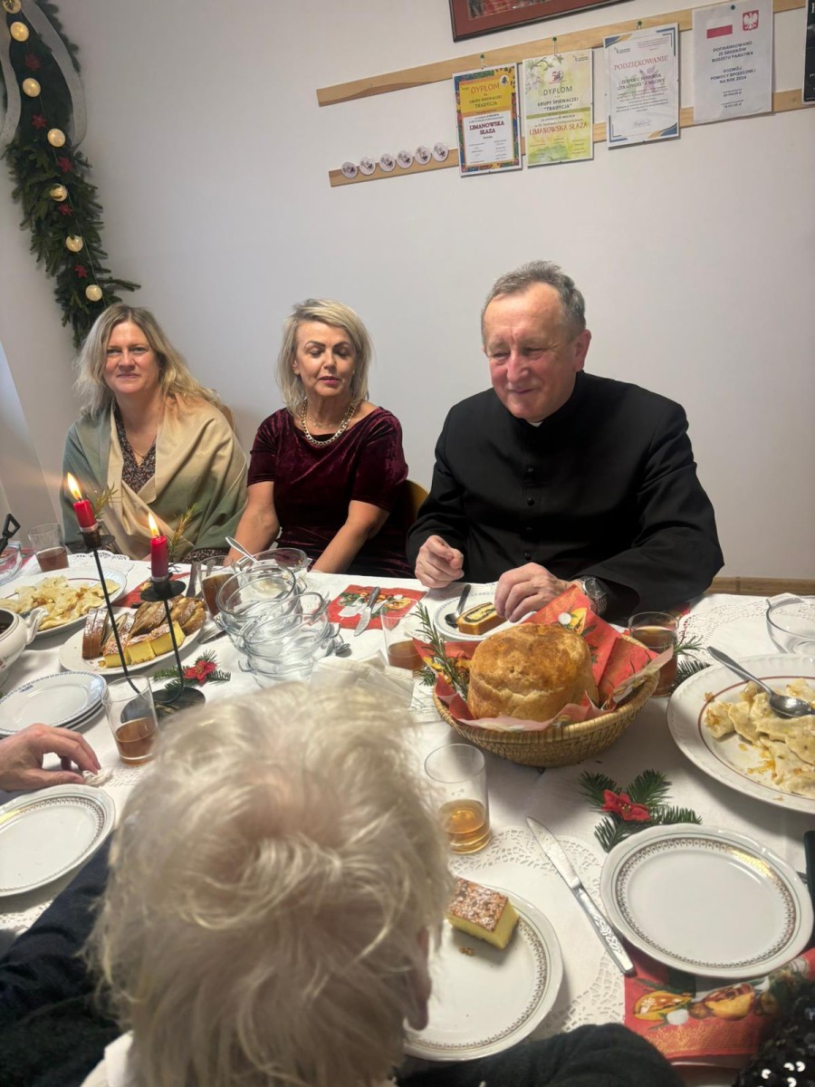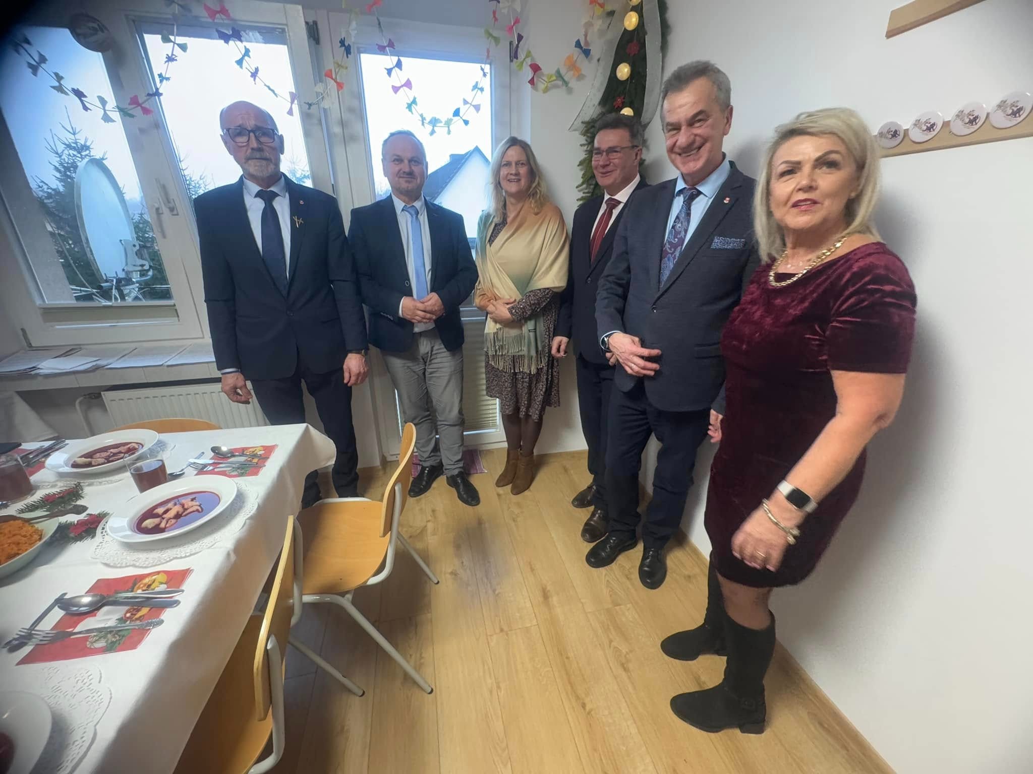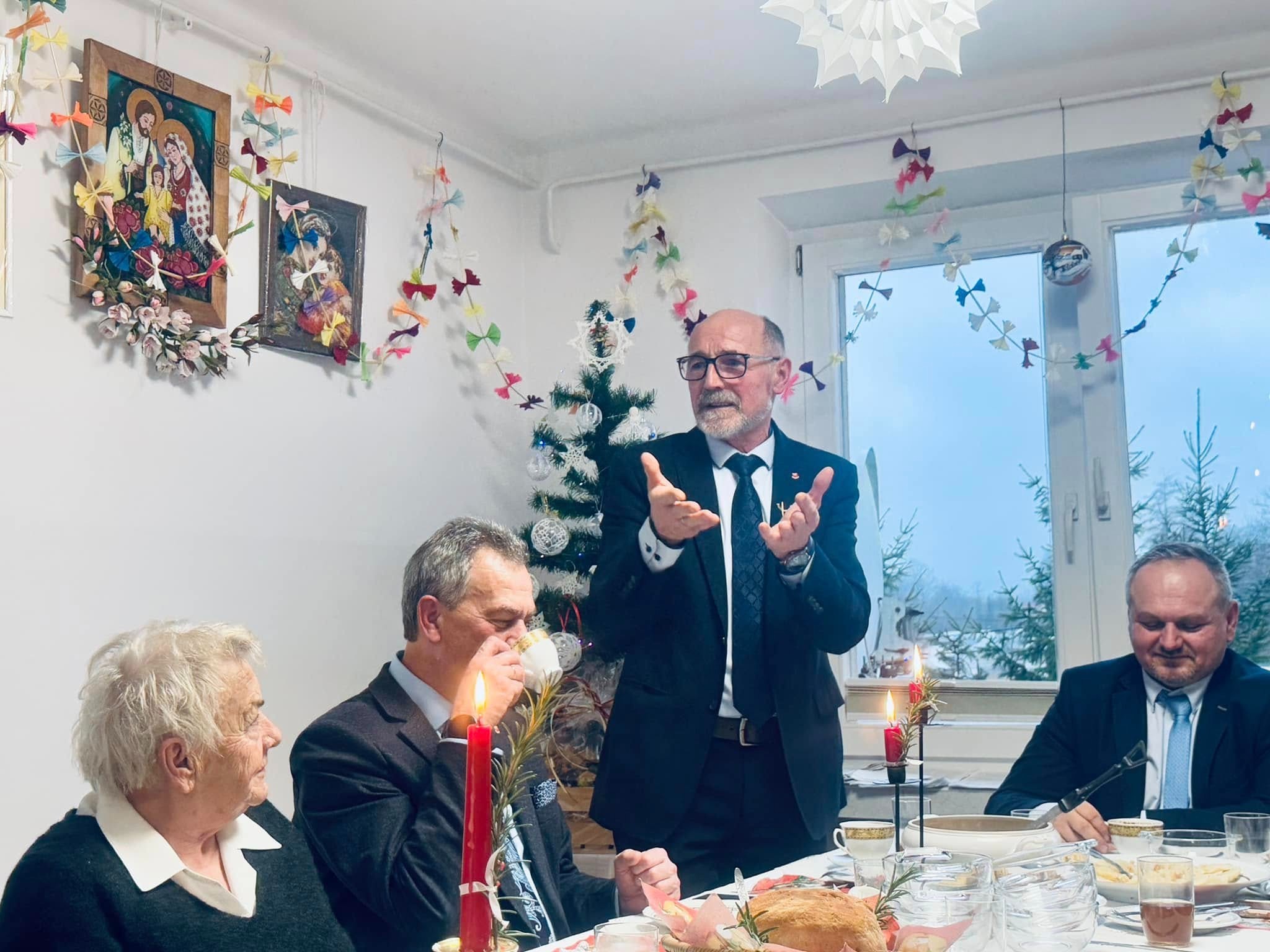 W spotkaniu uczestniczyli seniorzy na czele z panią Stanisławą Oleksy, Wójt Gminy Limanowa Jan Skrzekut, Starosta Powiatu Limanowskiego Mieczysław Uryga, etatowy członek Zarządu Powiatu Limanowskiego Wojciech Włodarczyk, radna Gminy Limanowa Iwona Kuzak-Stachowicz, sołtys Męciny Rafał Smęda, Proboszcz Parafii w Męcinie - ks. Witold Machalski, ks. Stanisław Kudlik, kierownik Gminnego Ośrodka Pomocy Społecznej w Limanowej Ewa Bulanda i pracownik socjalny Ośrodka Jadwiga Wójtowicz.