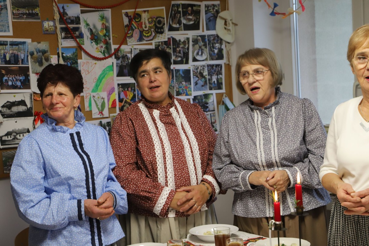 Na zakończeniu warsztatów panowała wspaniała atmosfera. Uczestnicy dzielili się swoimi doświadczeniami. W sali rozbrzmiewały śmiechy oraz śpiewy, a na stołach pojawiły się smakowite dania przygotowane podczas kulinarnych zajęć. Dodatkowo sala została ustrojona w prace rękodzielnicze seniorów, które wzbudzały zachwyt wśród obecnych.