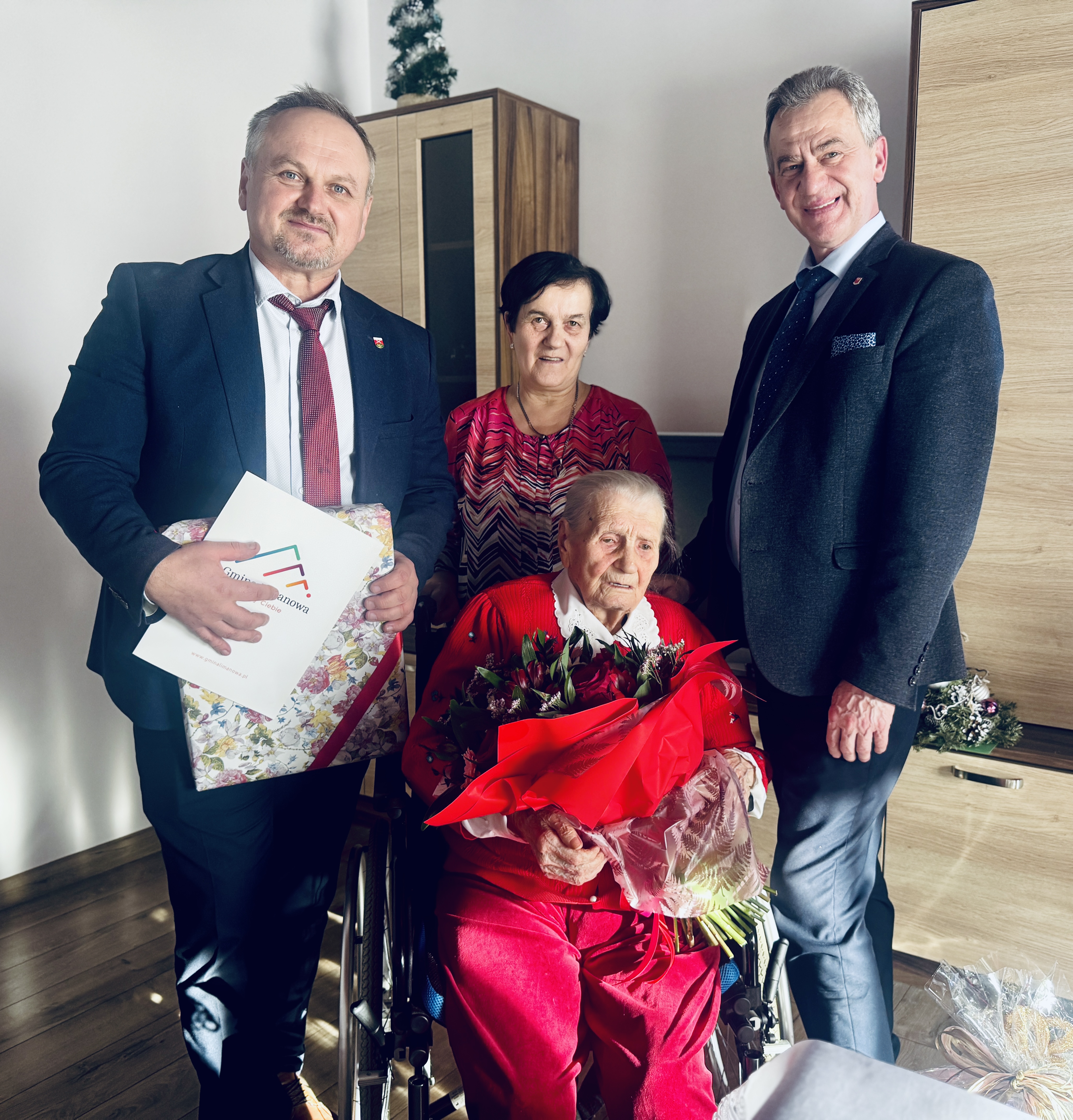 Życzenia i gratulacje będące wyrazem ogromnego szacunku dla Pani Marii skierował Wójt Gminy Limanowa – Jan Skrzekut, który z dumą podkreślił zadowolenie z faktu, że w naszej gminie jest osoba, której osobiście może pogratulować tak zaszczytnego wieku: