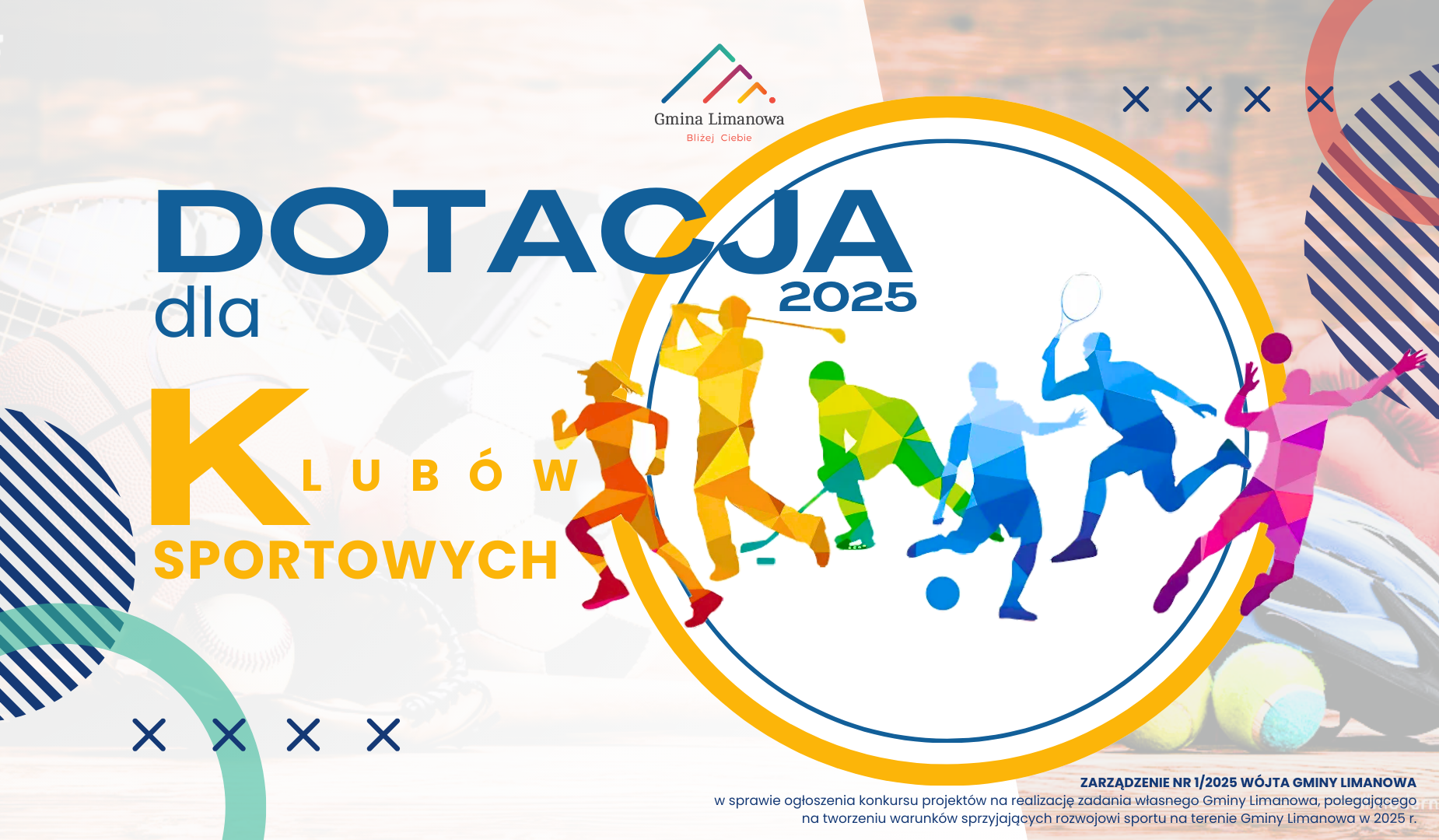 Działając na podstawie § 8 uchwały Nr IV/25/2011 Rady Gminy Limanowa z dnia 28 stycznia 2011 r. w sprawie określenia warunków i trybu finansowania zadania własnego Gminy Limanowa, polegającego na tworzeniu warunków sprzyjających rozwojowi sportu (Dz. Urz. Woj. Małopolskiego Nr 122, poz. 958) Wójt Gminy Limanowa ogłasza konkurs projektów na realizację zadania własnego Gminy Limanowa, polegającego na tworzeniu warunków sprzyjających rozwojowi sportu na terenie Gminy Limanowa w 2025 r.